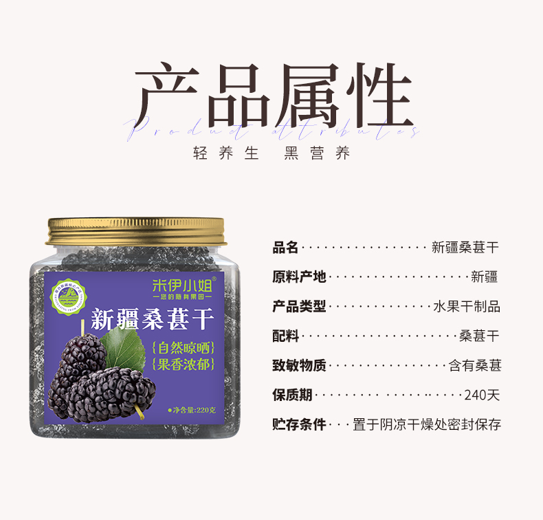 米伊小姐·新疆桑葚干220g*3 颗颗饱满不粘连 老人小孩都能吃