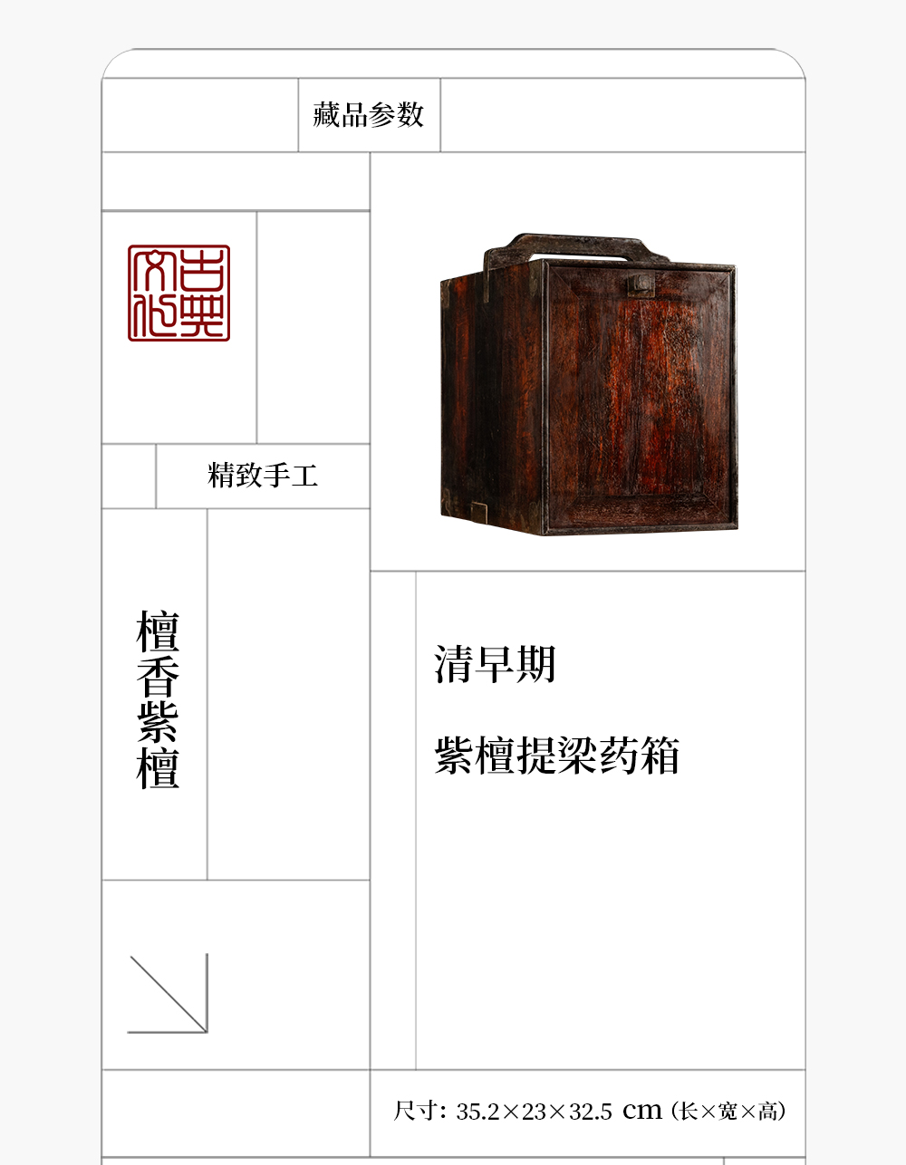 清早期 紫檀提梁文房箱