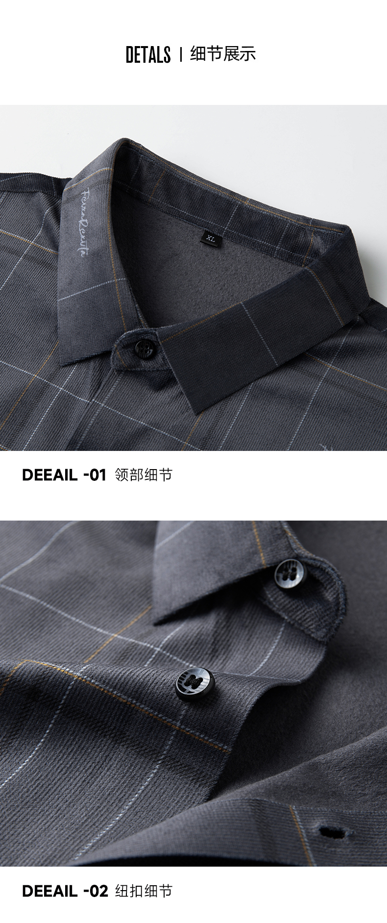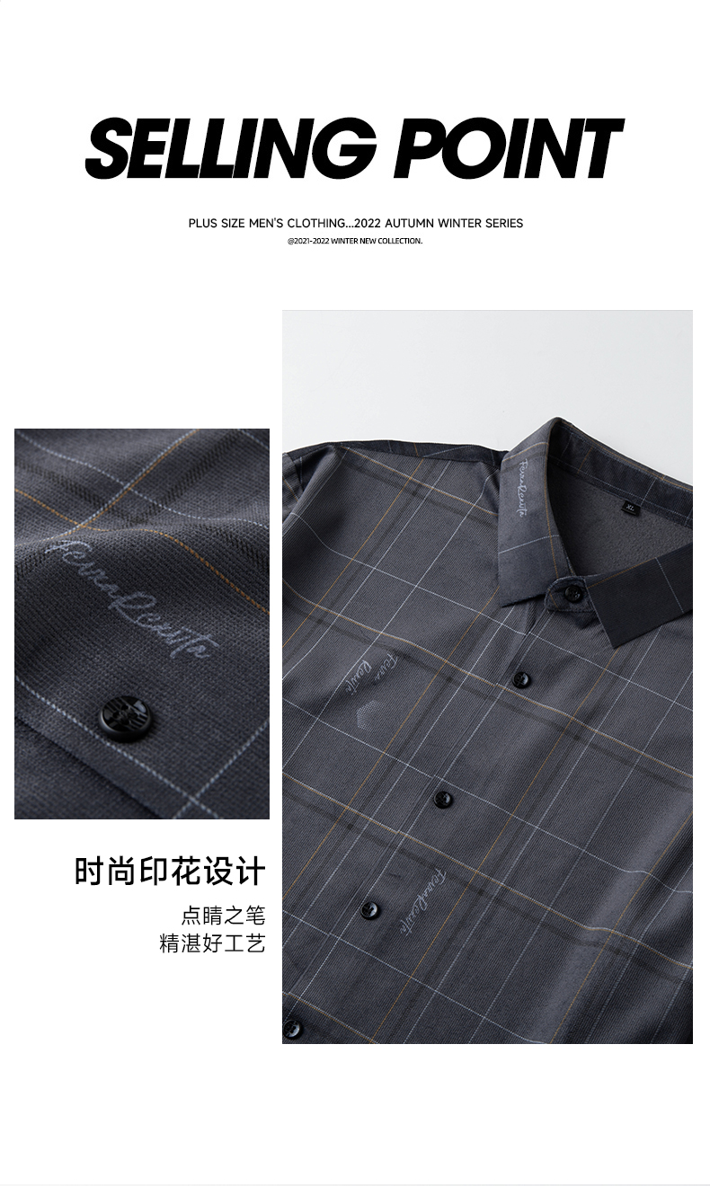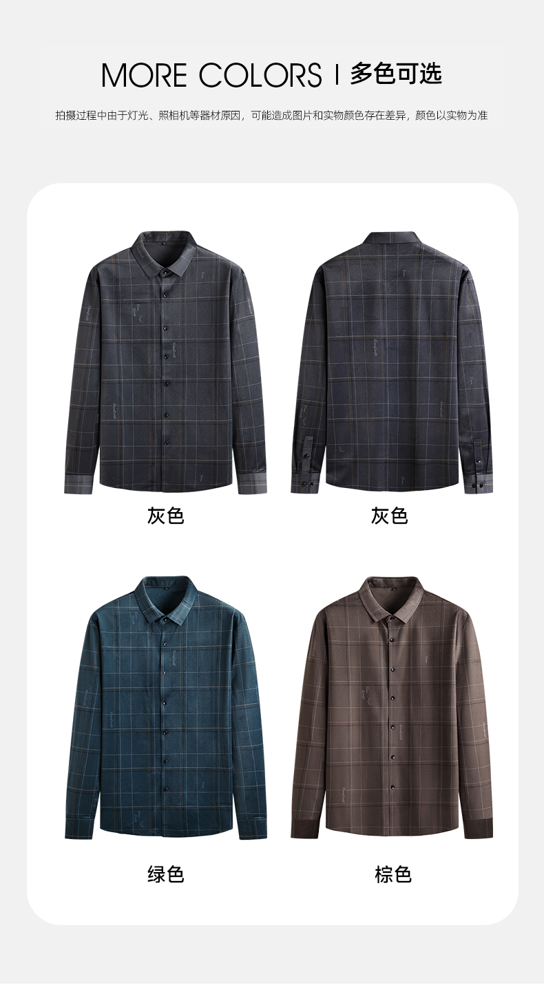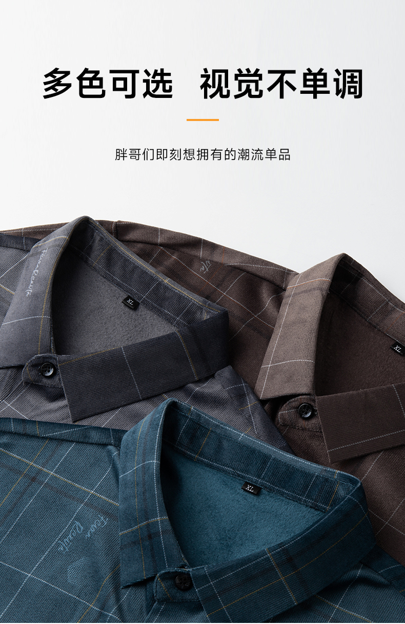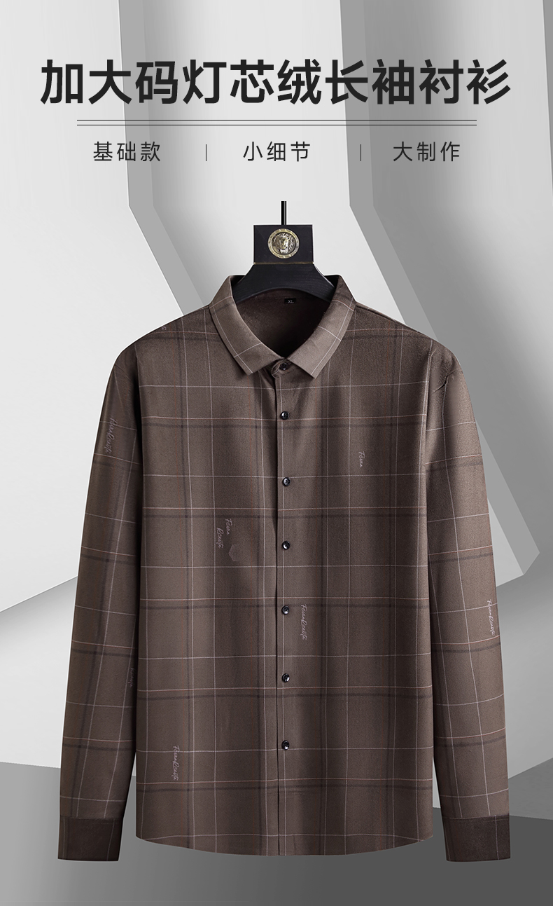 【新款DK】大依优型大码灯芯绒格子长袖衬衫商务休闲绅士免烫衬衣胖子宽松男提花时尚