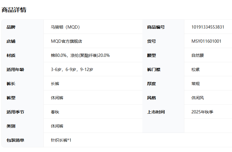 【秒】【特】【MQD】男女童基础百搭裤子长裤