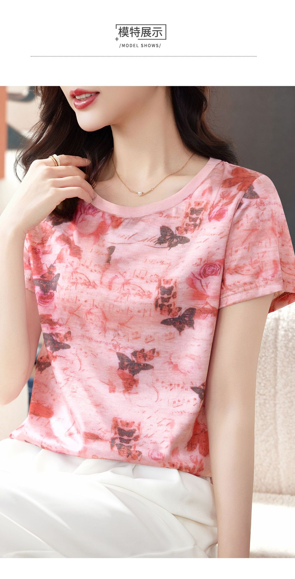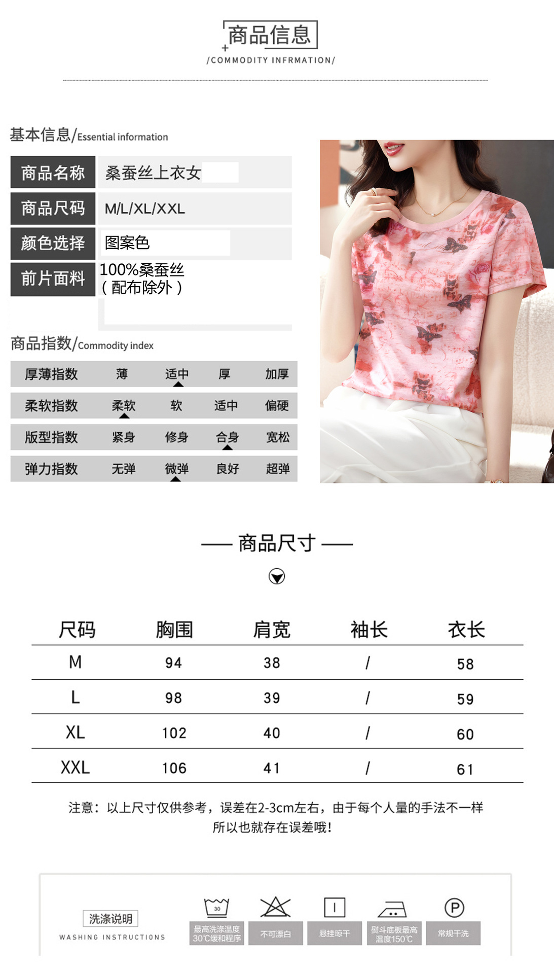 丁摩 真丝圆领印花桑蚕丝T恤上衣 商品图4