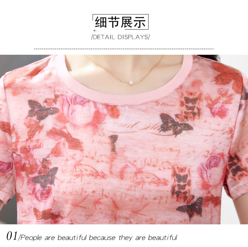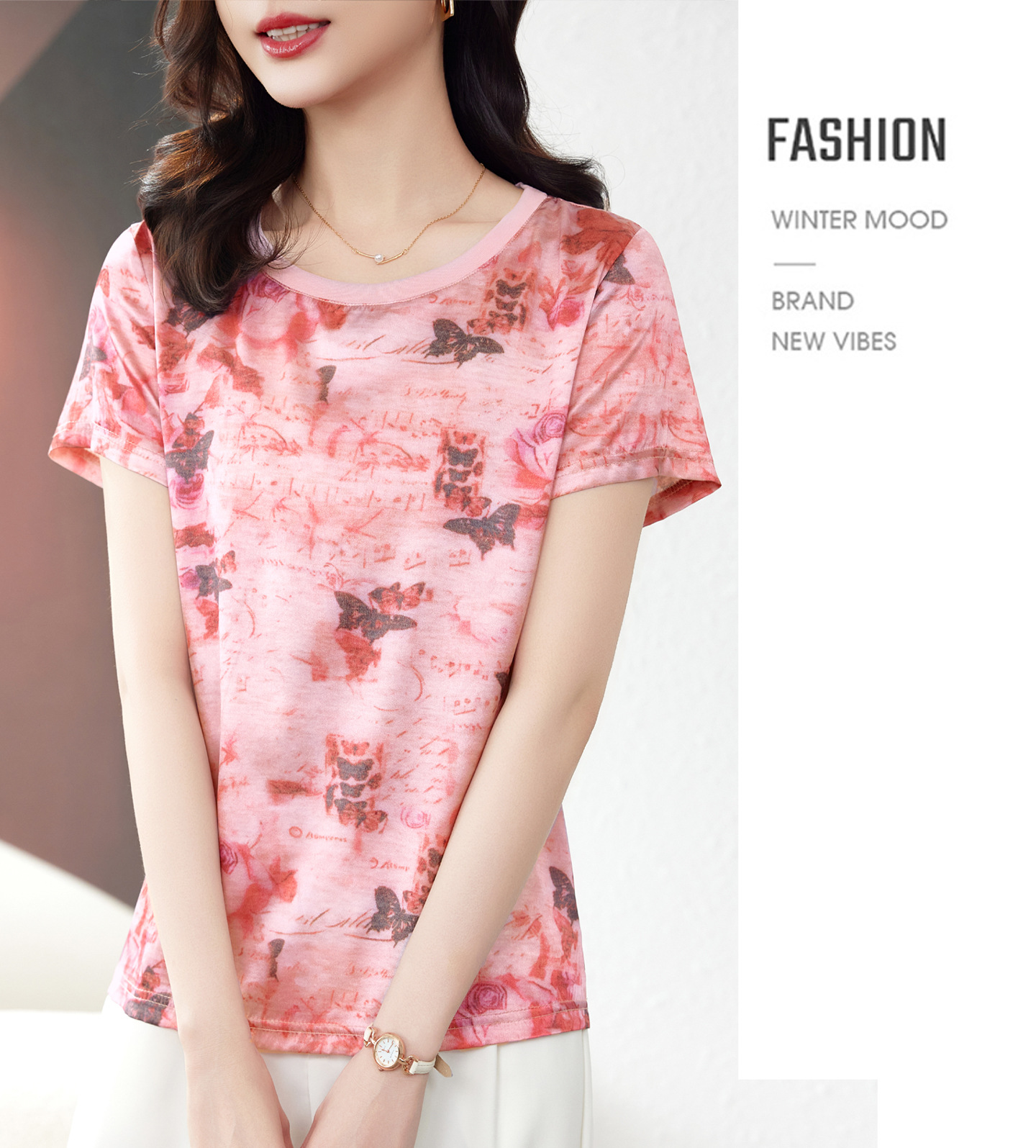 丁摩 真丝圆领印花桑蚕丝T恤上衣 商品图2