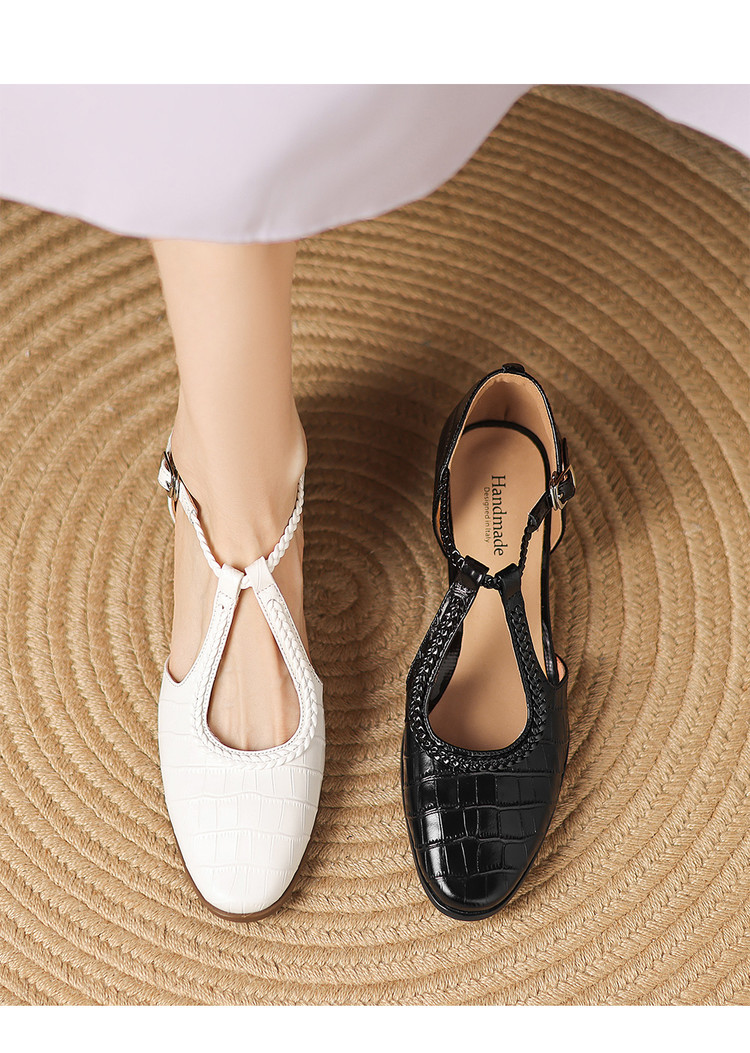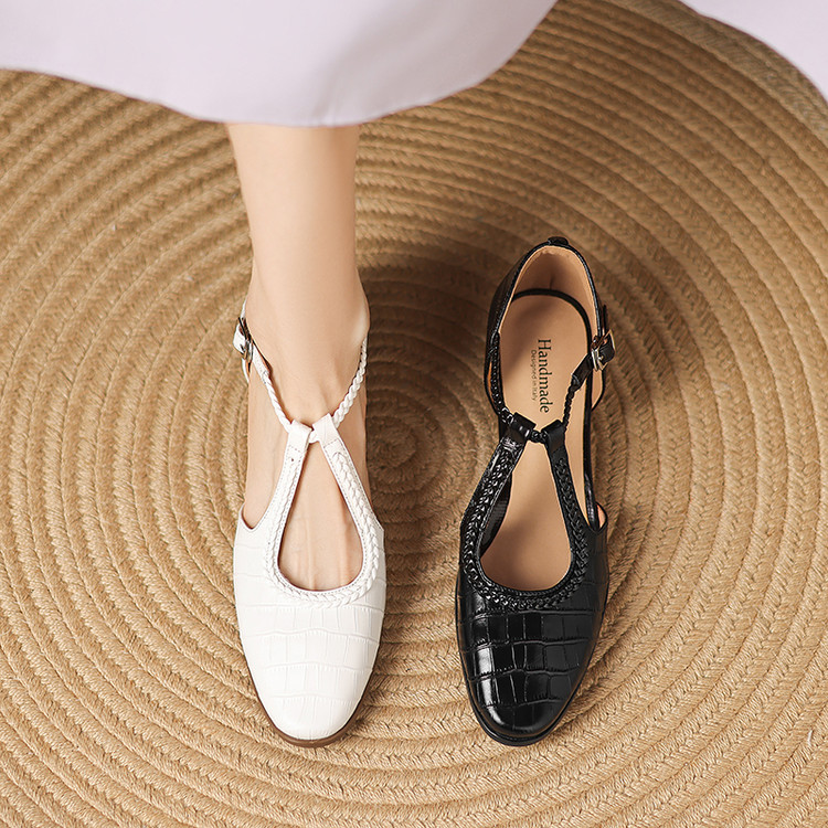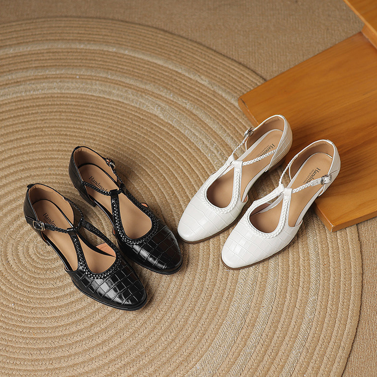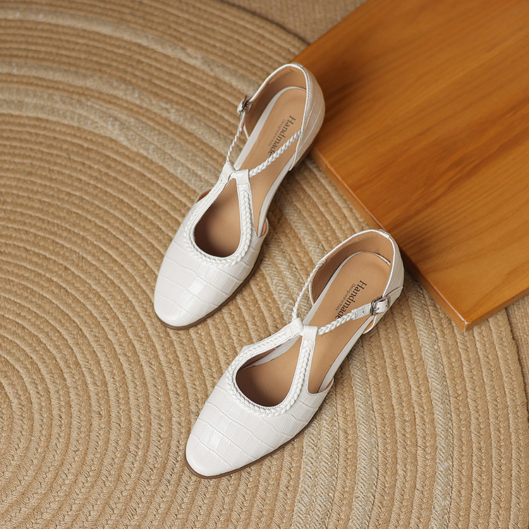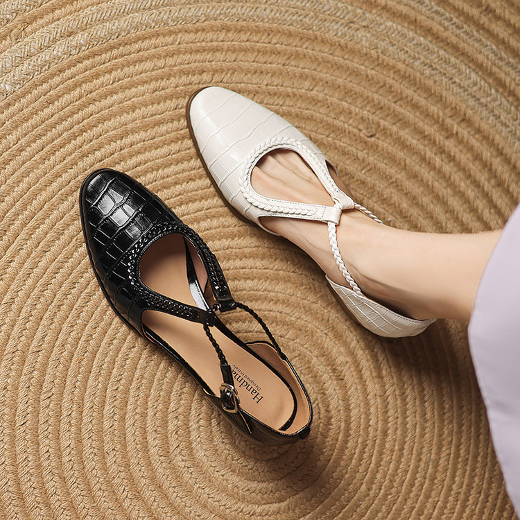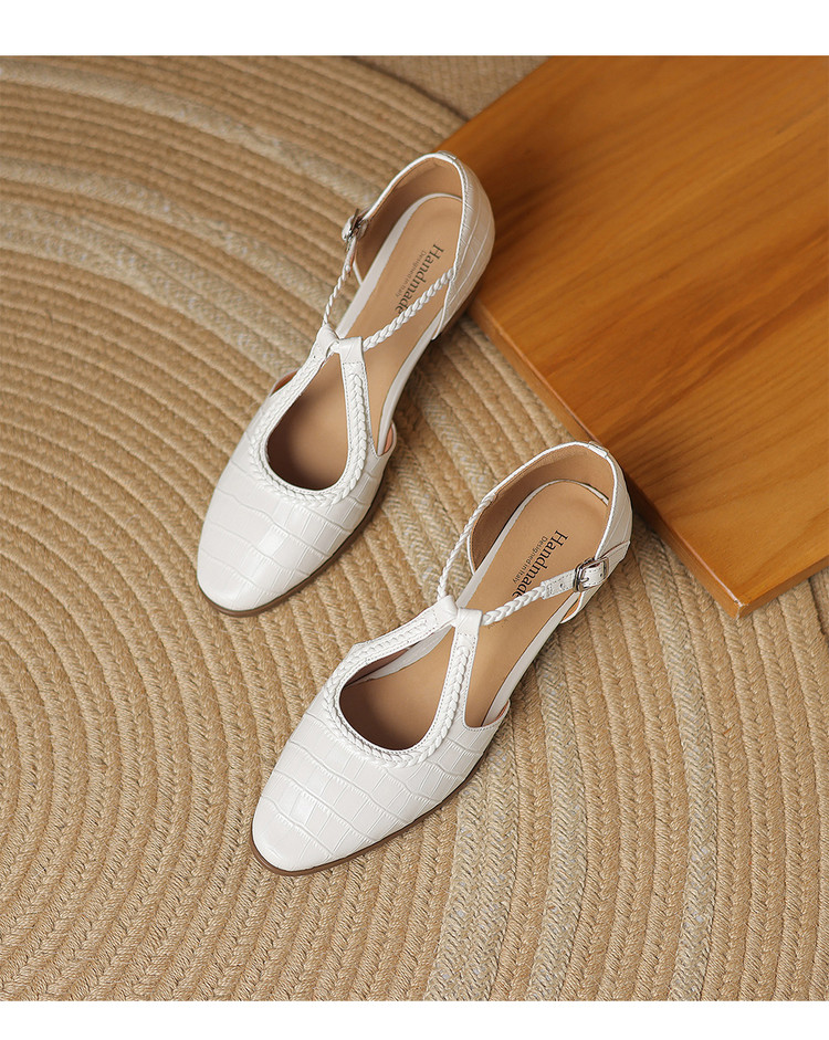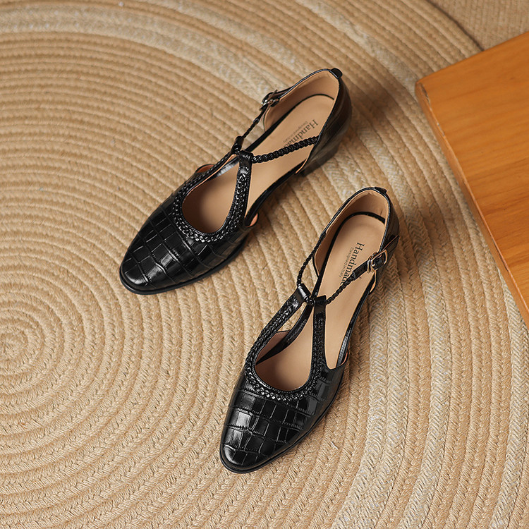【预售5天】法式复古包头凉鞋女新款夏真皮尖头交叉带中空单鞋低跟小皮鞋LD&7364