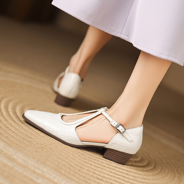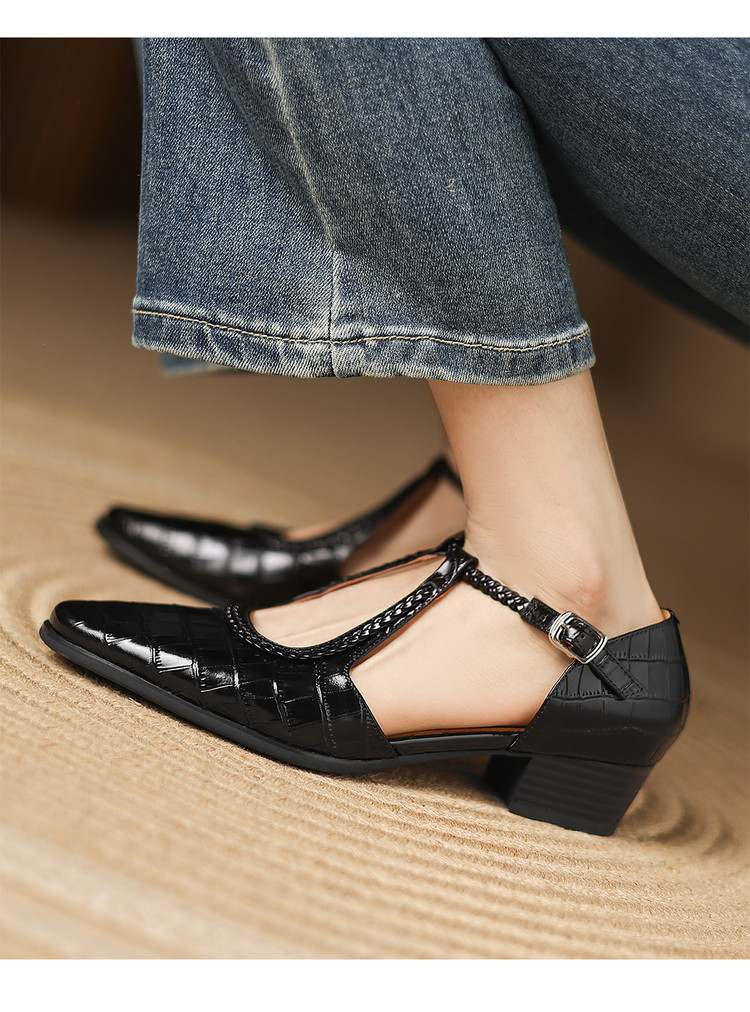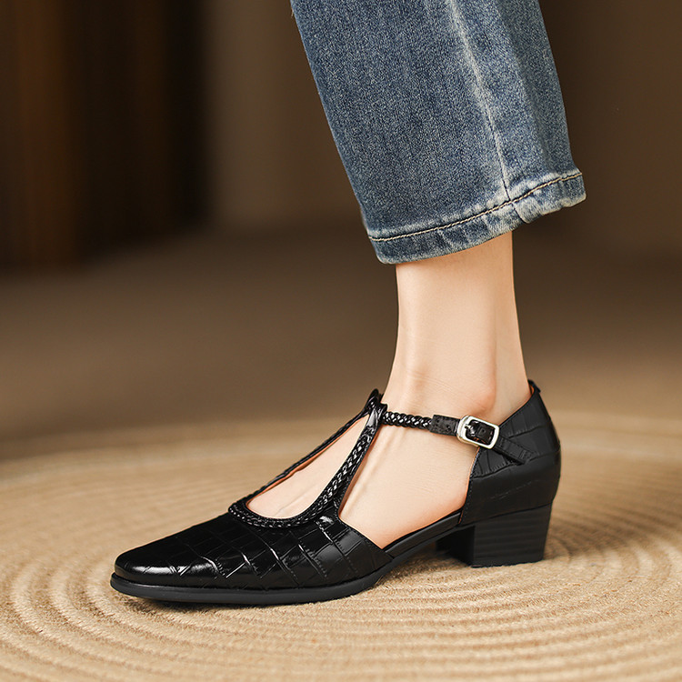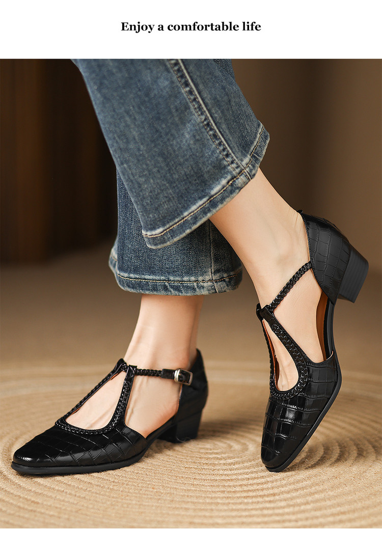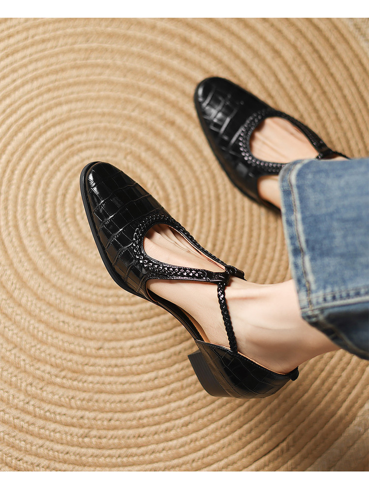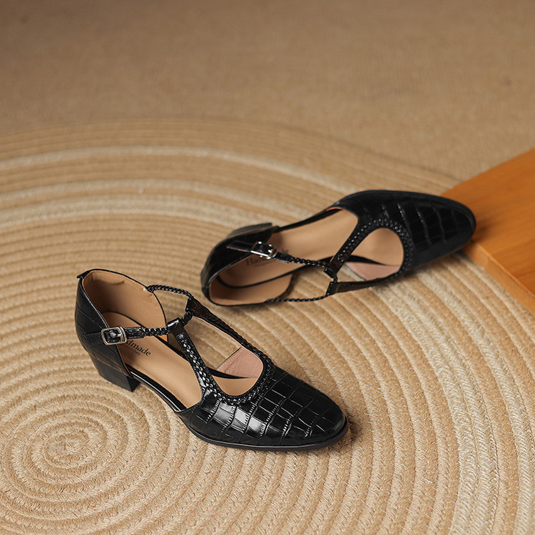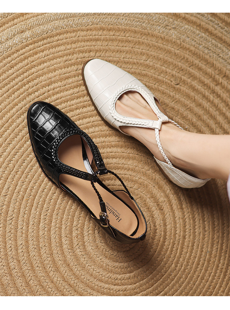 【预售5天】法式复古包头凉鞋女新款夏真皮尖头交叉带中空单鞋低跟小皮鞋LD&7364