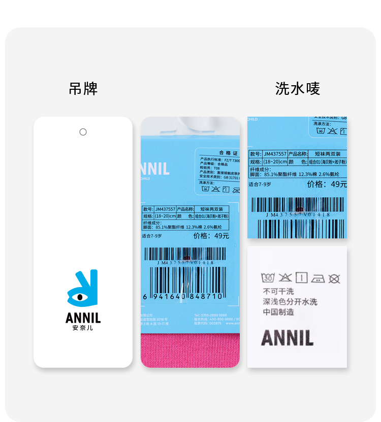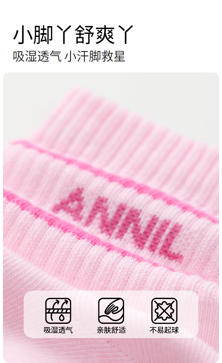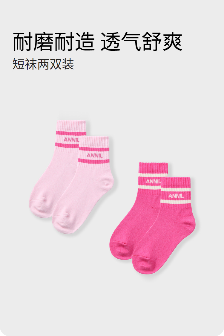 【5A抗菌家居】男女童短袜两双装学生袜子新款安奈儿童装实体店同款JM437557