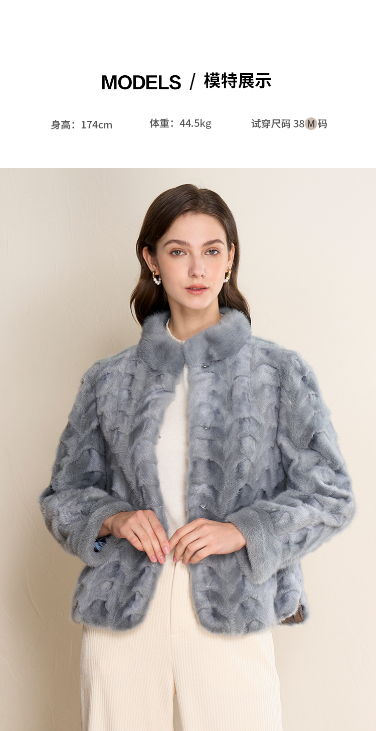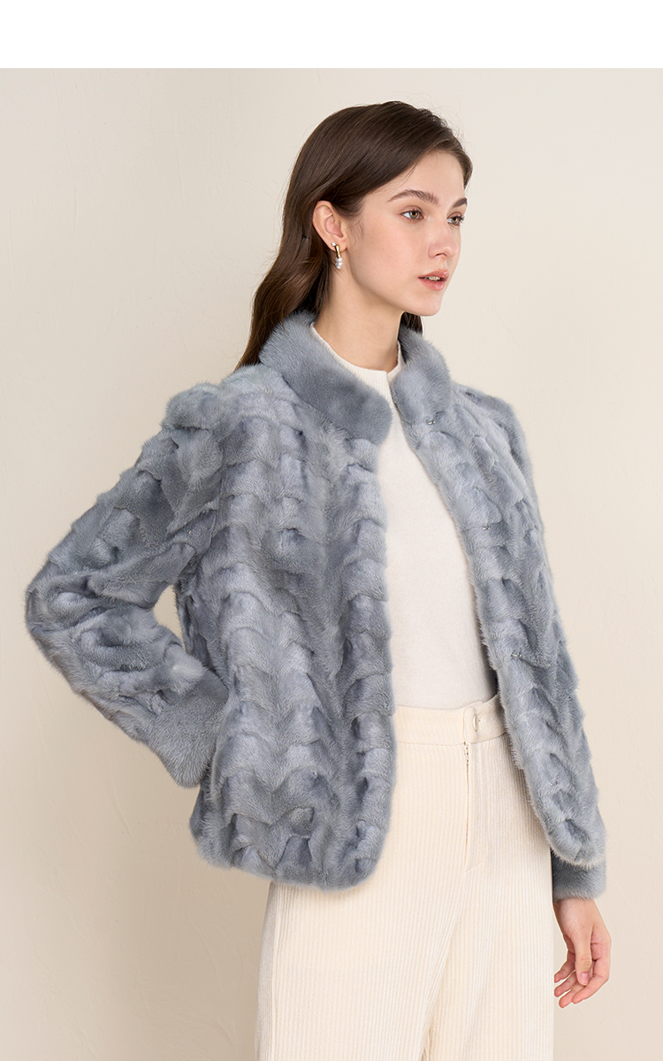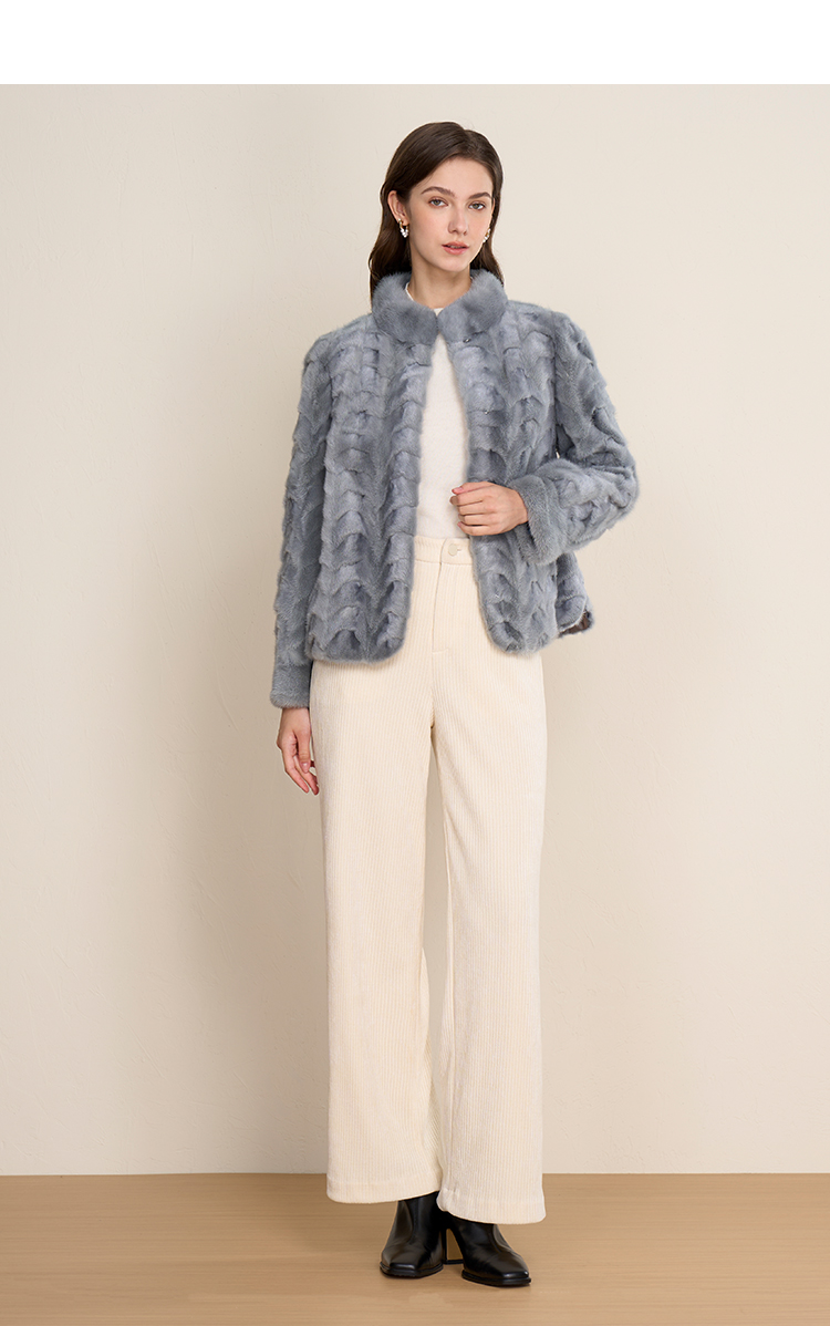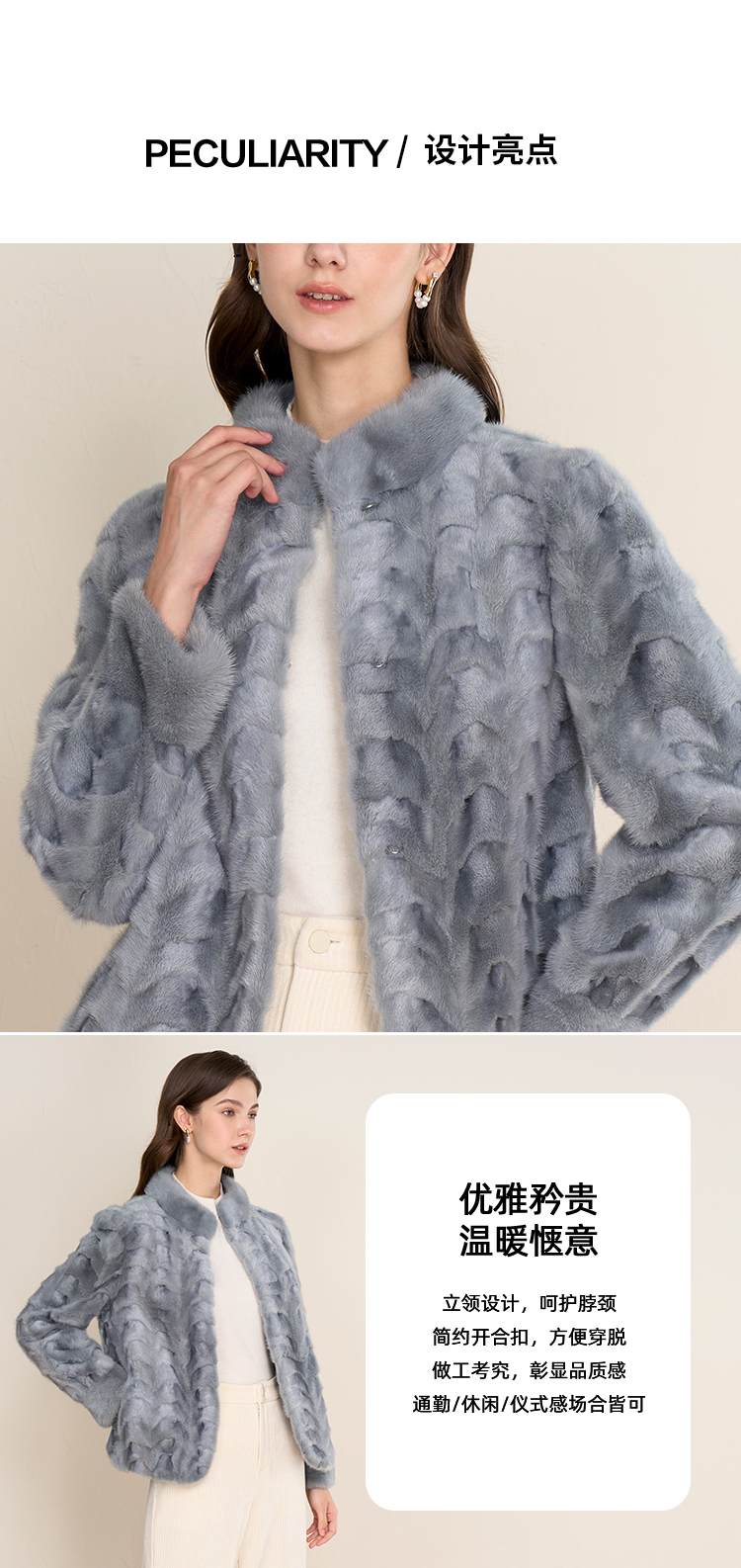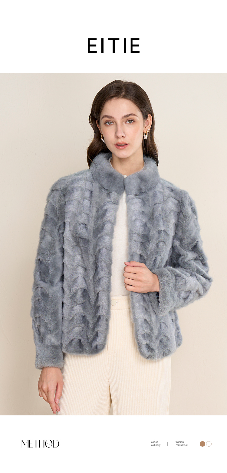 EITIE爱特爱时尚小立领浅蓝色轻奢直筒水貂毛皮草外套2025冬新款D2593907X