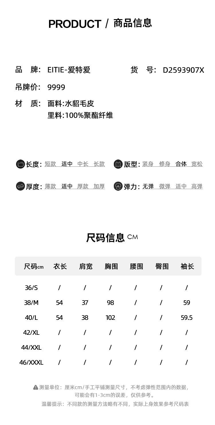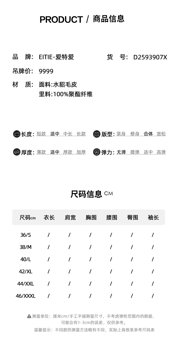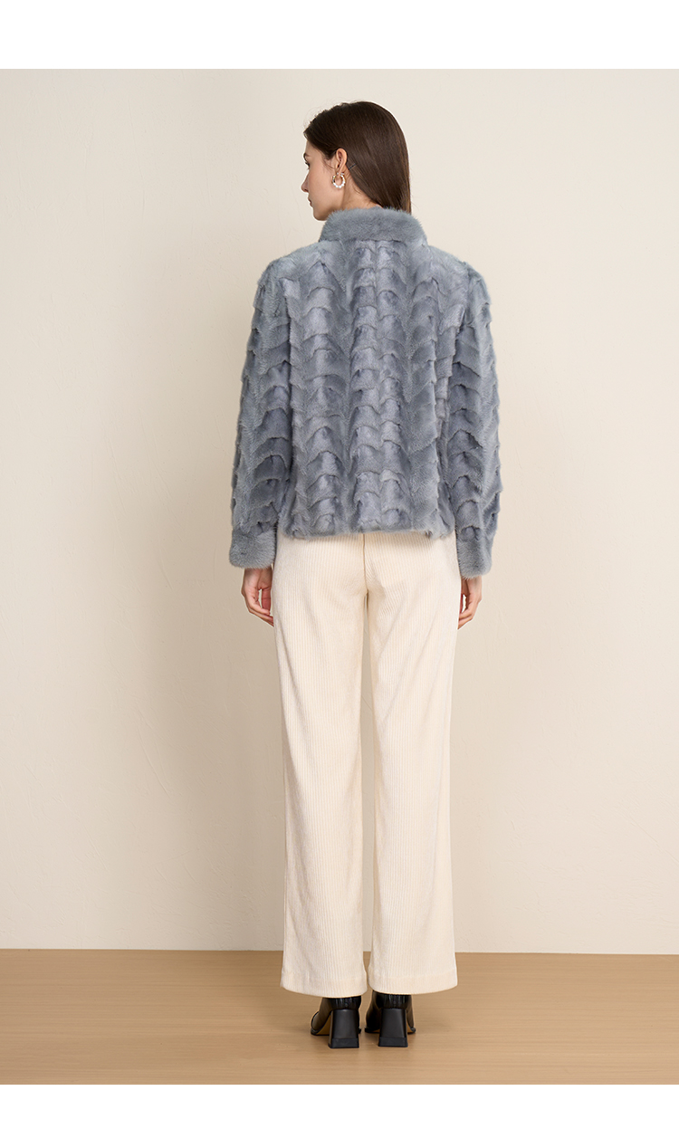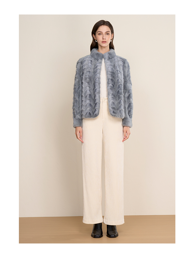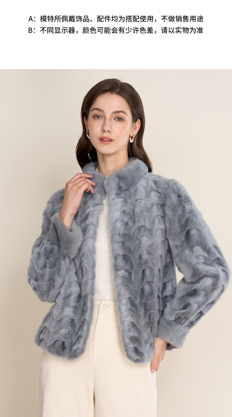 EITIE爱特爱时尚小立领浅蓝色轻奢直筒水貂毛皮草外套2025冬新款D2593907X