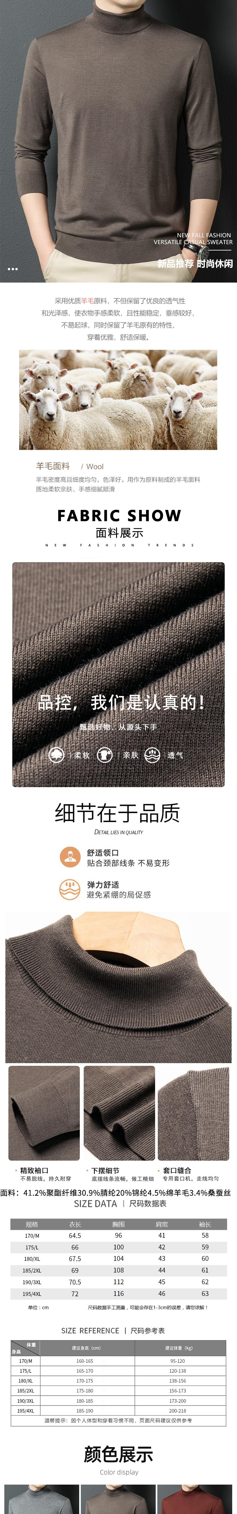 丰讯 男士秋冬季双翻领长袖纯色毛衣休闲针织衫 FXT5355