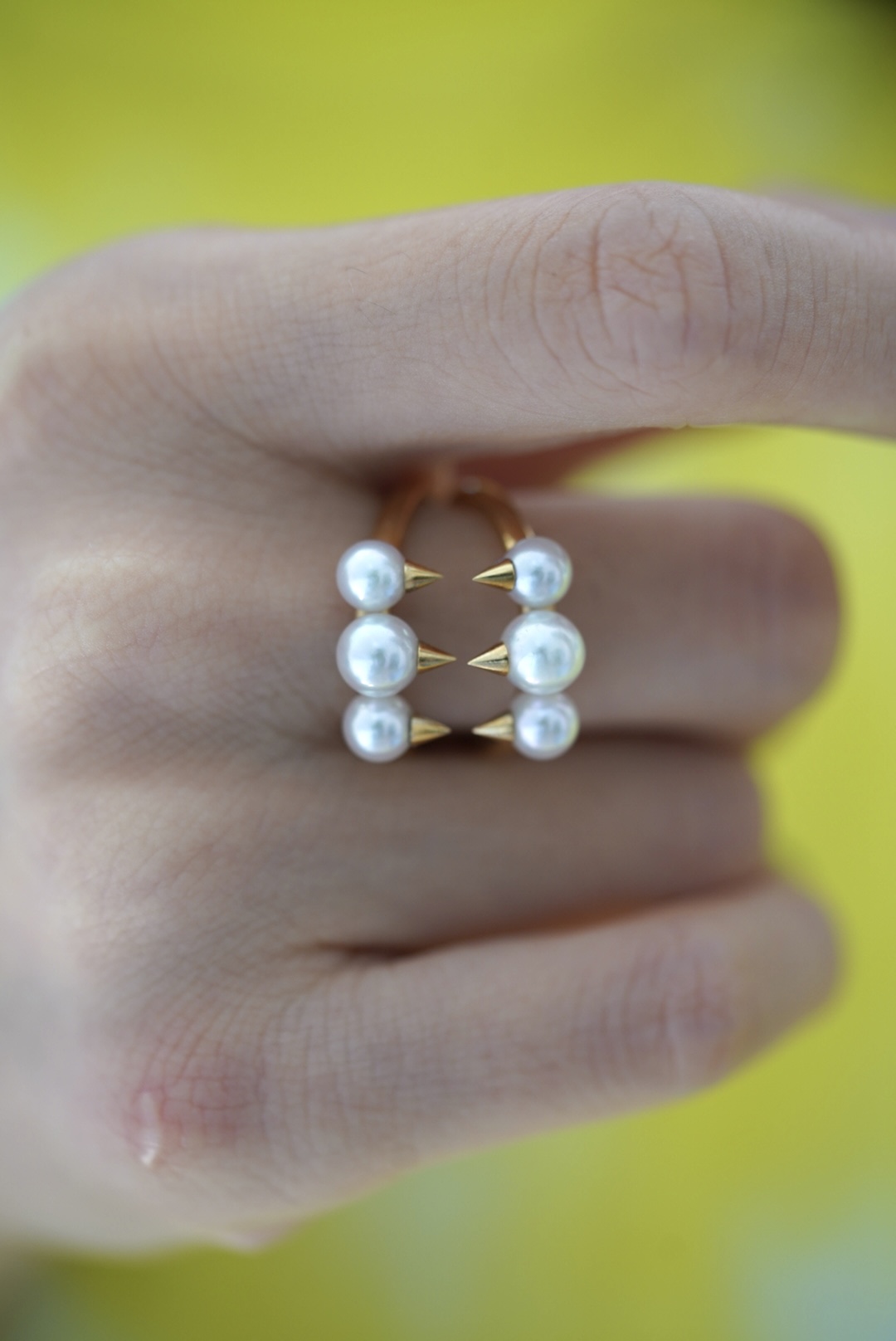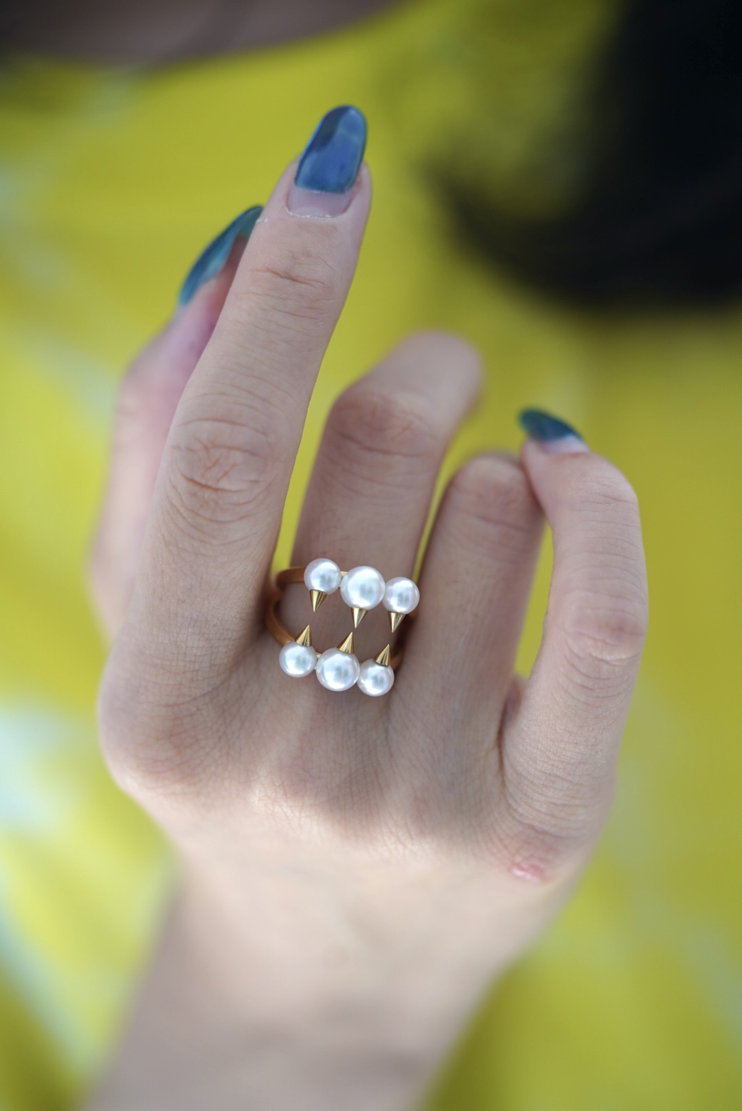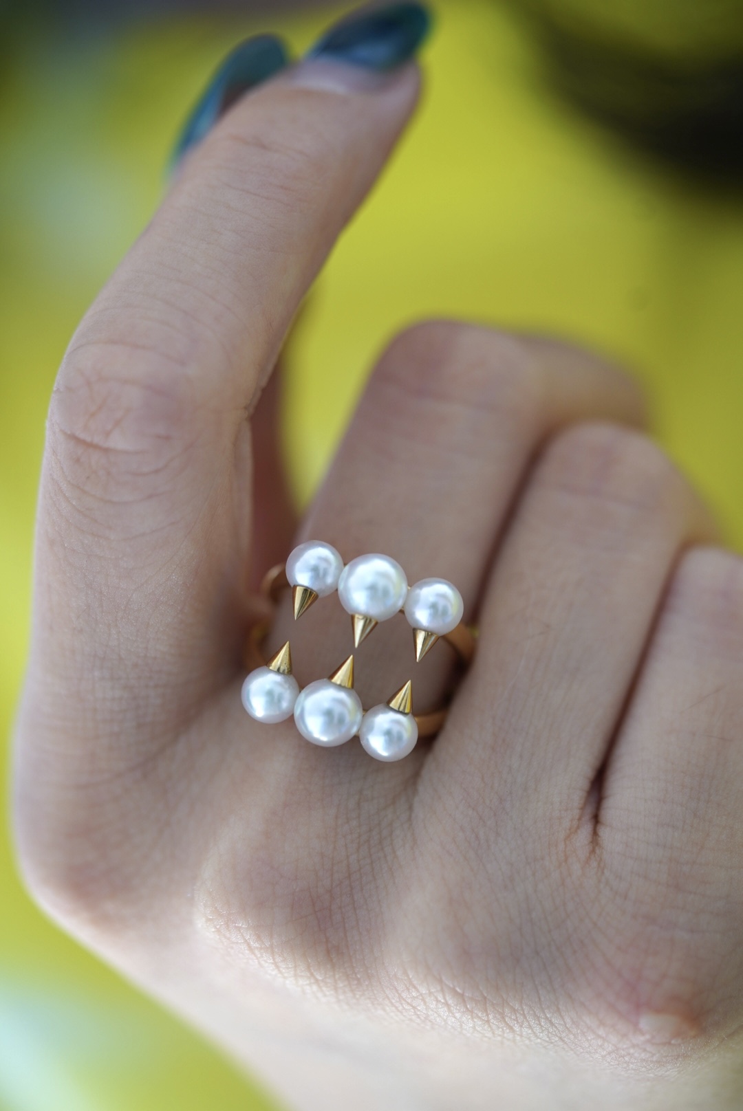 Akoya戒指「小虎牙」5-6mm 极美正圆Akoya白月光珠 颗颗极光风格时尚现代5899🉐
