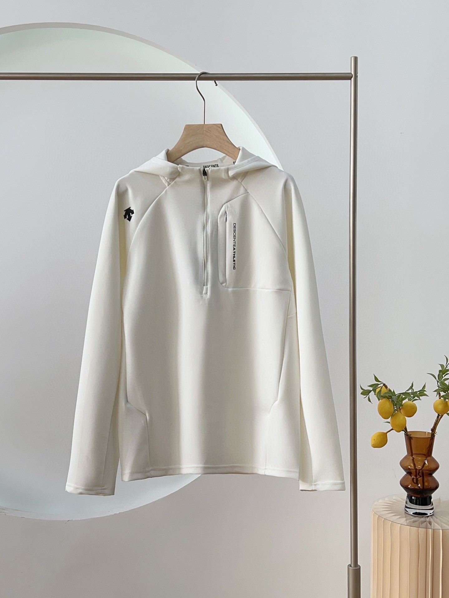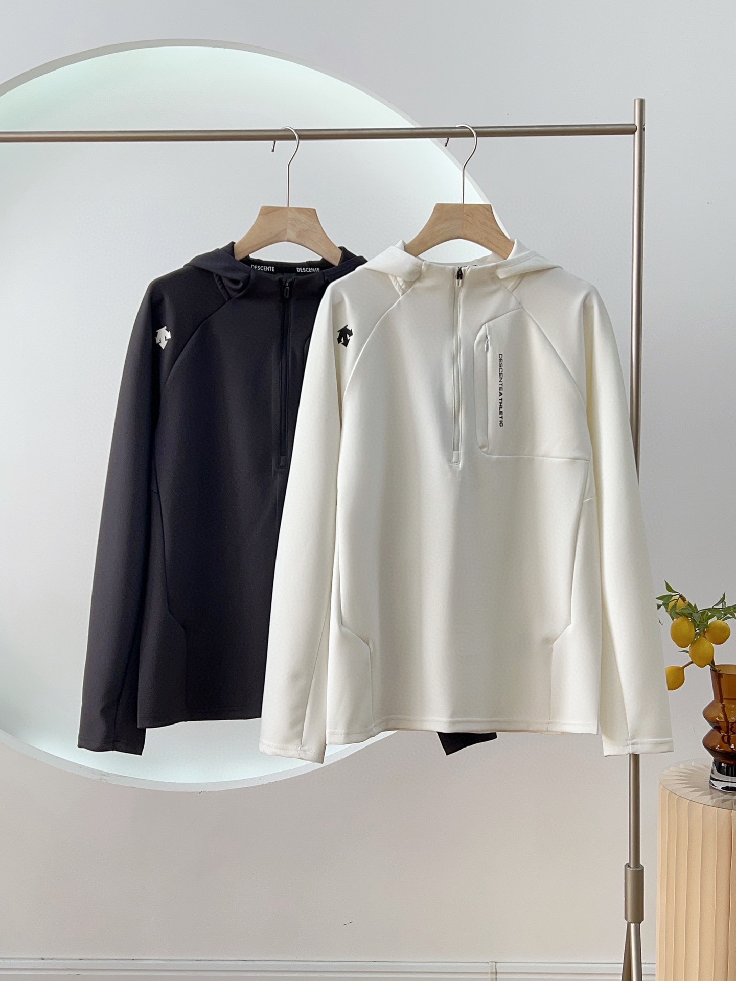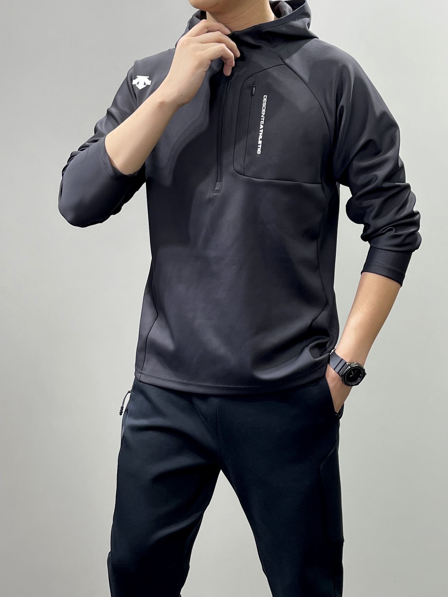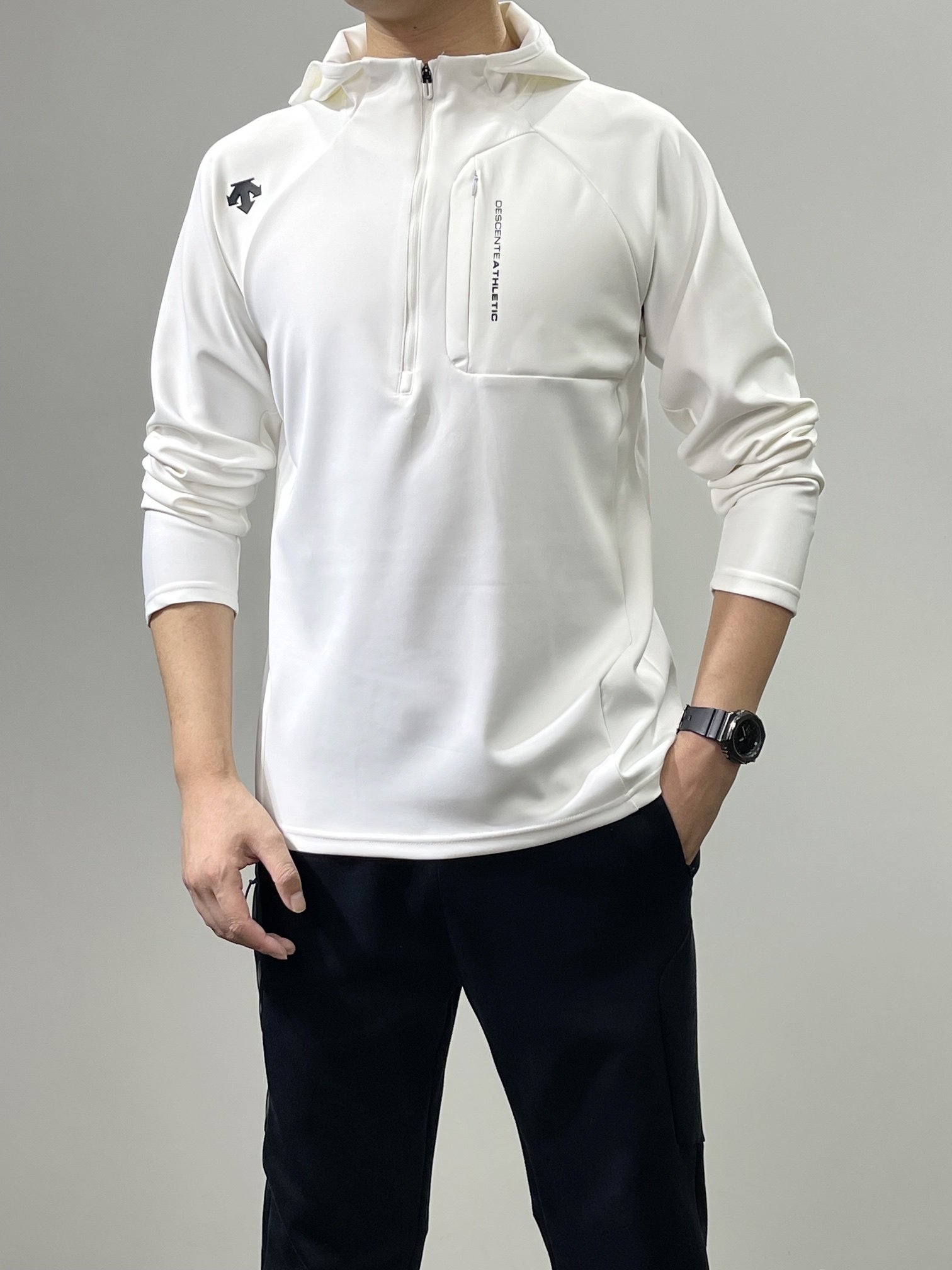 💰125 货号108225125 qk DESCENTE迪桑特半拉链机能连帽卫衣外套 采用优级面料涤氨平纹布,高弹力。顺滑舒适透气 胸前采用拉链口袋设计,统一协调不显单调 连帽设计更加彰显青春活力 右肩的立体LOGO,高温热烫印的工艺加持,拉链口袋印花字母,增加了设计的趣味性和观赏度 立体剪裁,版型合体。弹性好无色差不易变形!耐穿洗~ 颜色:黑色 白色 码数:M L XL XXL 3XL 尺码推荐: 125斤以内适合M 125–140斤适合L 140–160斤适合XL 160–180斤适合XXL 180–200斤适合3XL