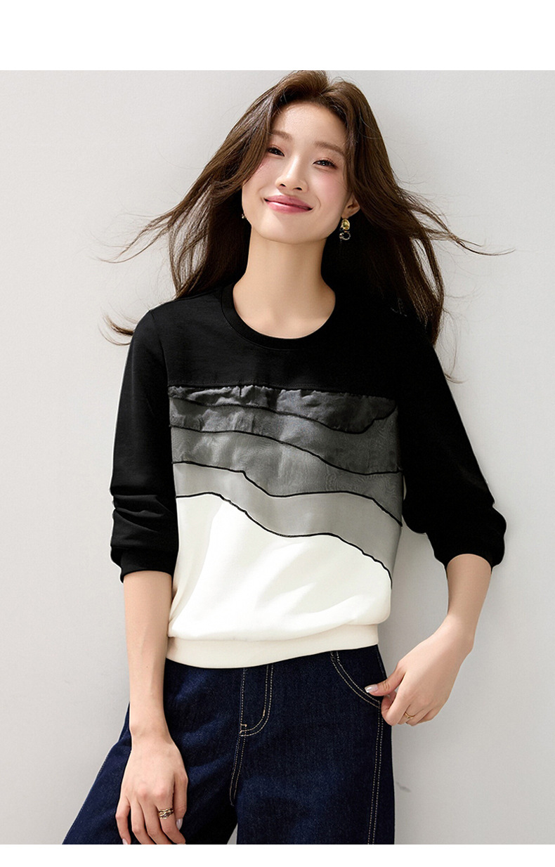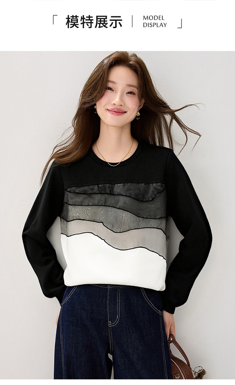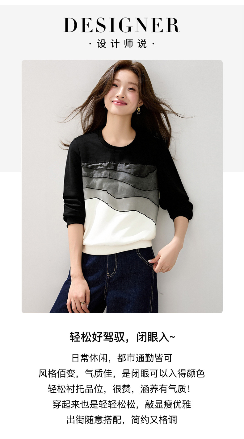 CC 2128松弛感圆领针织衫撞色条纹长袖t恤