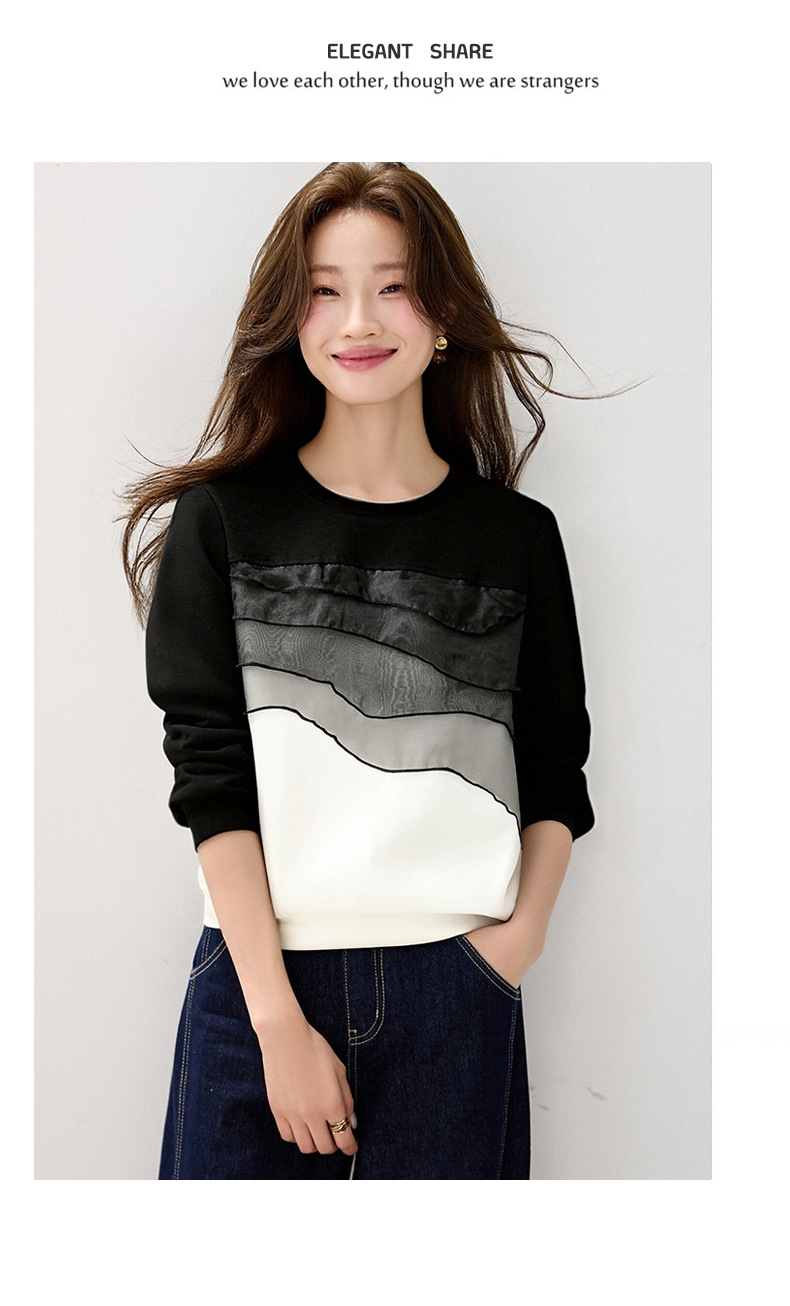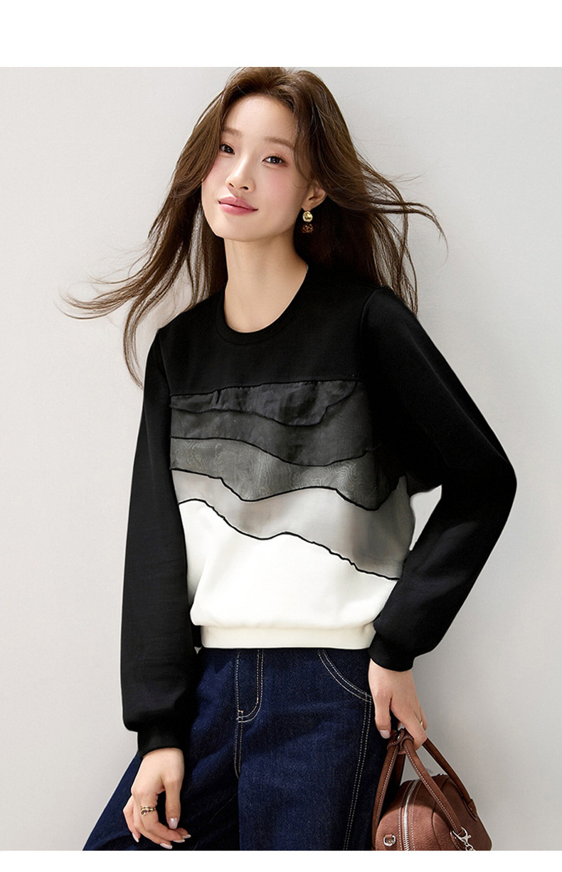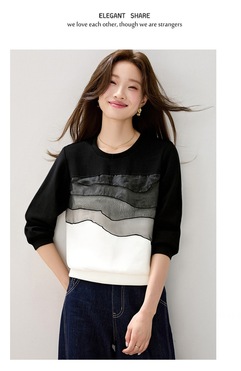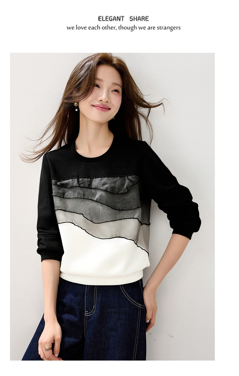 CC 2128松弛感圆领针织衫撞色条纹长袖t恤