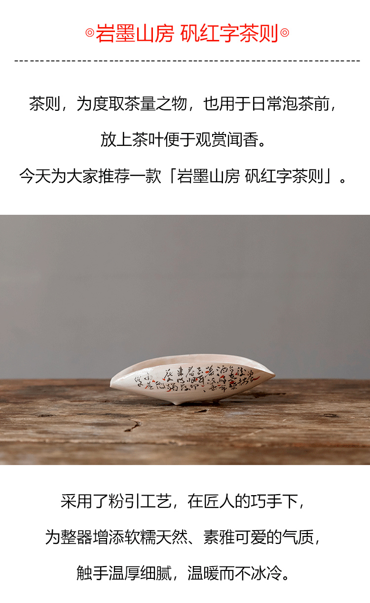 茶香记 岩墨山房 矾红字茶则 软糯素雅 字体洒脱 便于赏茶