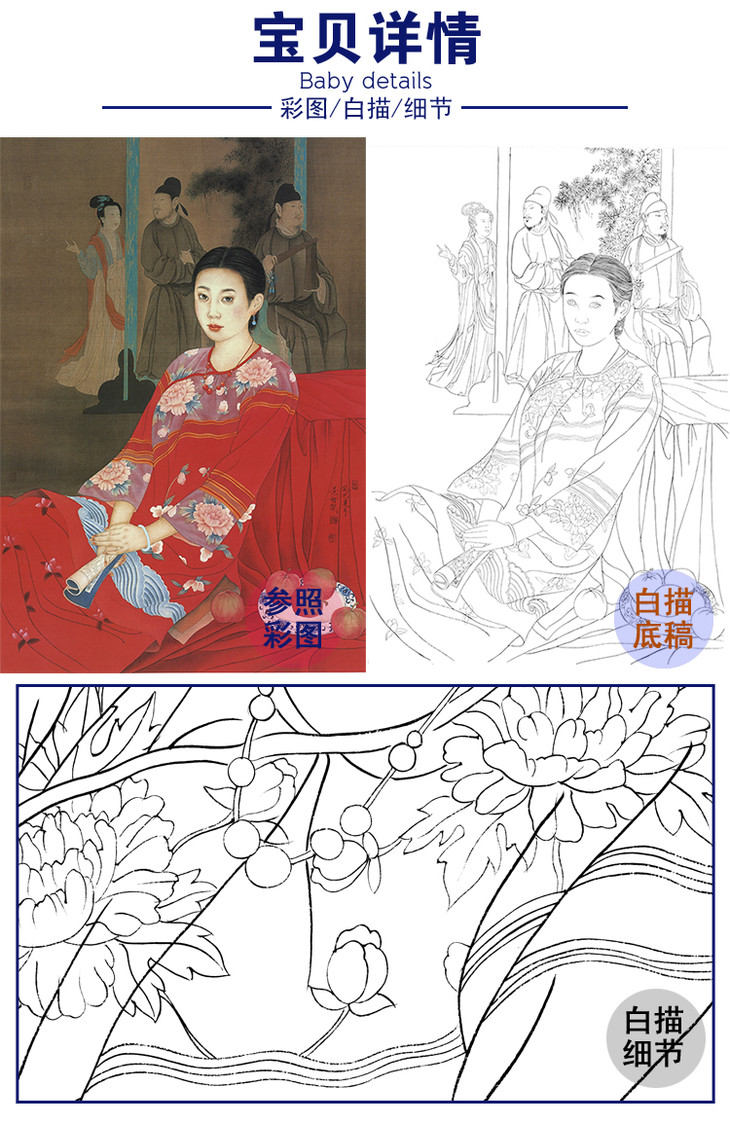 崔景哲工笔传统仕女人物白描底稿-斗方小品册页-B110
