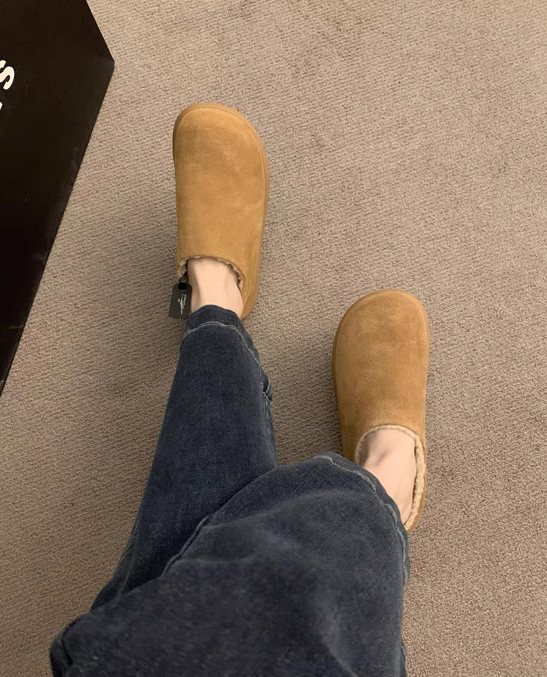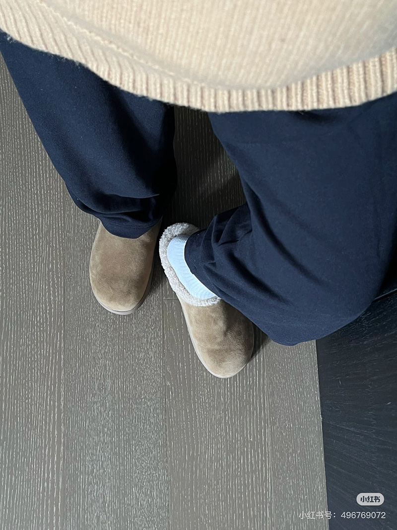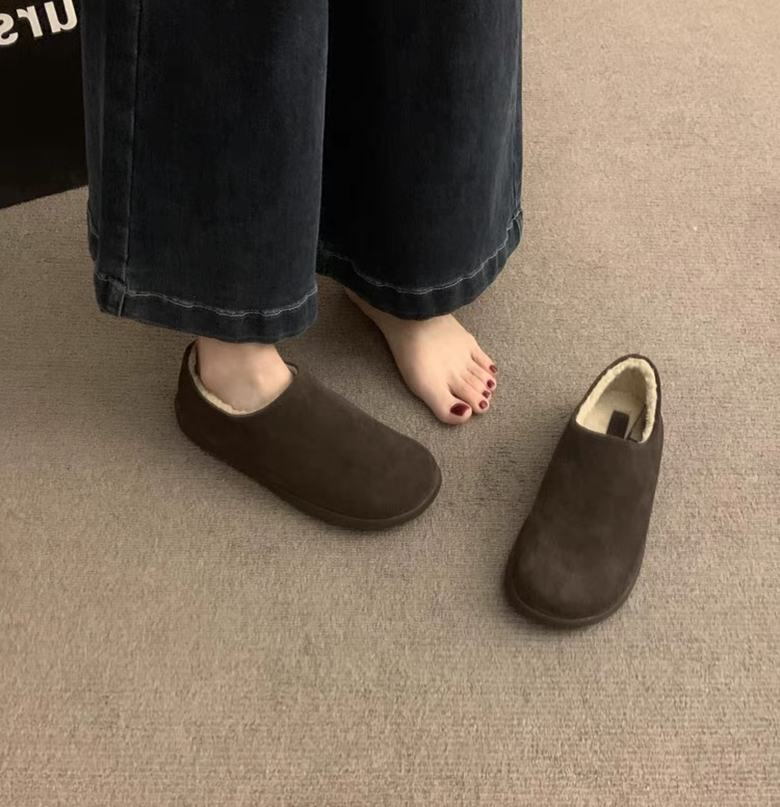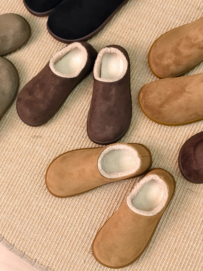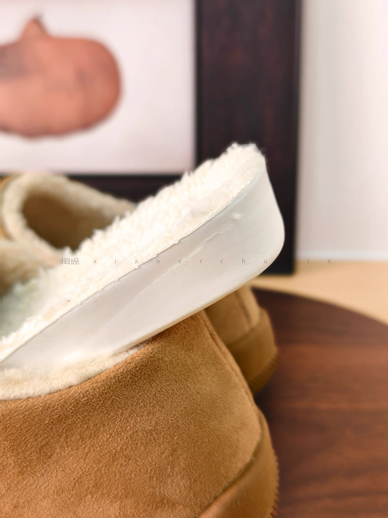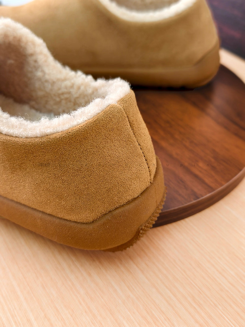 鞋面选用反皮绒材质,表面覆盖细密短绒,触感如刚出炉的舒芙蕾,软糯中带着细微颗粒感,指尖划过能感受到绒毛的轻微回弹!