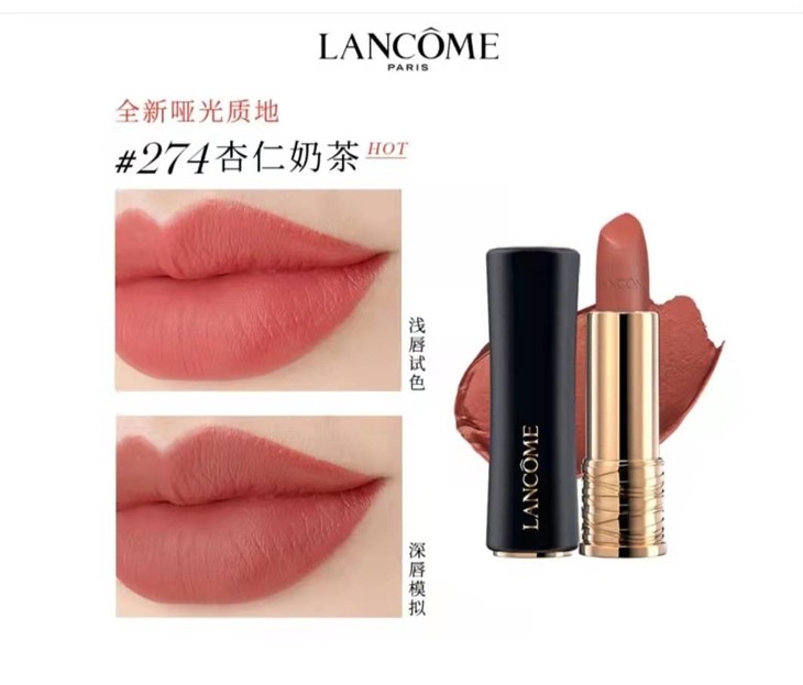 兰蔻小蛮腰唇膏#274(哑光)👍 出场自是“王者风范”👸🏻略带弧度纤细的腰身💃🏻,简直不要太迷人🤗。“杏仁奶茶色”温柔的复古乡💗,上嘴丝滑不❌显纹,淡淡的玫瑰芬芳,留在嘴齿间👄。“哑光”略显唇纹‼️。上嘴涂抹前,🉑使用唇部打底,更好打造嘟嘟唇👄。不挑肤色,素颜上唇显气色⭐。妆后上唇显温柔。