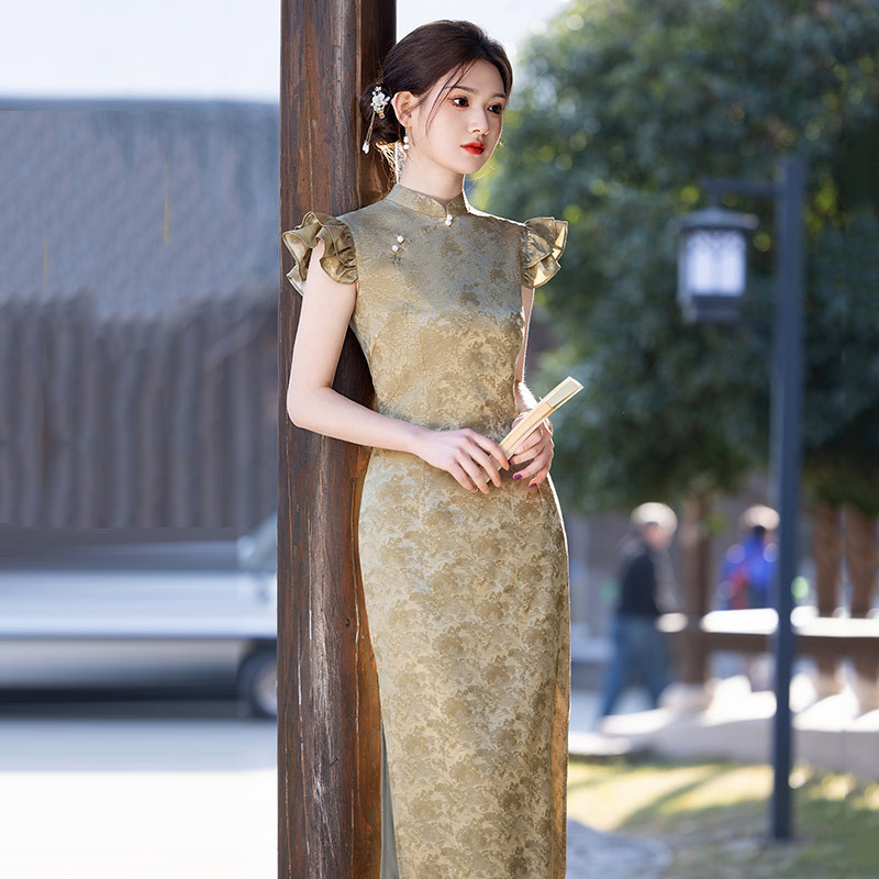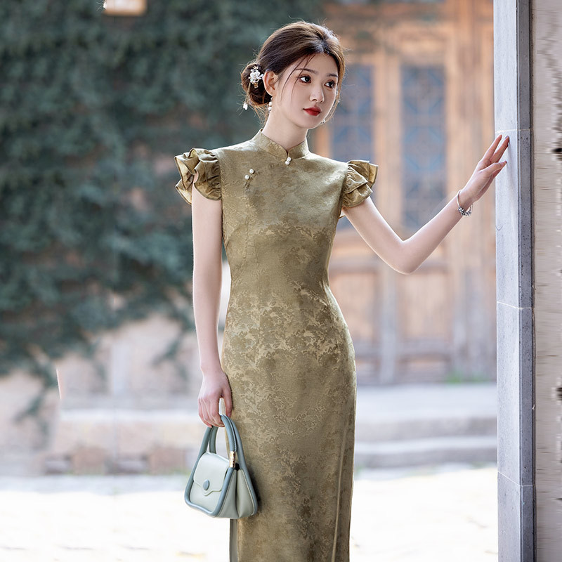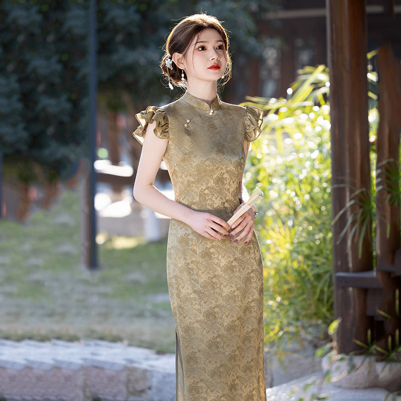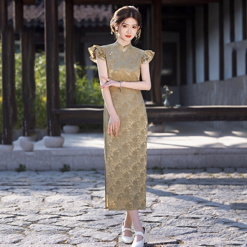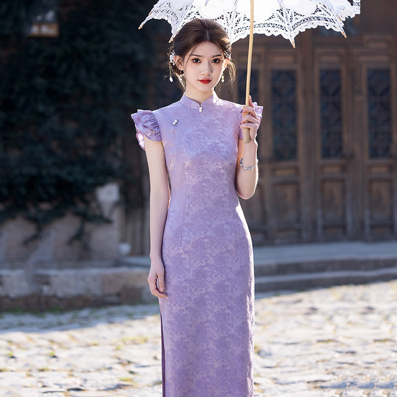 SC21575紫色国风新中式长款旗袍改良年轻款2025新款女复古修身晚礼服夏季