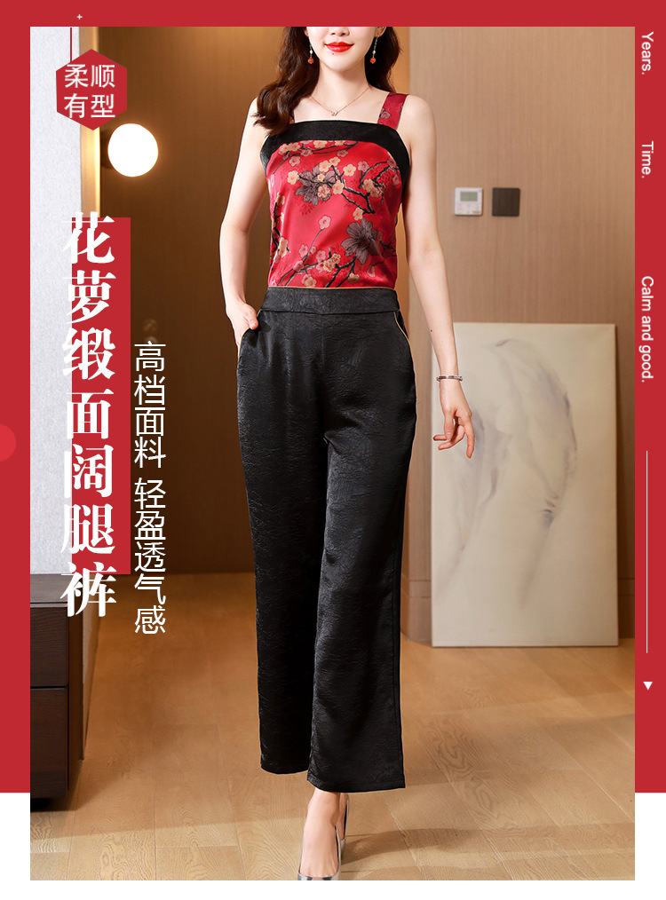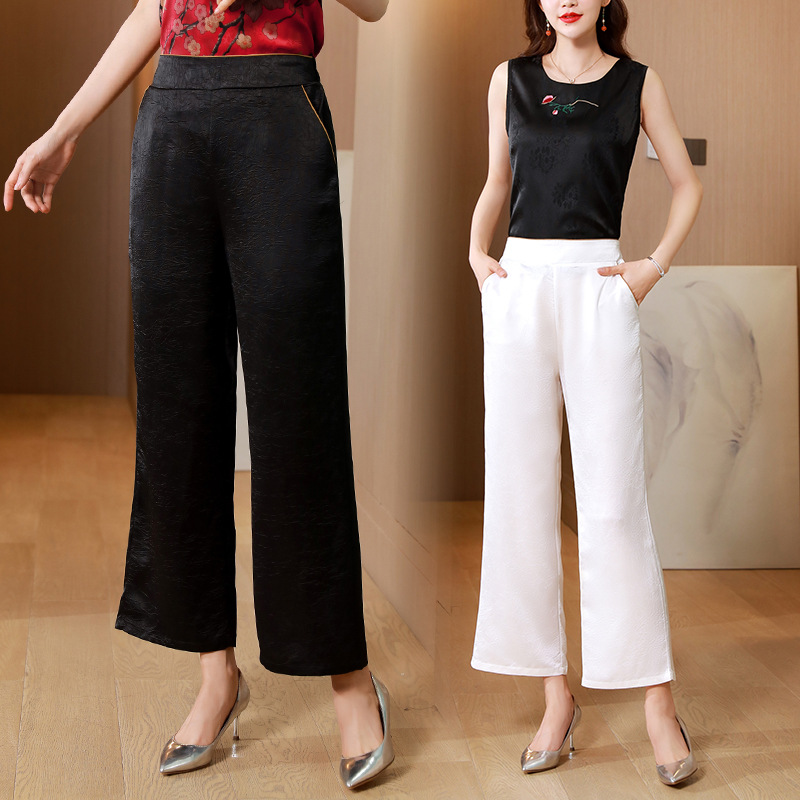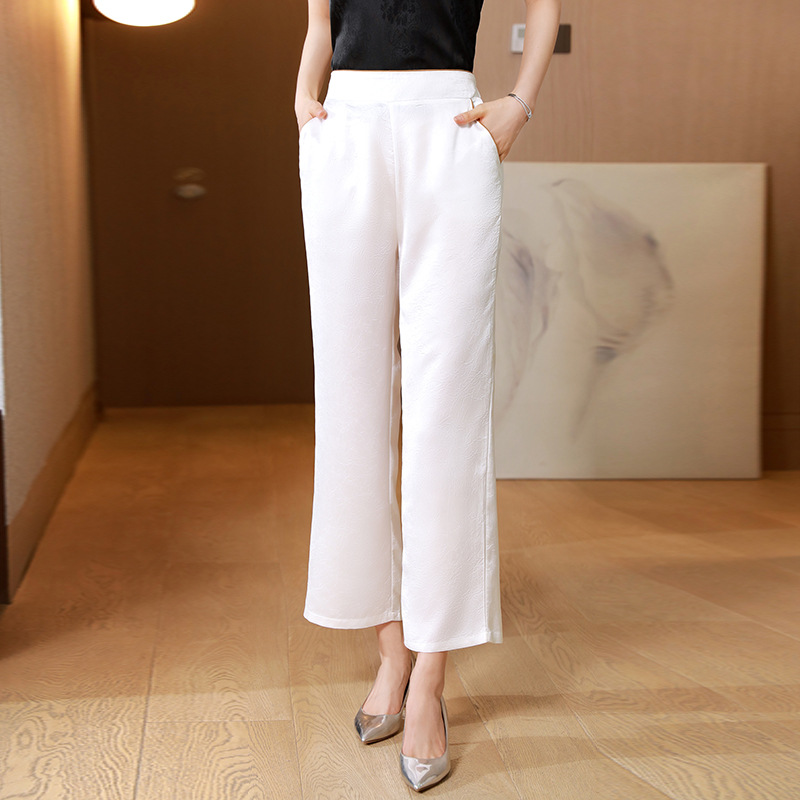 AHM-xfr5028新款时尚气质高腰仿香云纱提花休闲九分裤