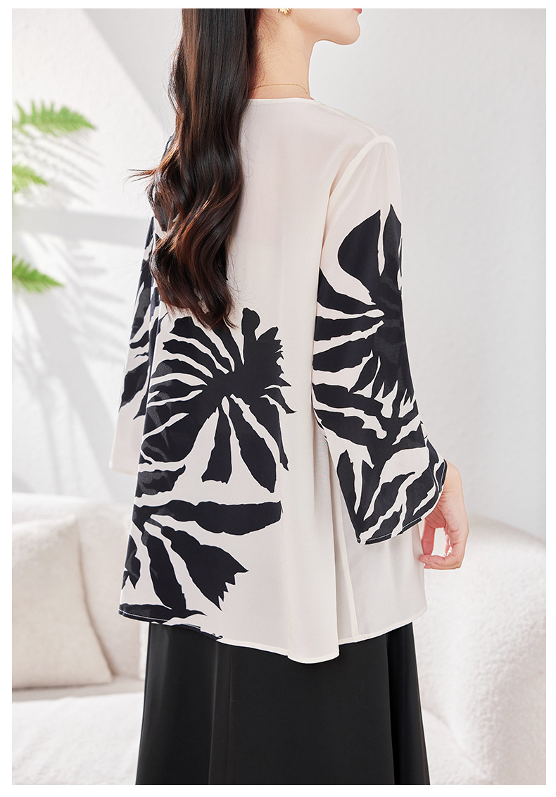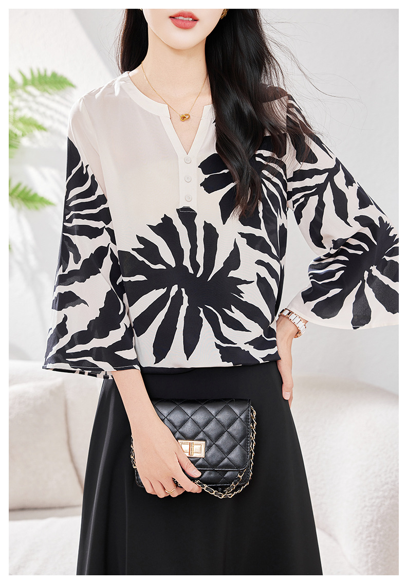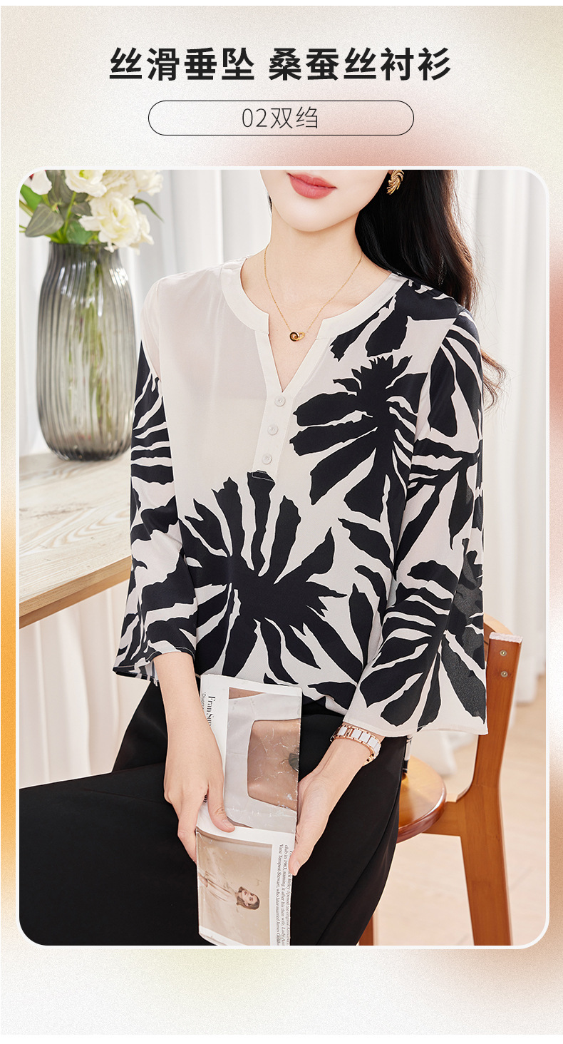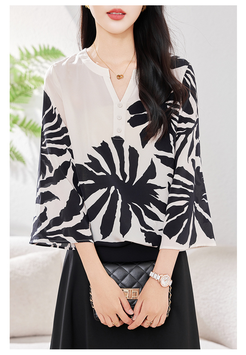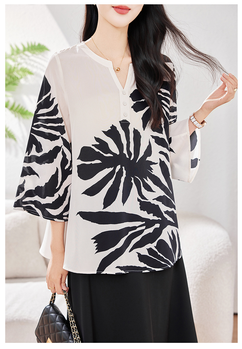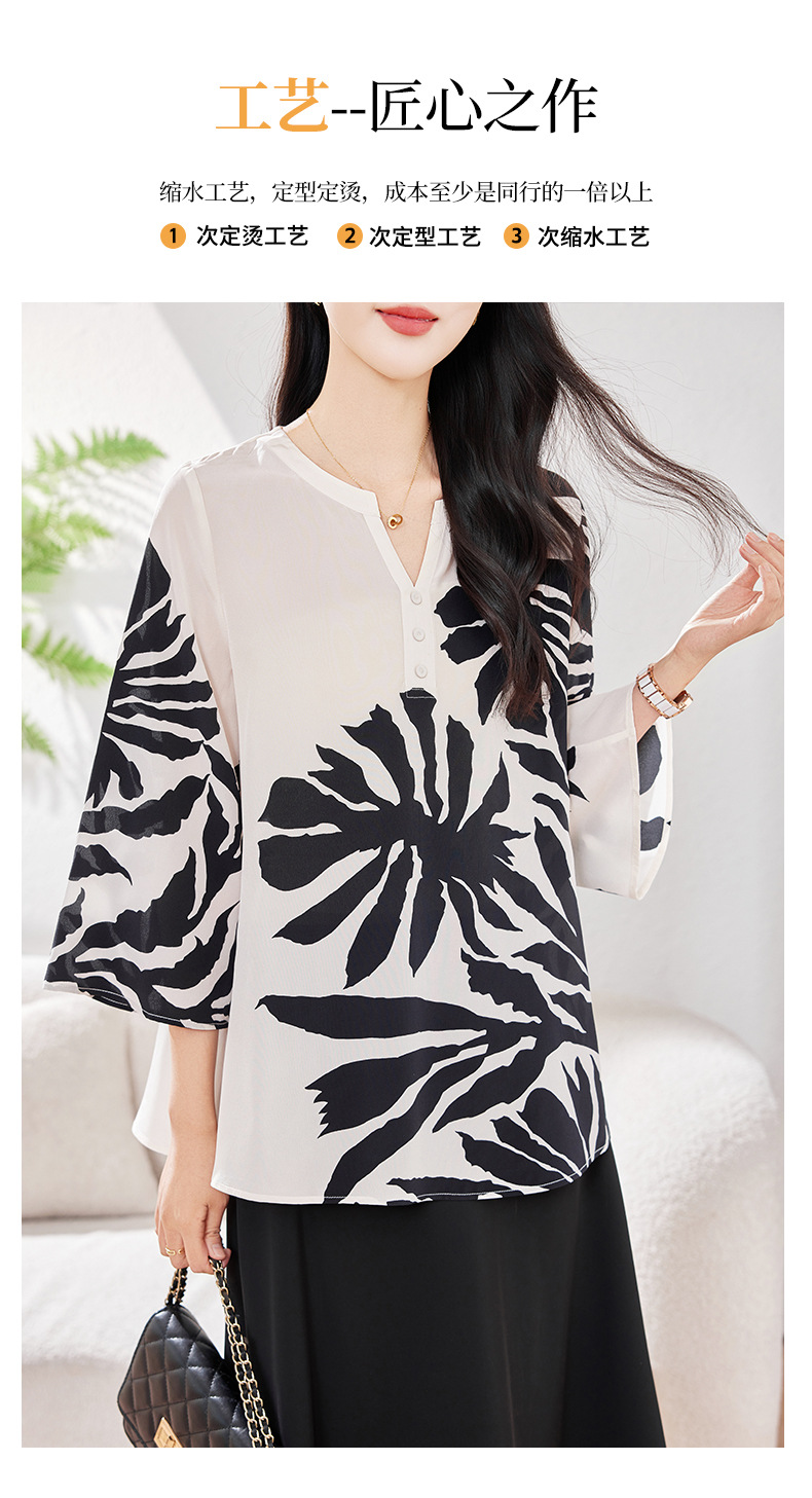 KQ-2026年春季欧美大码时尚日常通勤休闲夏季V领五分袖印花百搭衬衫