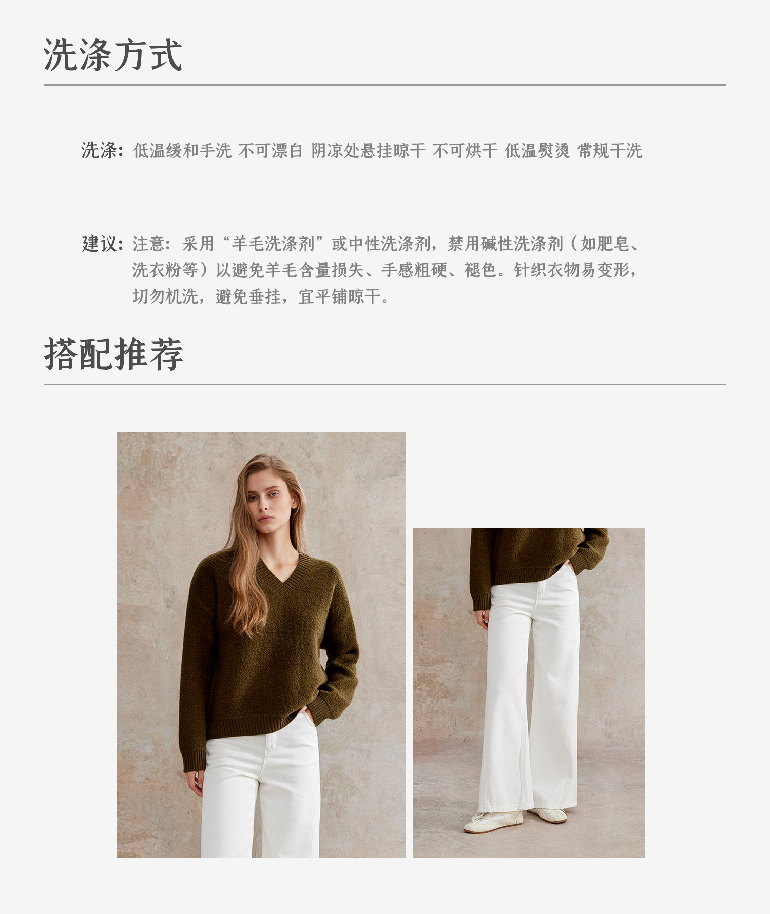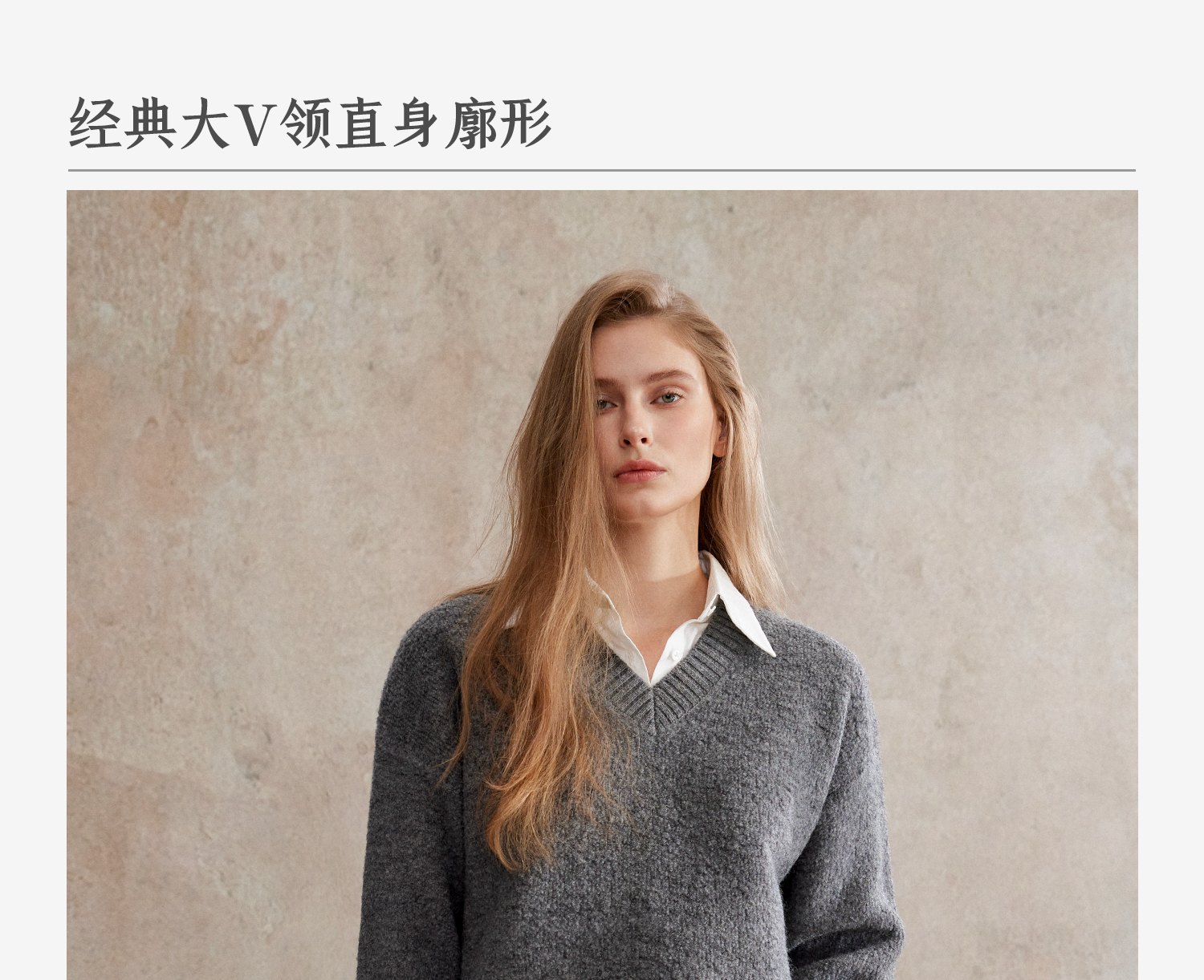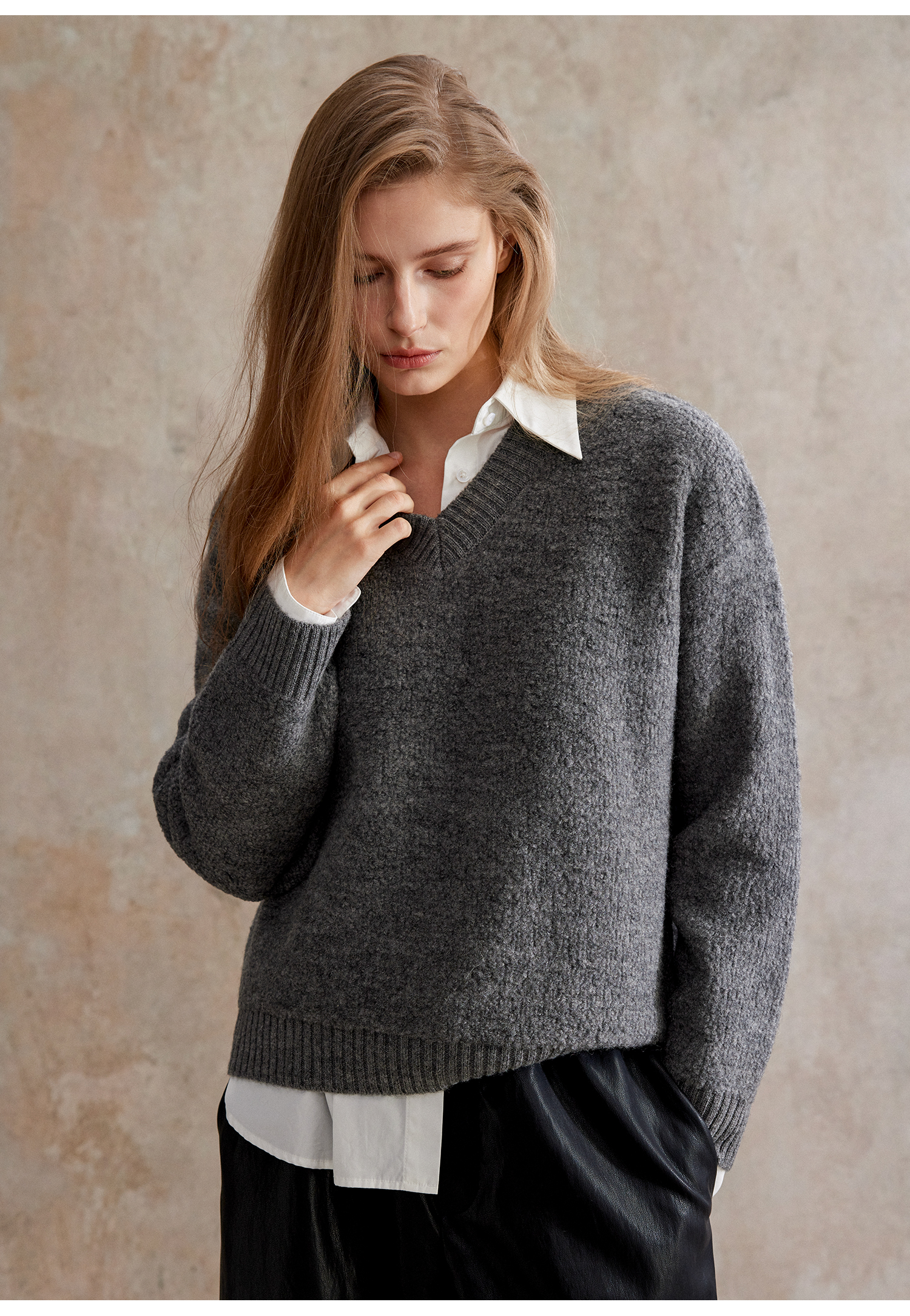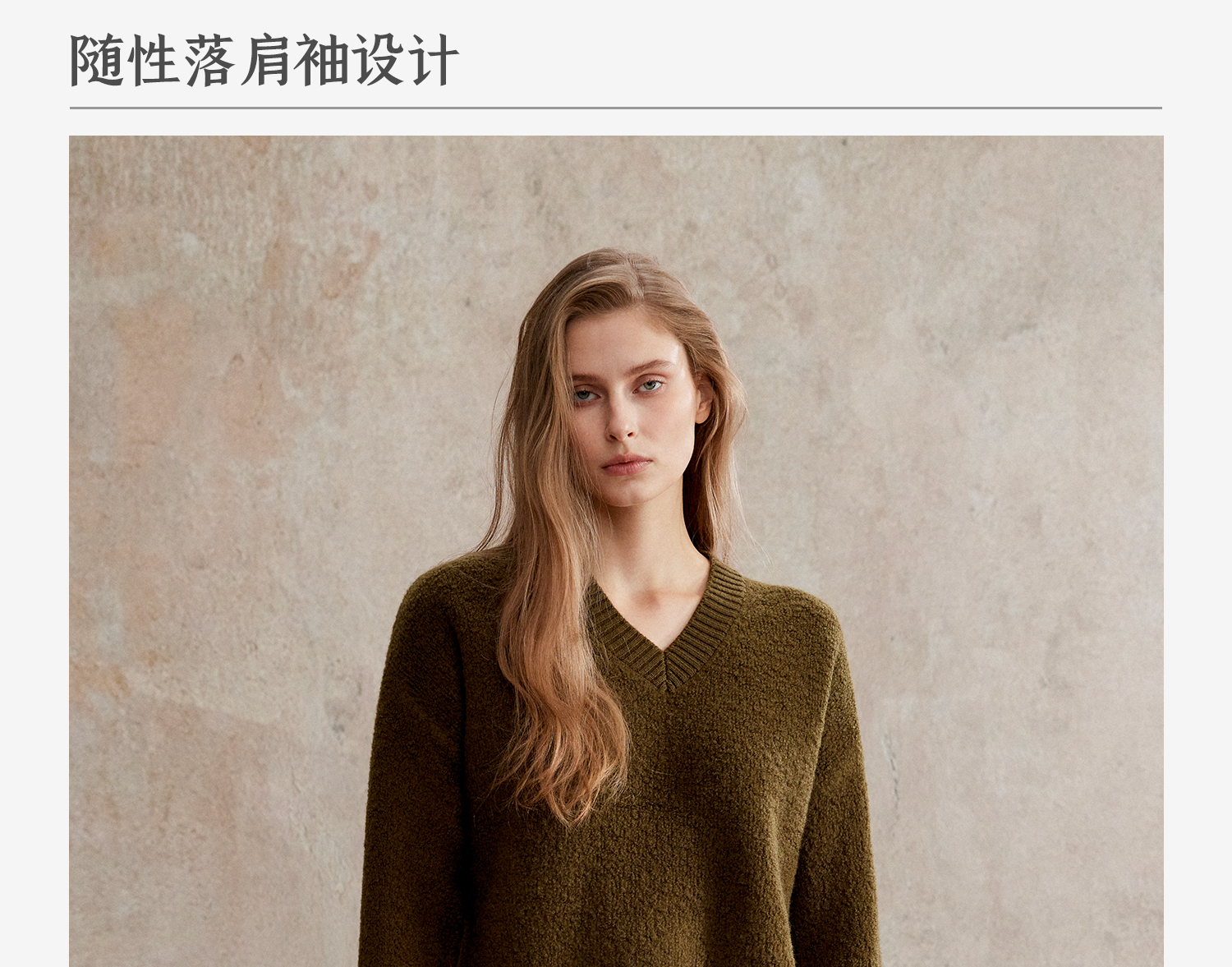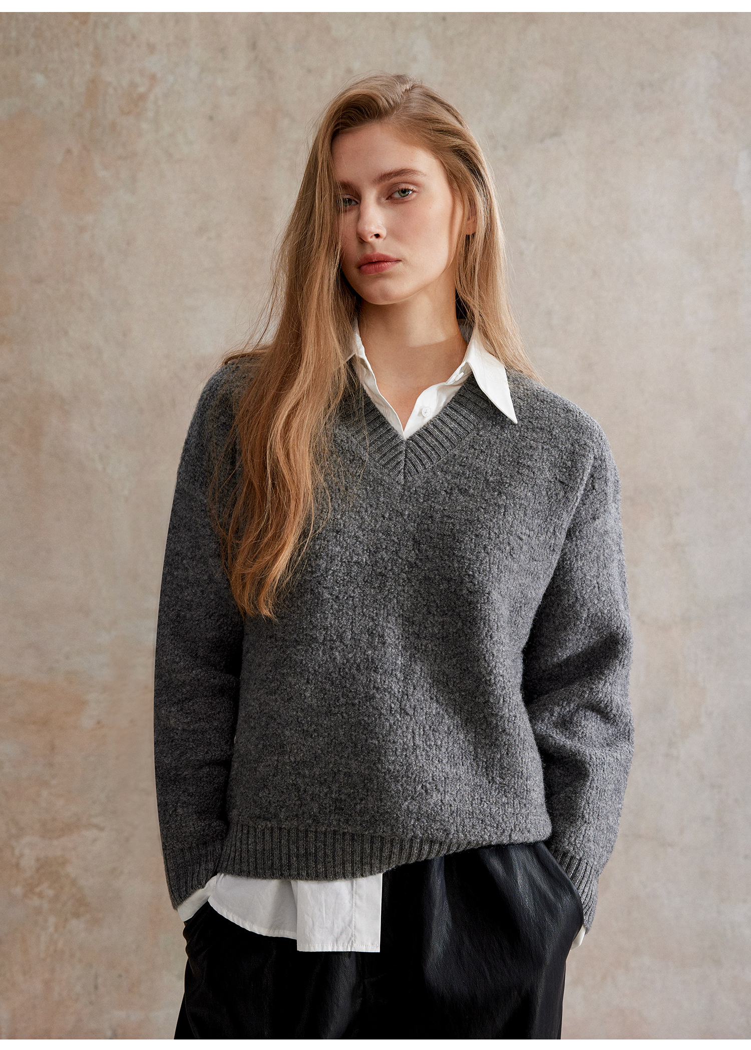 C+IMPRESS西嘉 美丽诺绵羊毛 宽松圈圈毛慵懒感套头毛衣女编织V领MY2504079