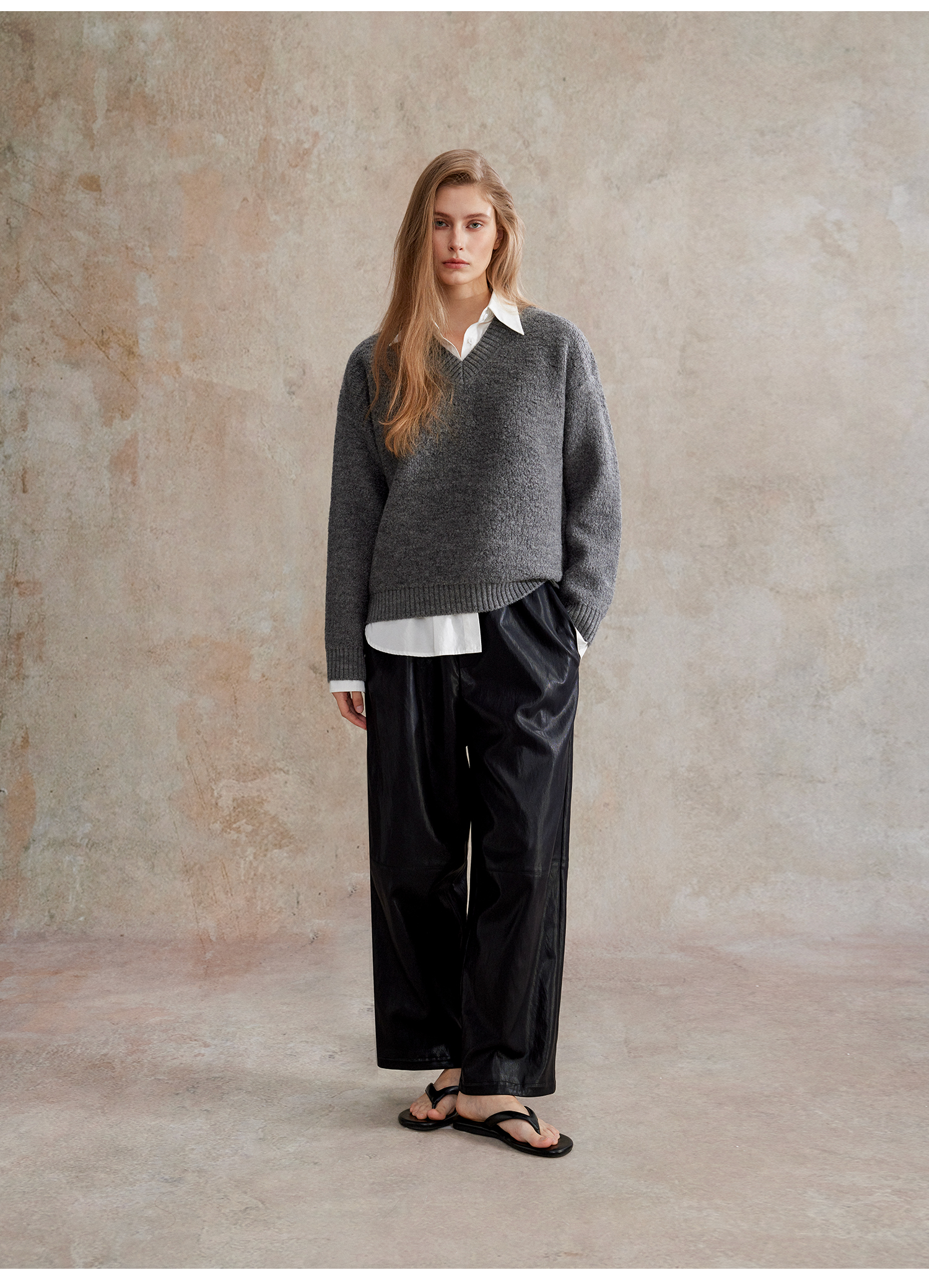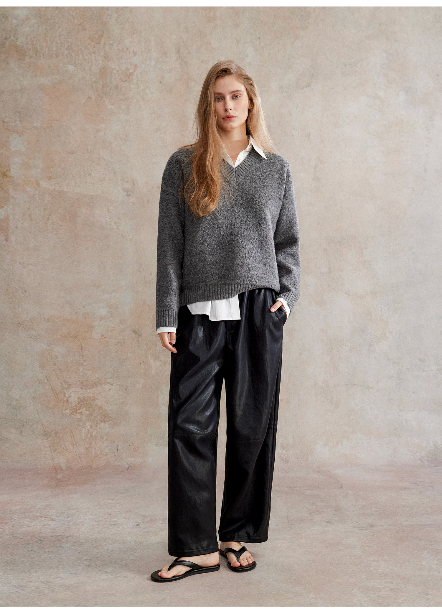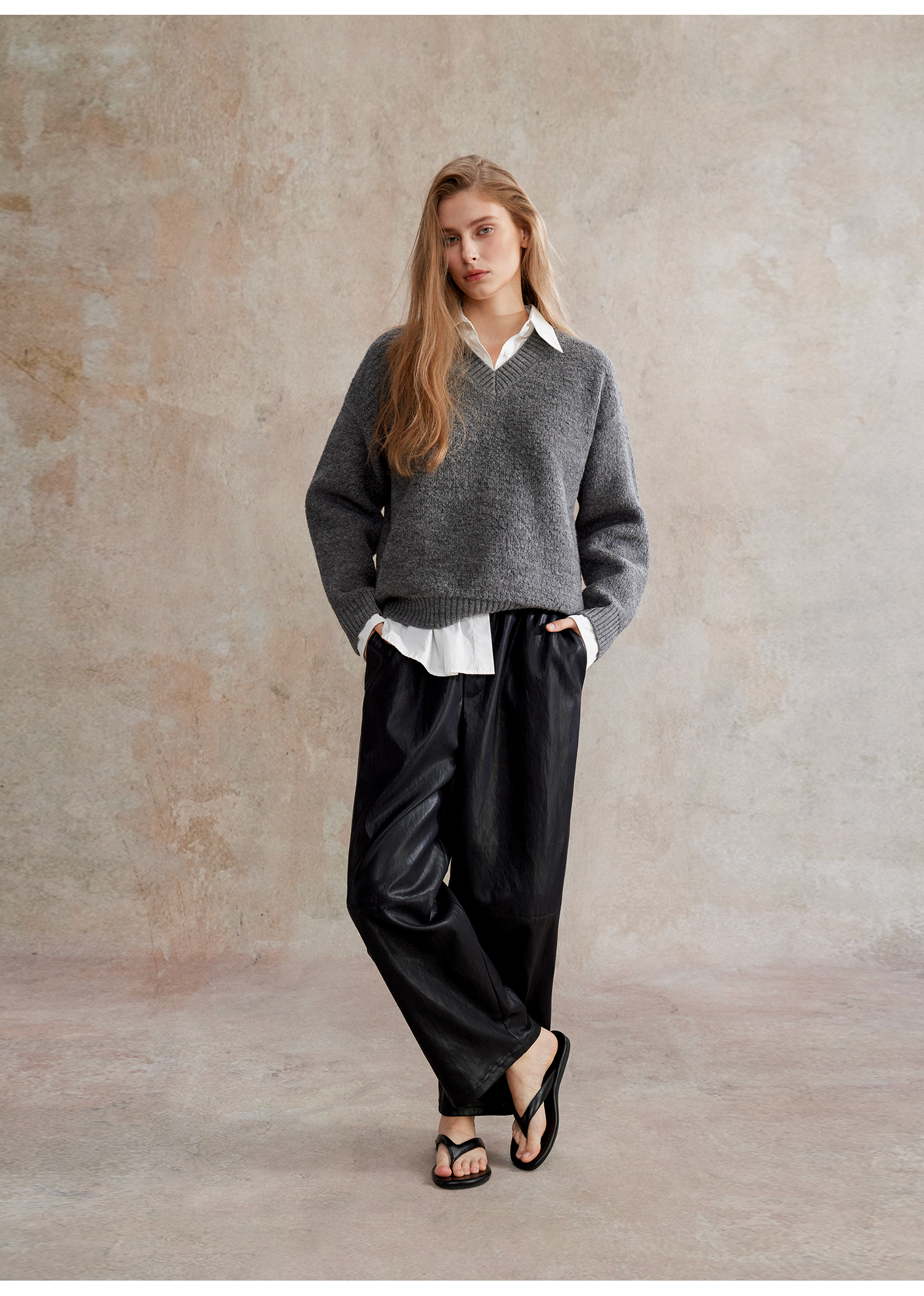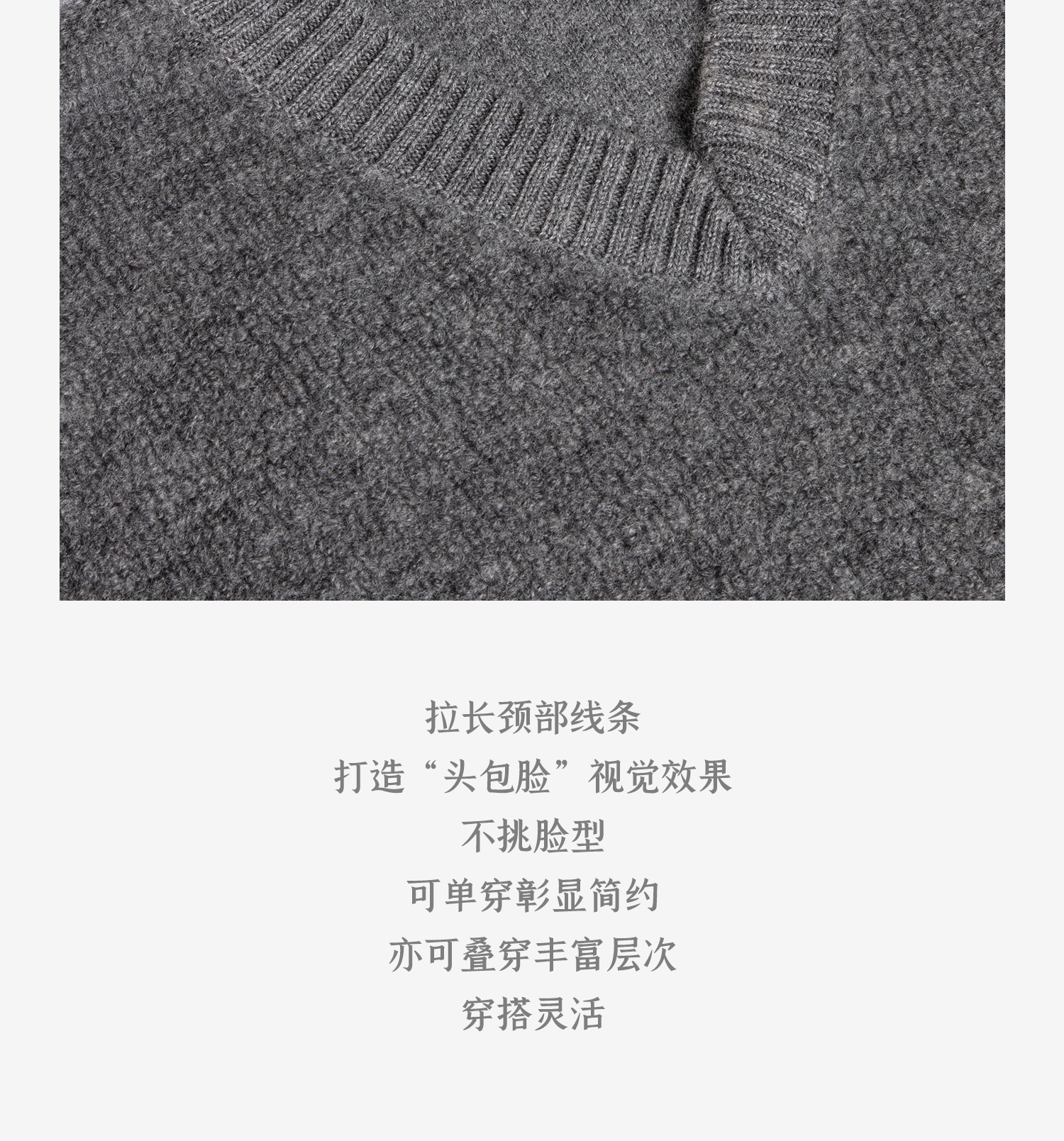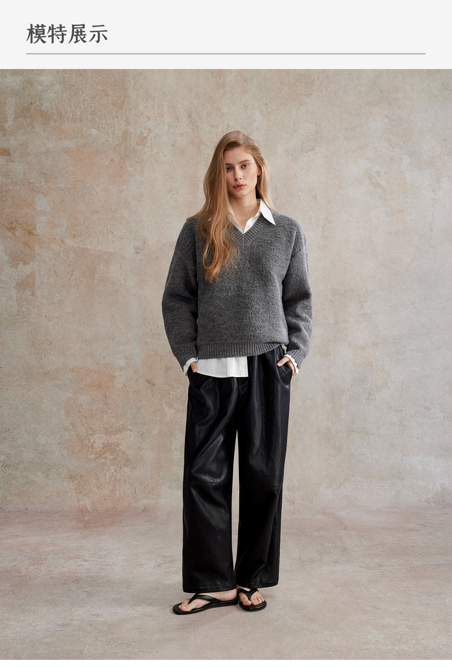 C+IMPRESS西嘉 美丽诺绵羊毛 宽松圈圈毛慵懒感套头毛衣女编织V领MY2504079