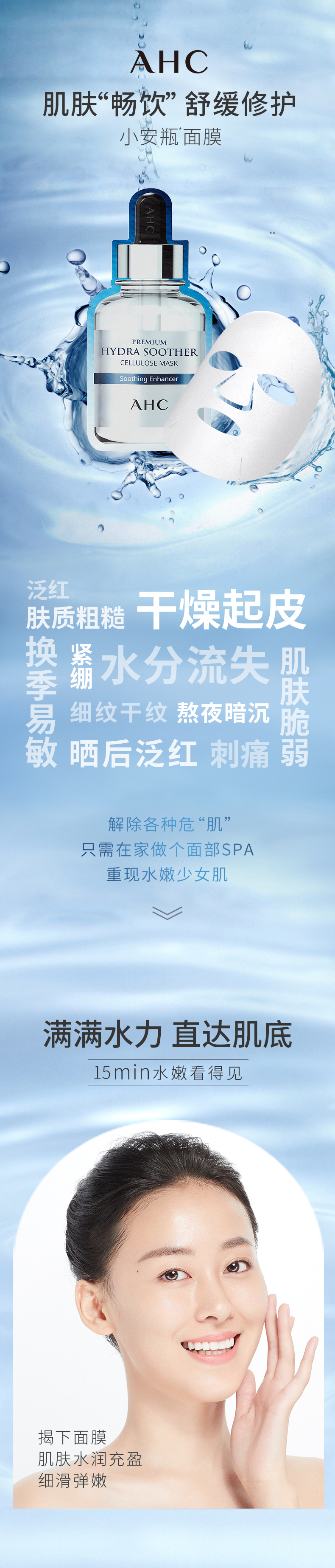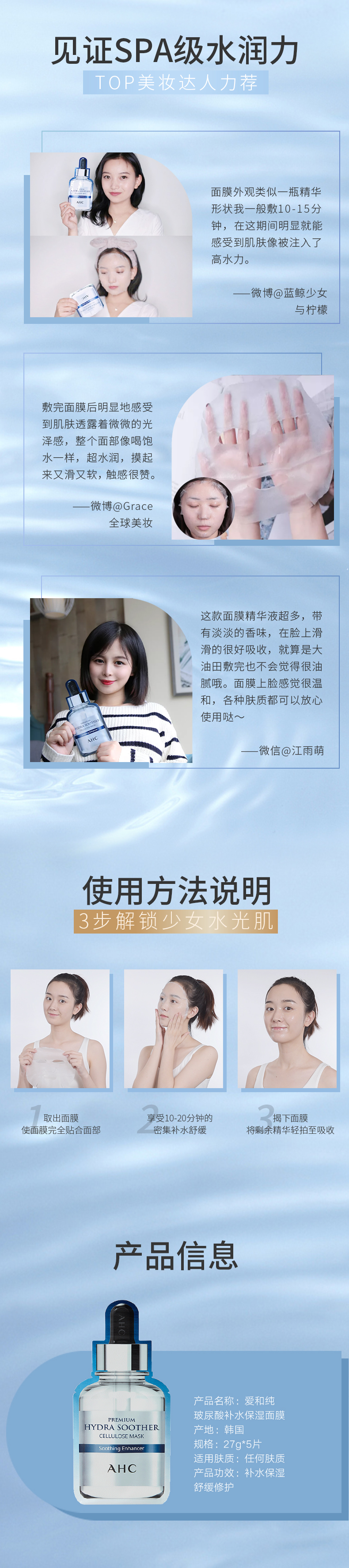 AHC小安瓶面膜B5玻尿酸补水保湿滋润修护27ml 5片
