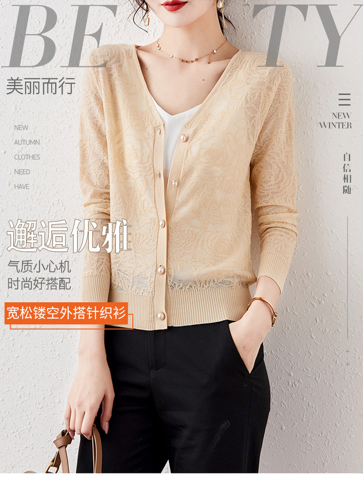 DB-L2039 2021新款韩版宽松镂空外搭毛衣拼接针织衫外套