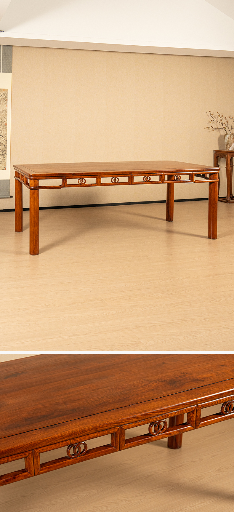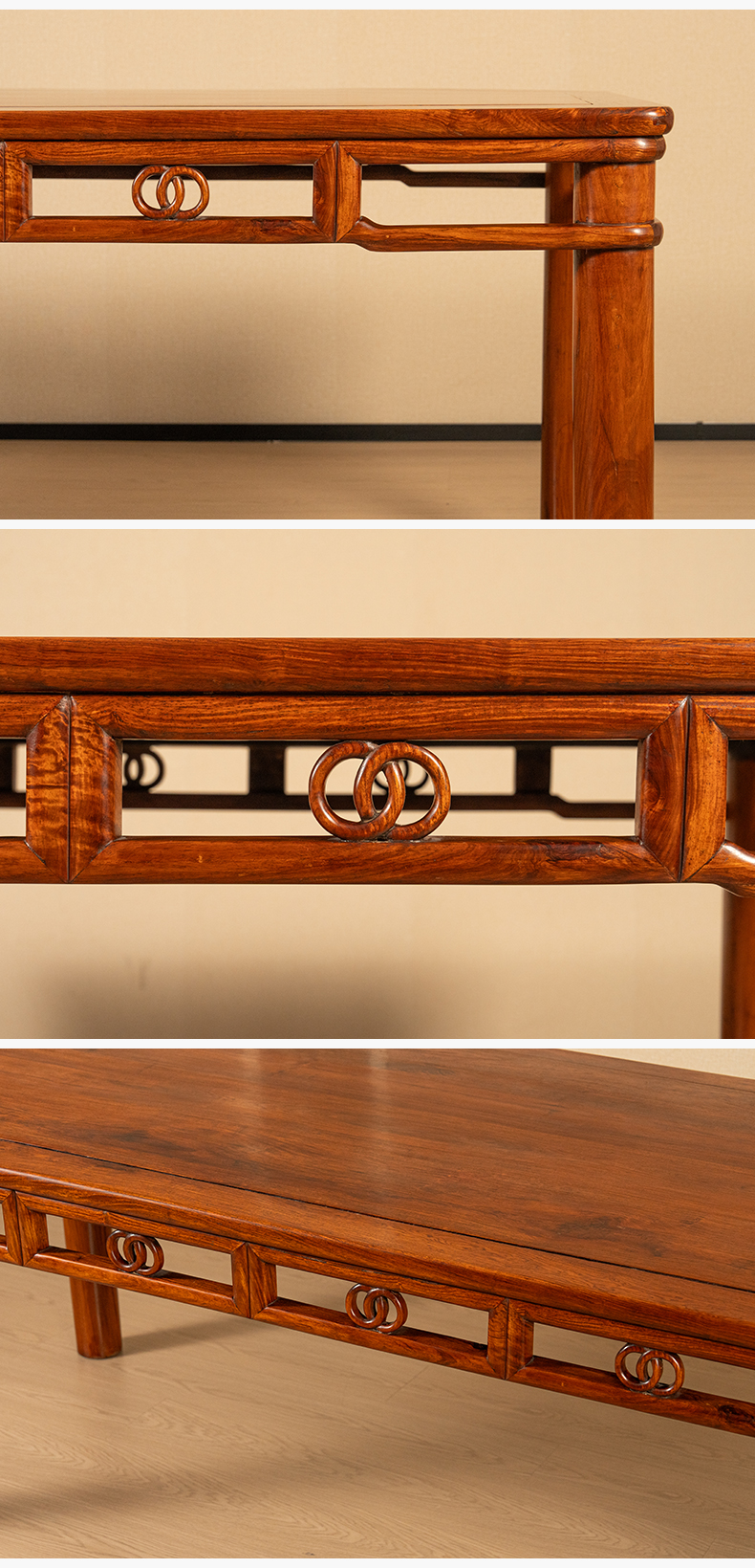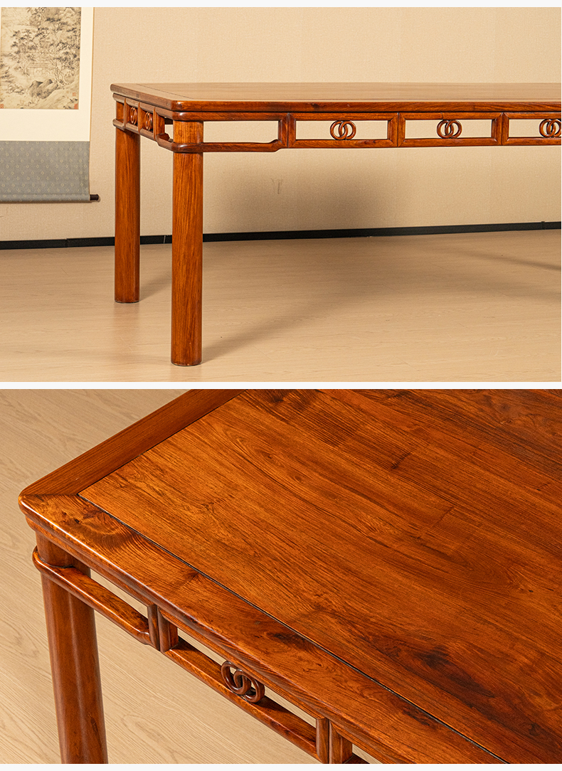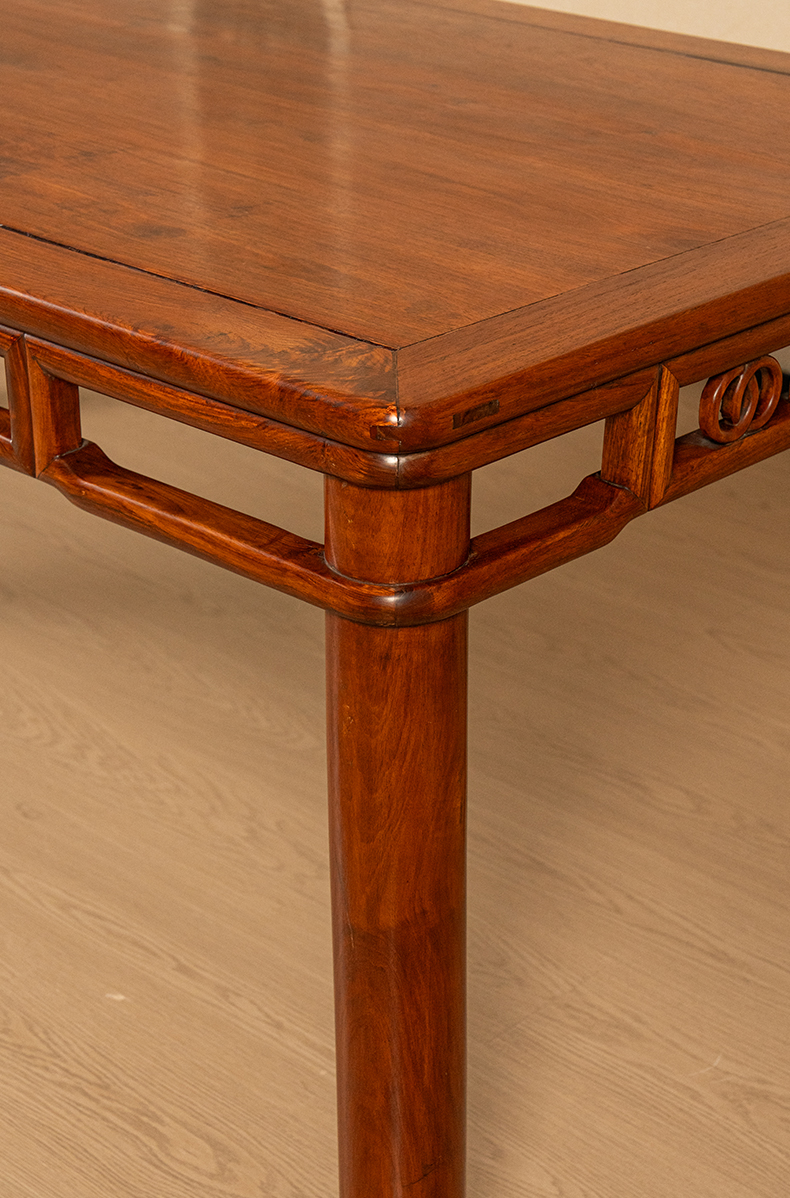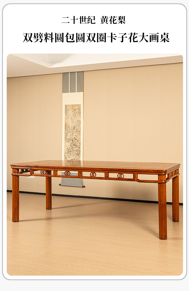 二十世纪 黄花梨双劈料圆包圆双圈卡子花大画桌