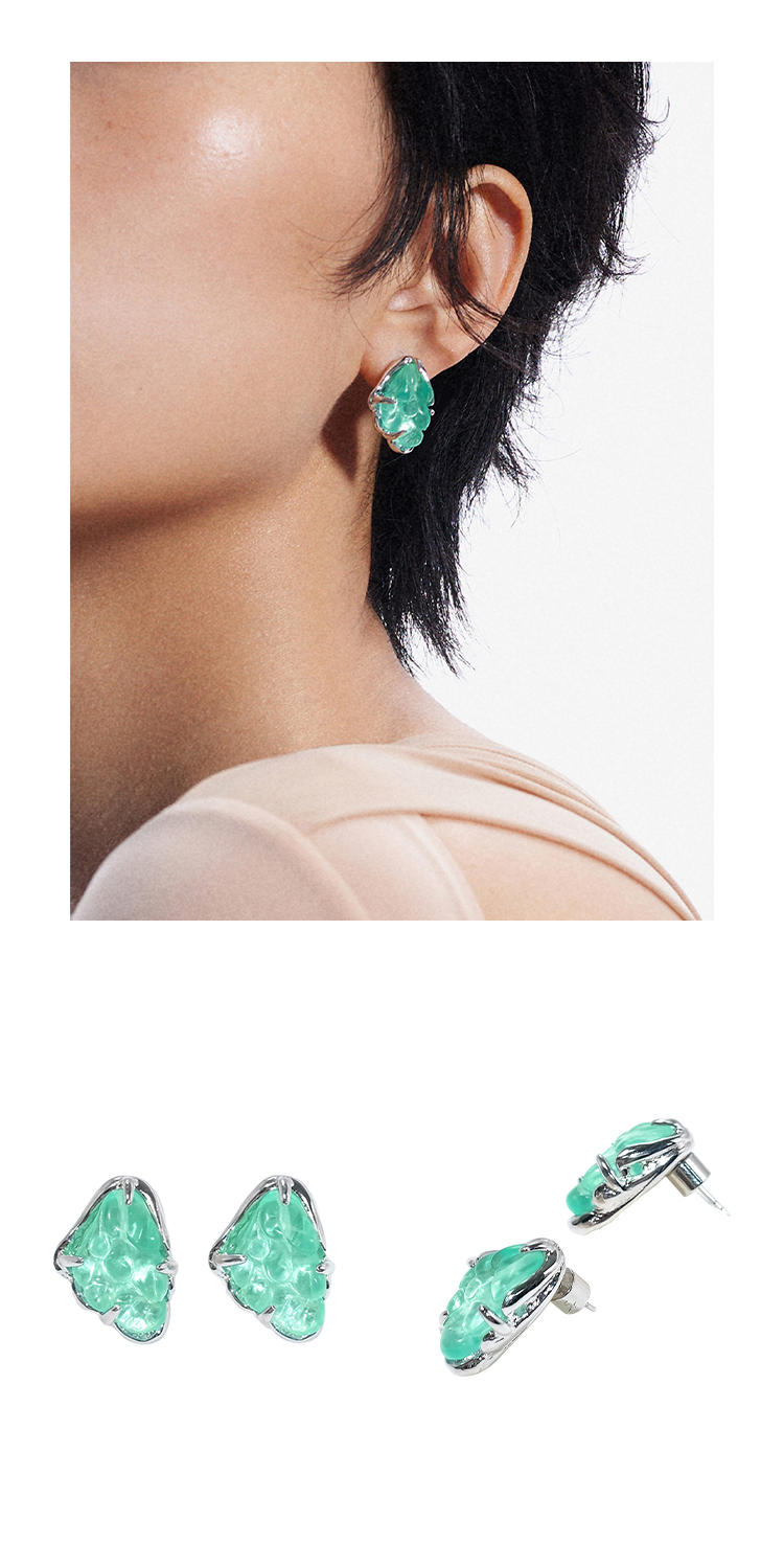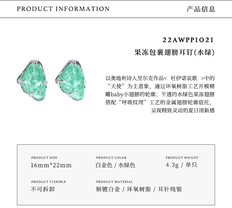 ATELIERSO 22AW果冻系列 果冻包裹翅膀耳钉 水绿色