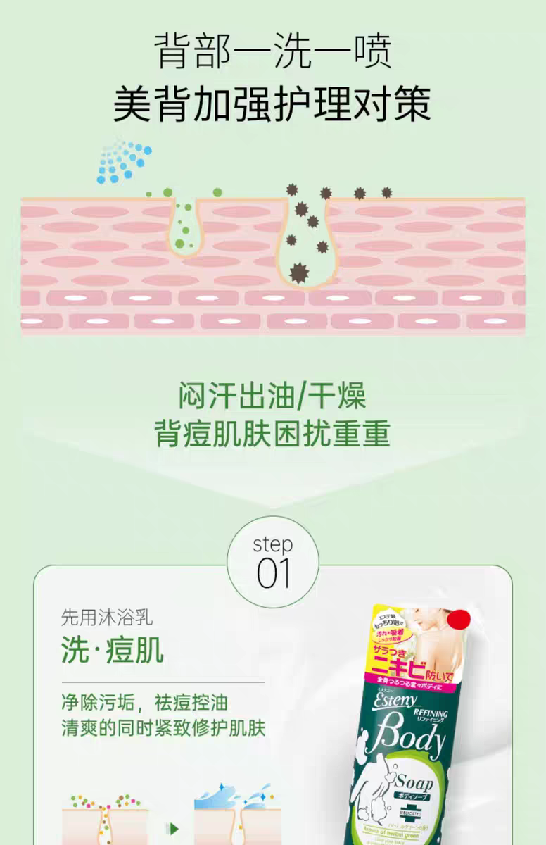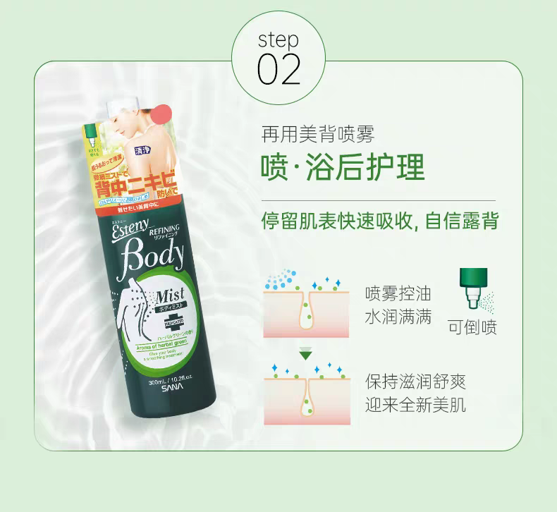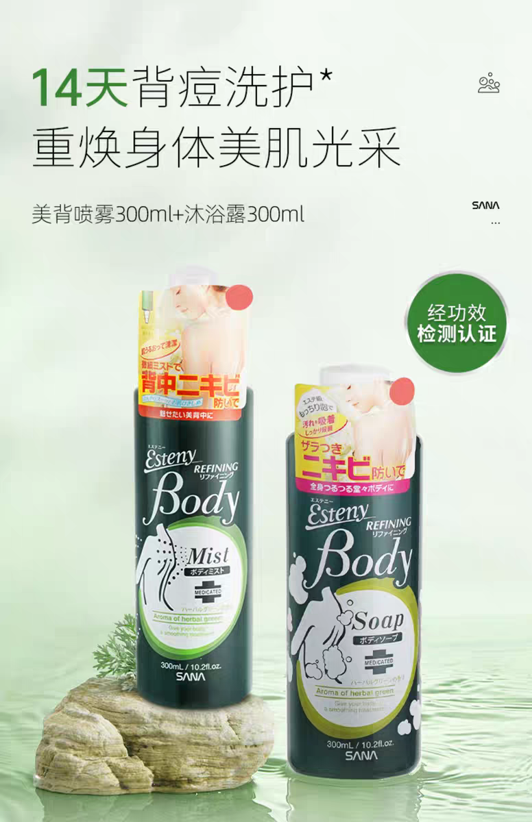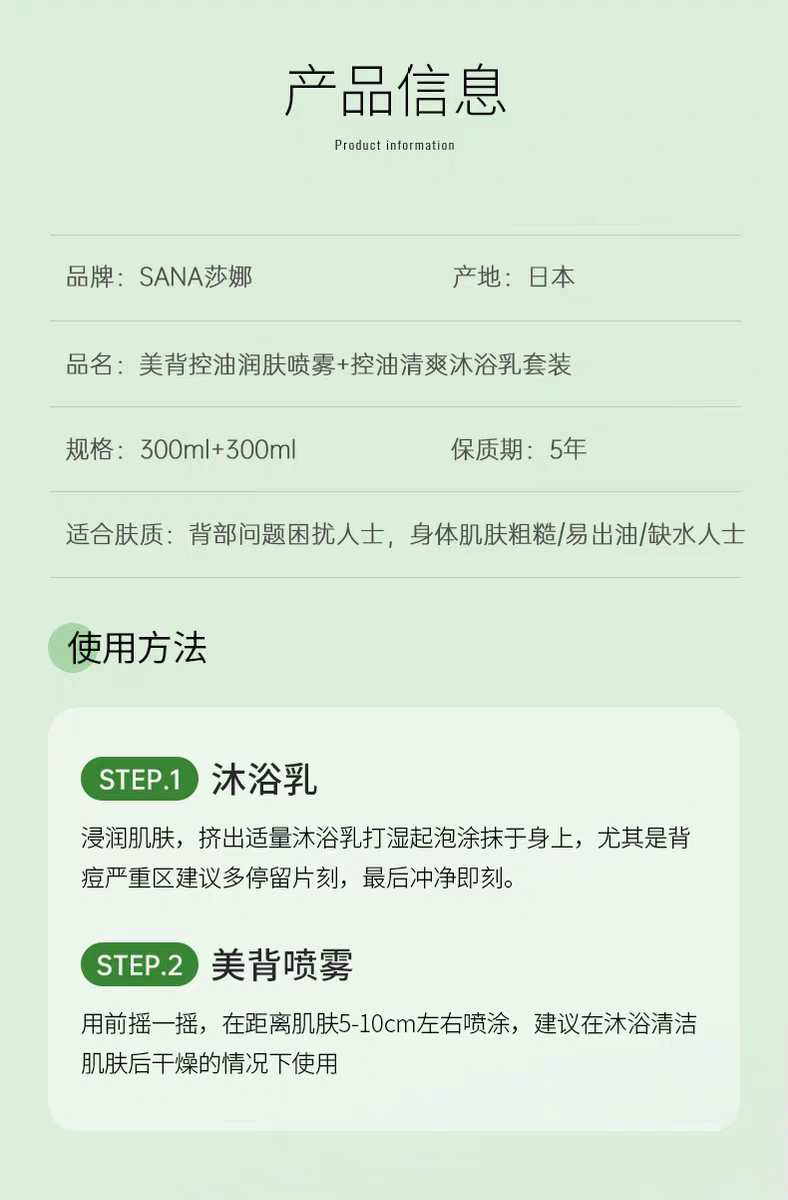 SANA莎娜 背部祛痘美背喷雾沐浴露套装控油保湿胸前后背清除粉刺