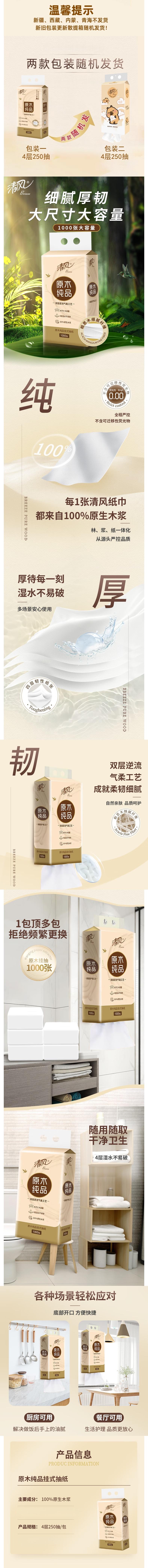 清风 纯品亲肤悬挂式抽纸4层250抽*4提(款式随机) B-CP250C4R