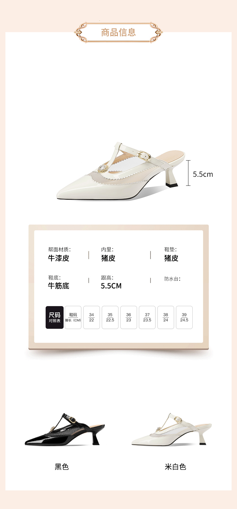 【货 号】 H3652【鞋面材质】牛漆皮【垫脚-里皮】猪皮垫+猪皮里【鞋底材料】耐磨牛筋底【跟高】5.5cm(烤漆跟)【颜色】黑色、米白色【尺码】33-43(大小定制不退换)