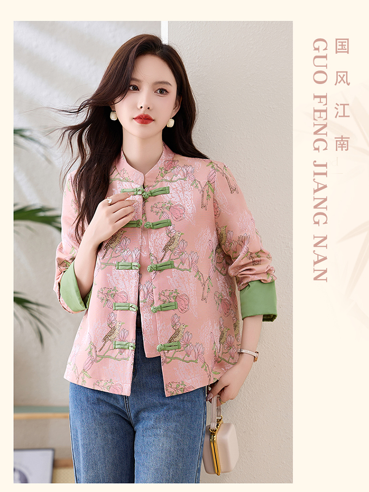 新国风外套复古立领,落肩长袖新中式上衣HR-YIZX86119