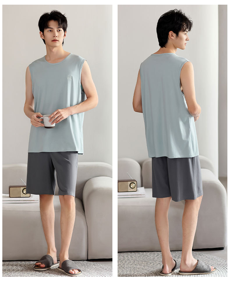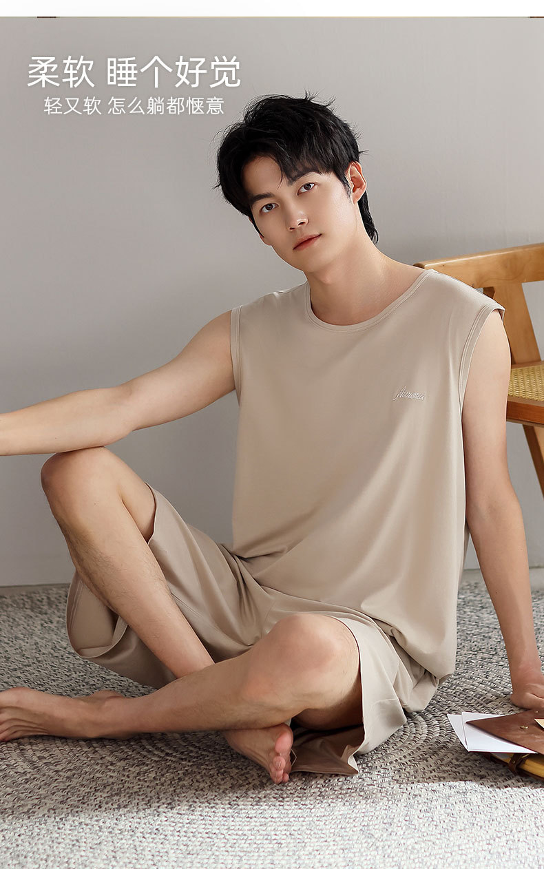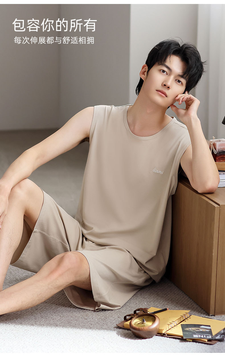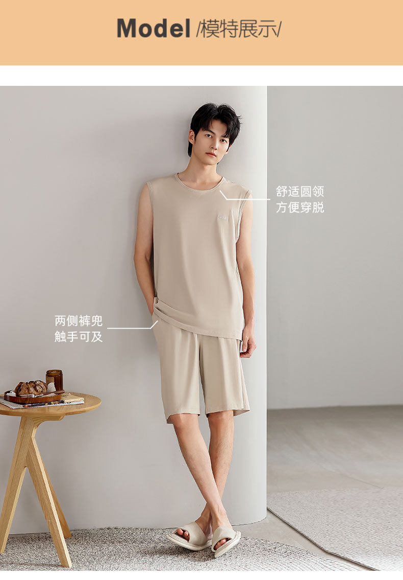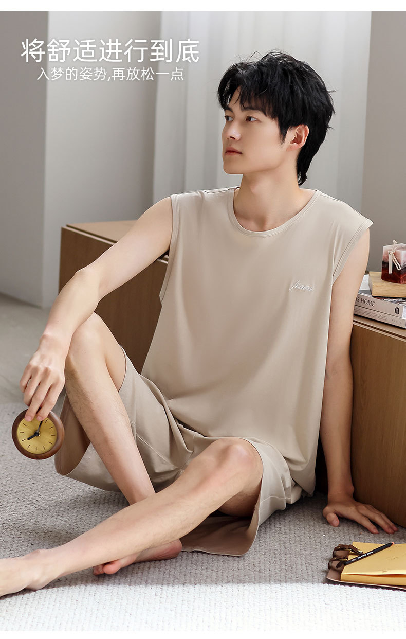 红览睡衣男士夏季莫代尔背心无袖短裤薄款大码运动休闲夏款家居服外穿AL344198