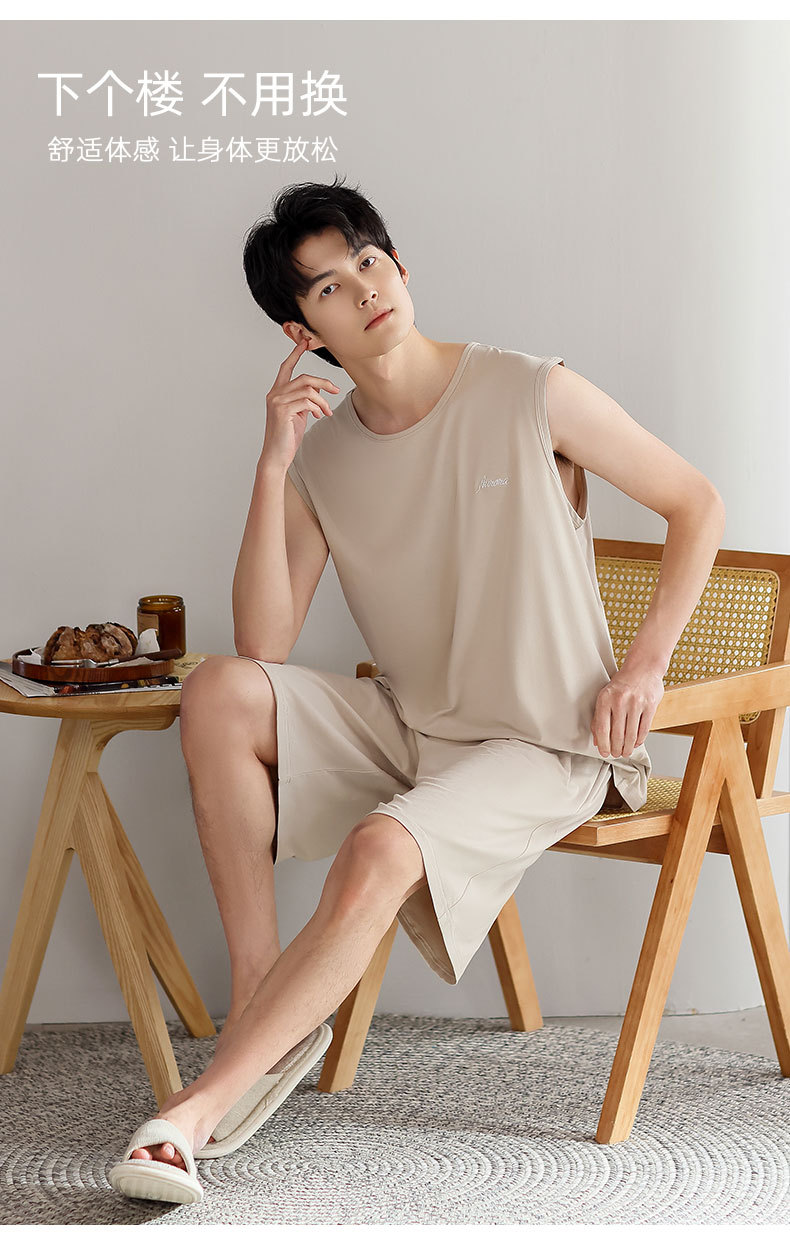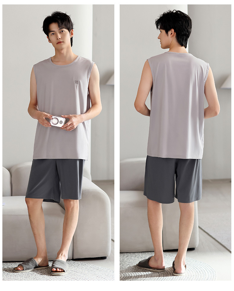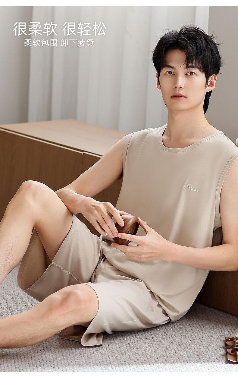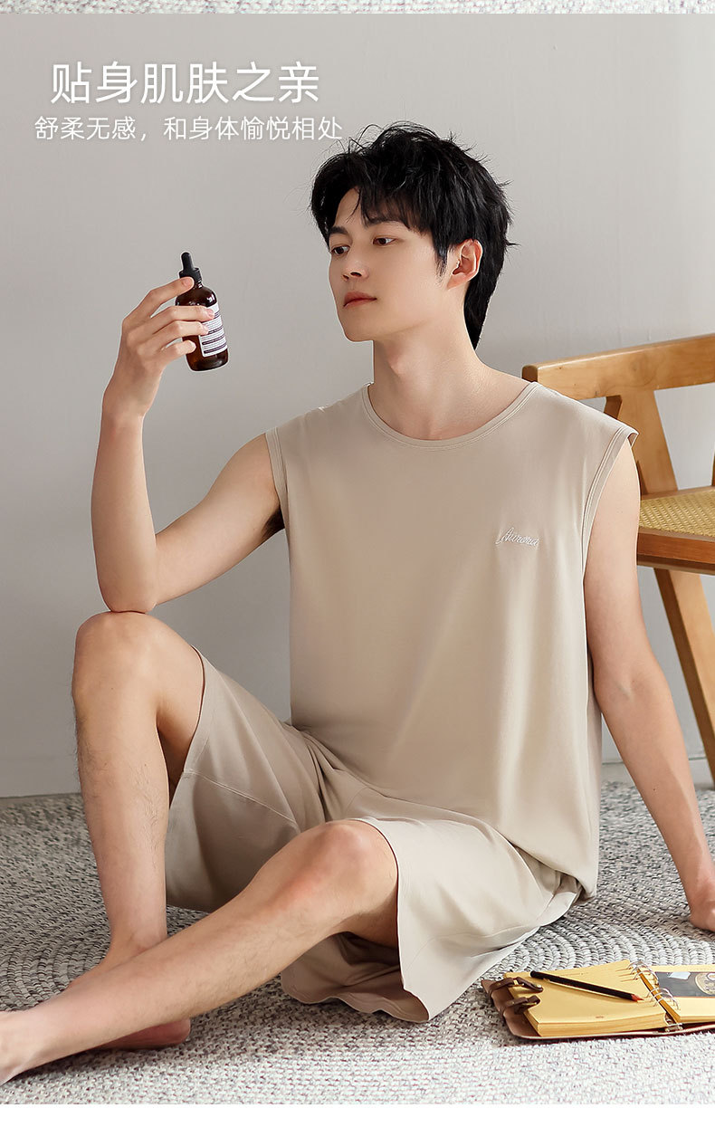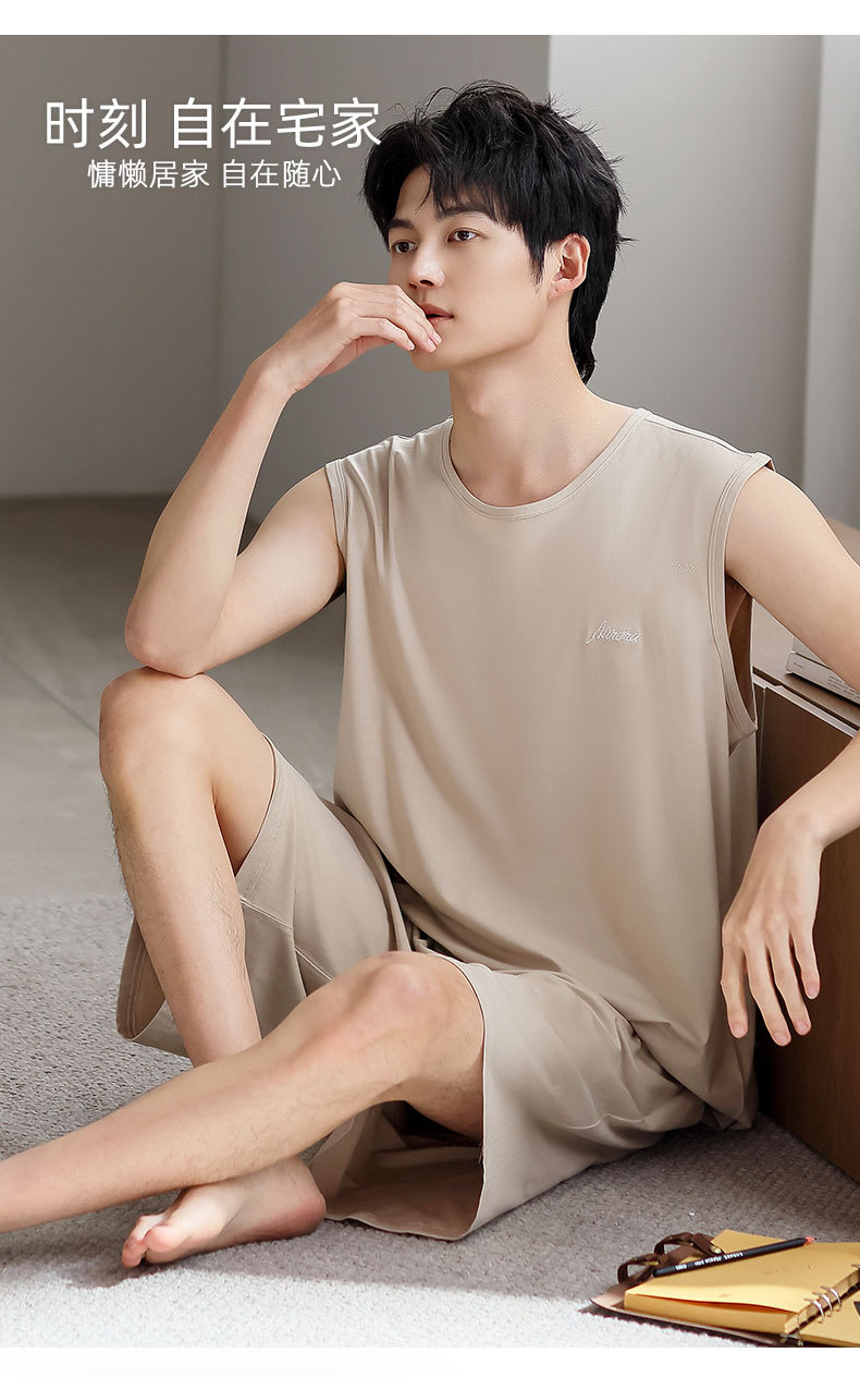 红览睡衣男士夏季莫代尔背心无袖短裤薄款大码运动休闲夏款家居服外穿AL344198