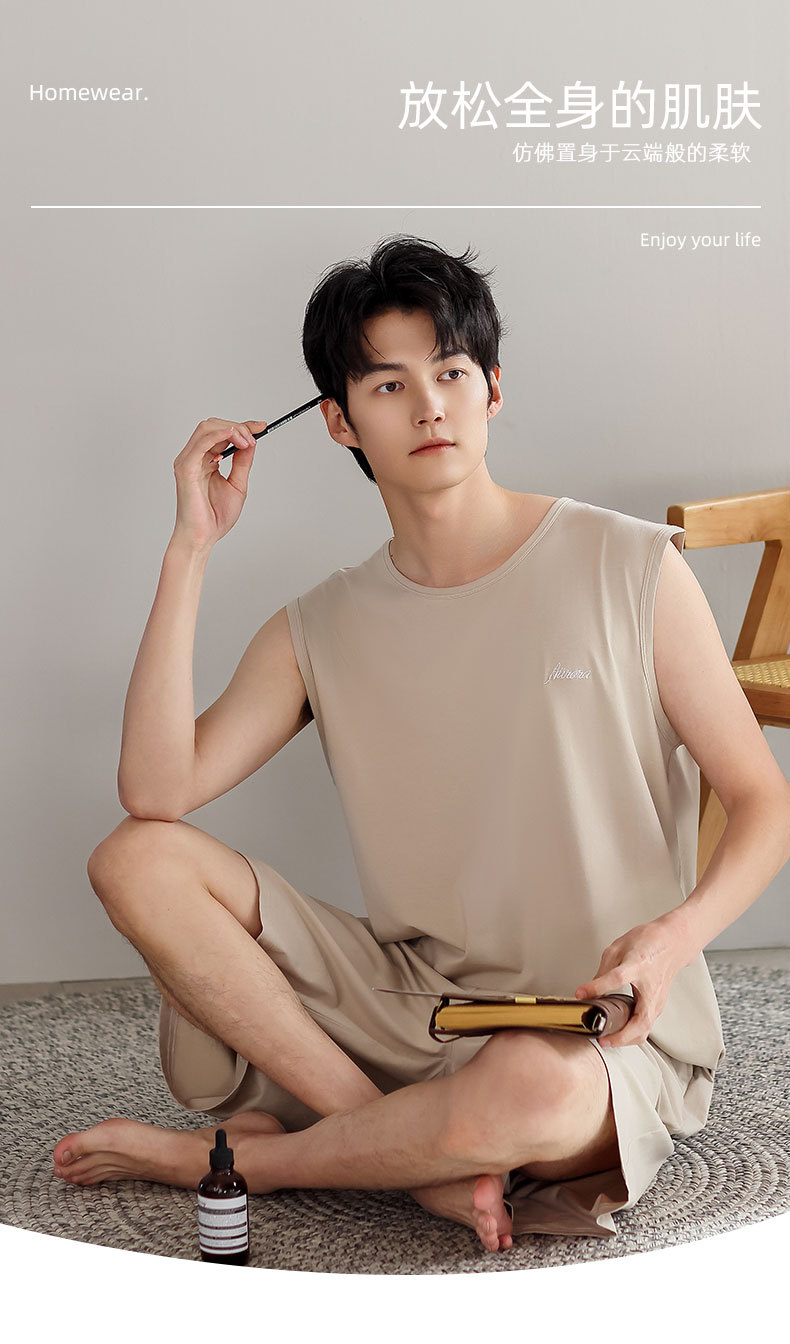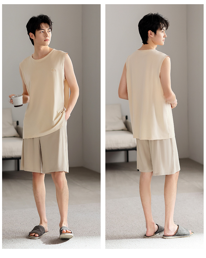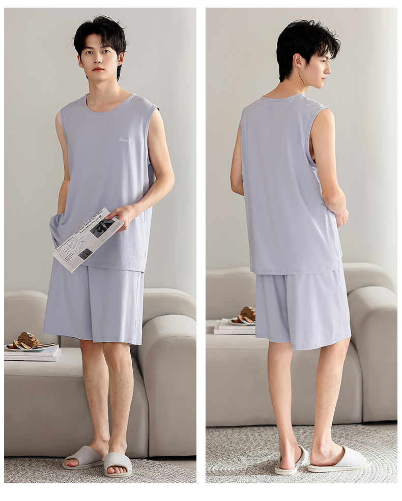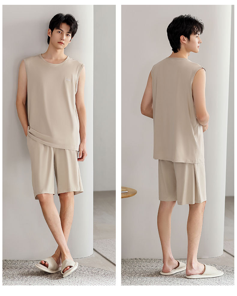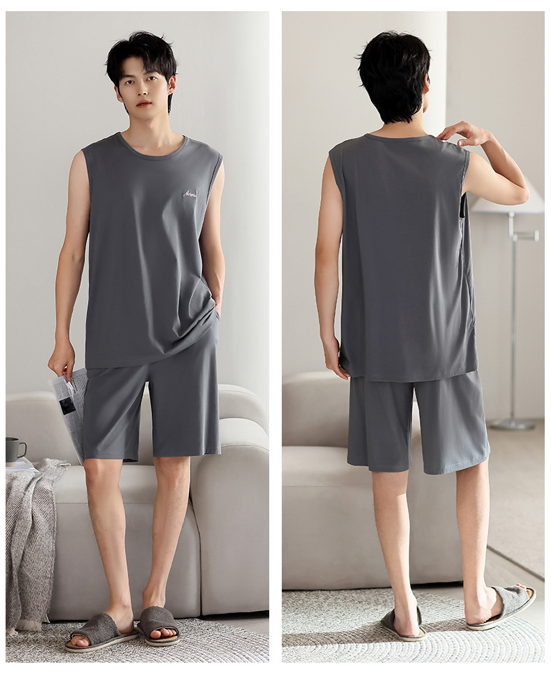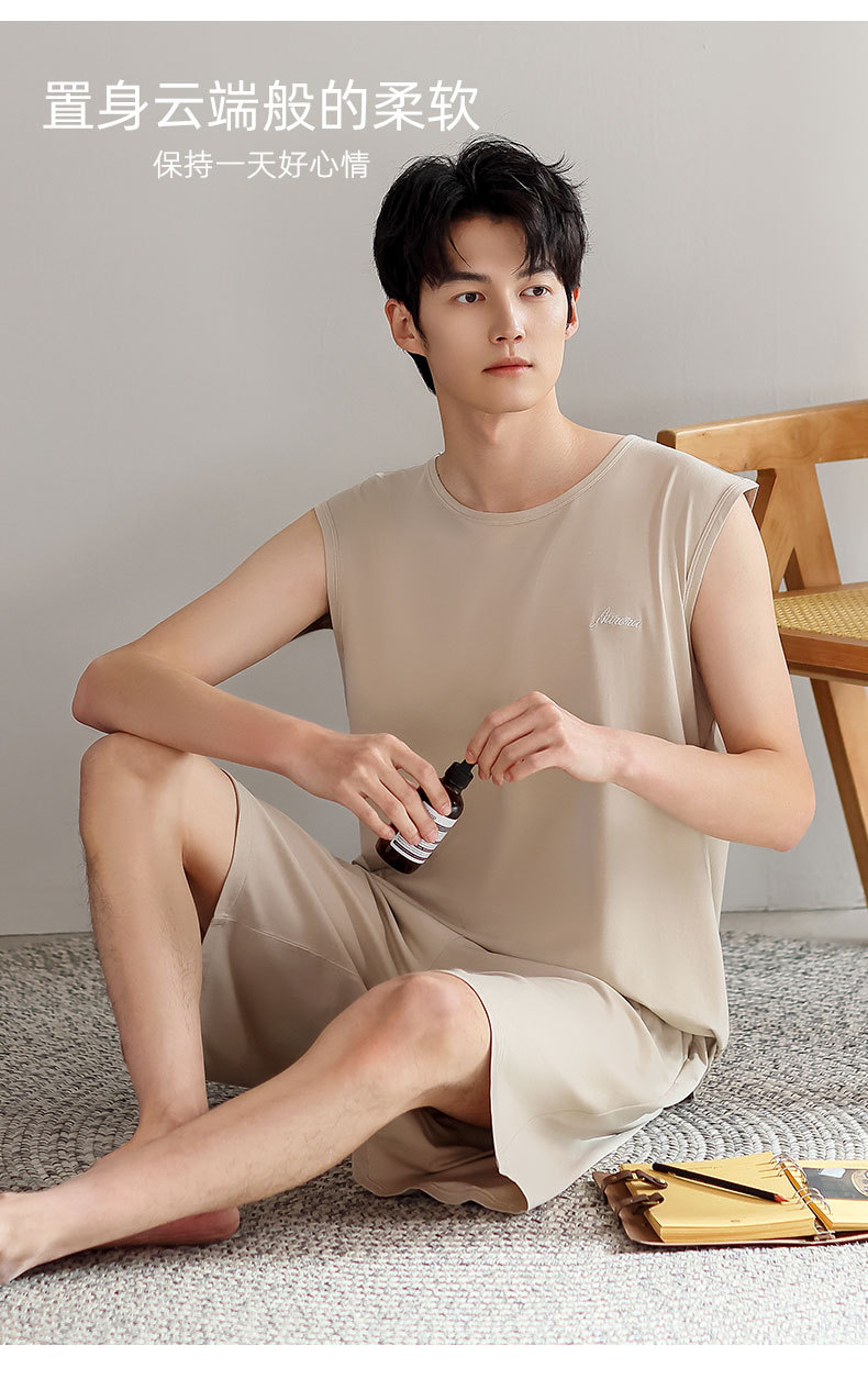 红览睡衣男士夏季莫代尔背心无袖短裤薄款大码运动休闲夏款家居服外穿AL344198