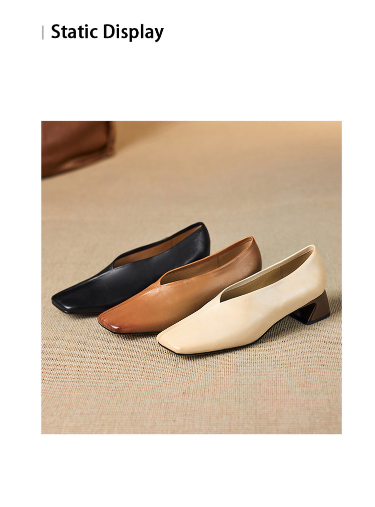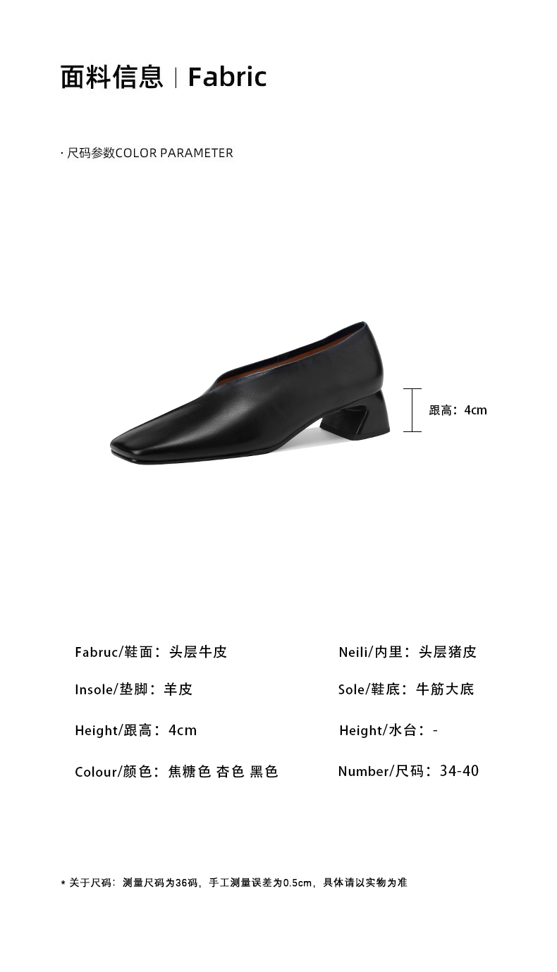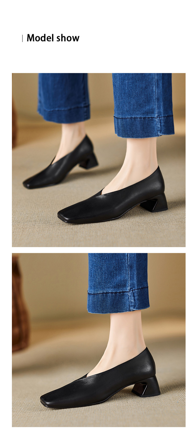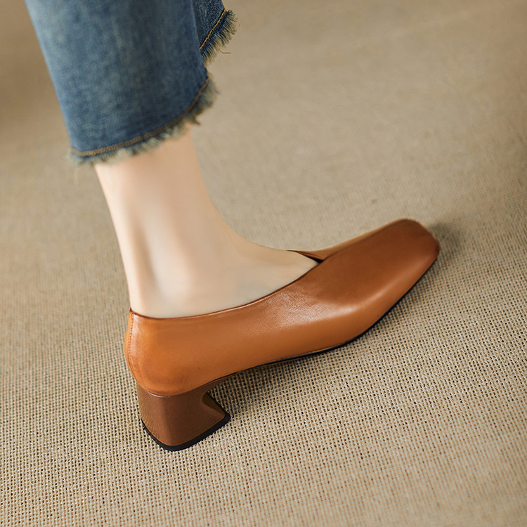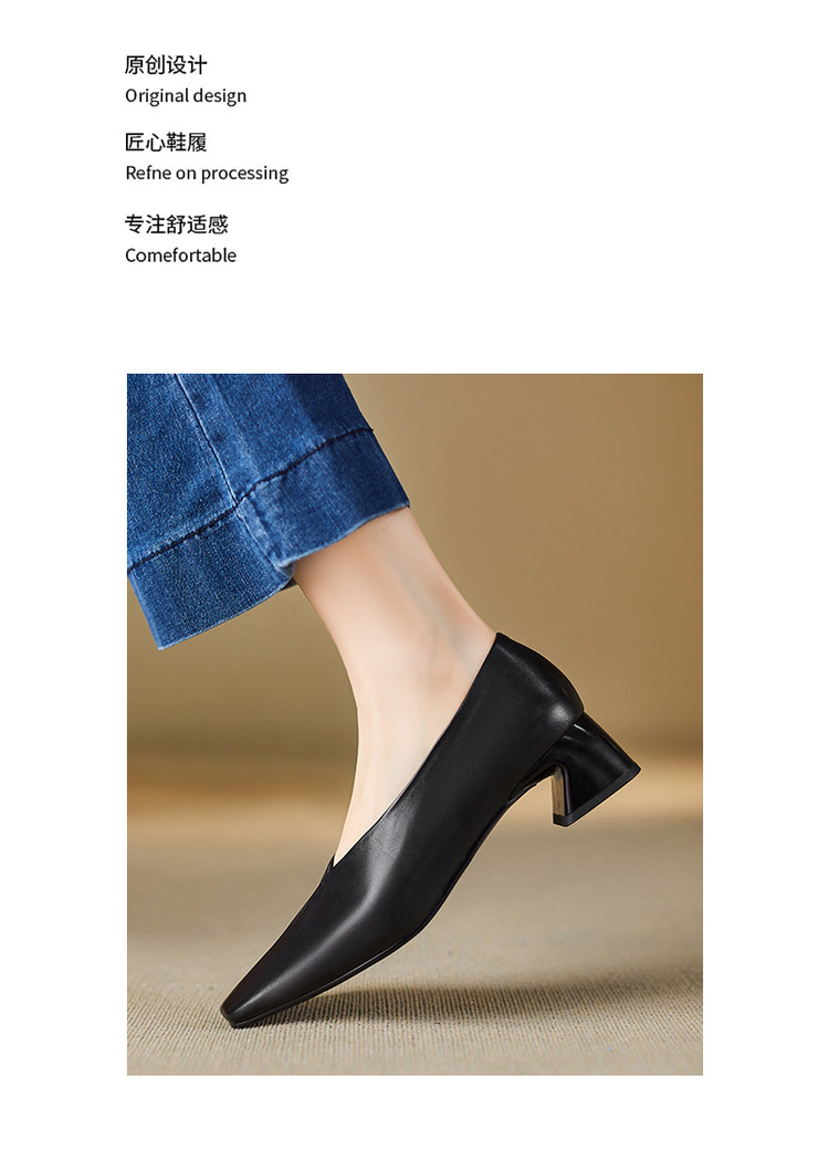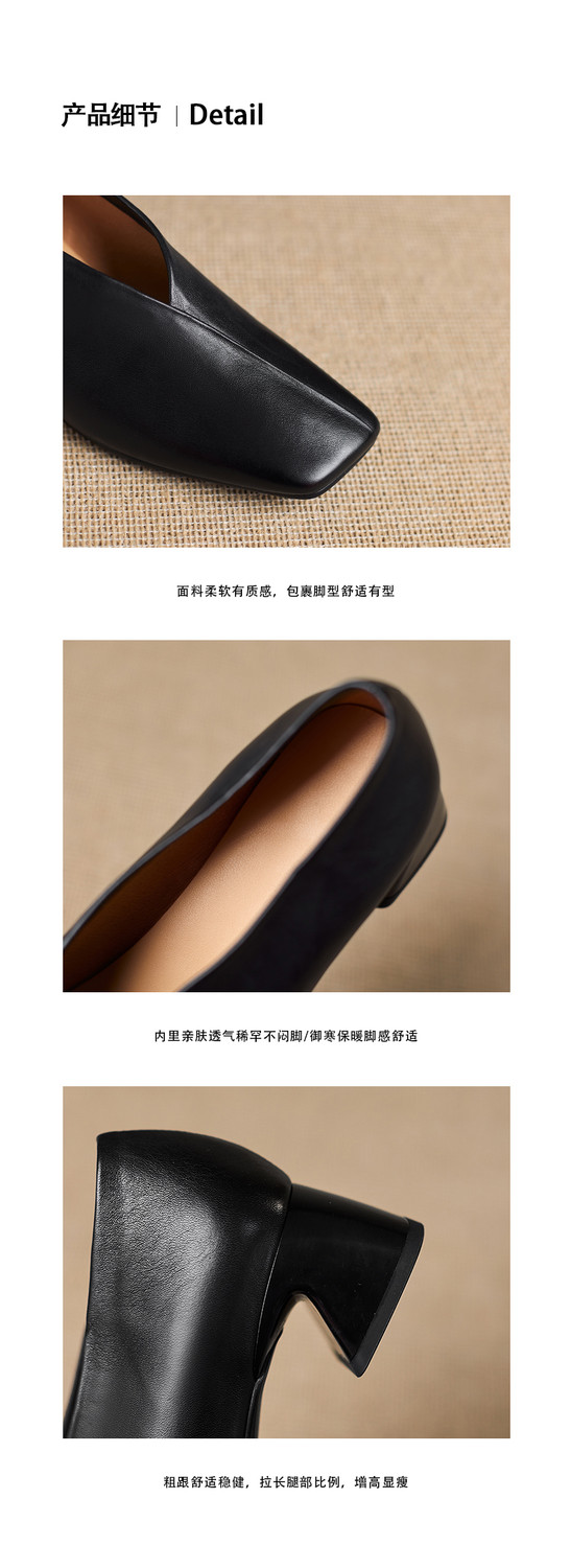 【预售5天】简约经典真皮柔软超舒适头层牛皮方头中跟一脚蹬单鞋MBJR&6837