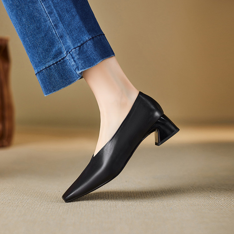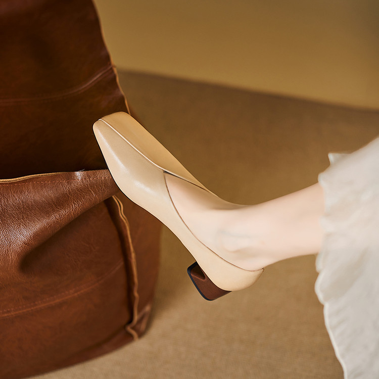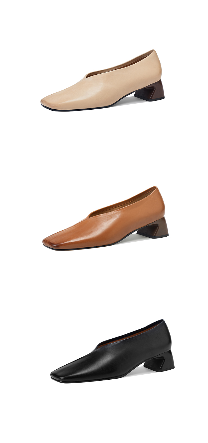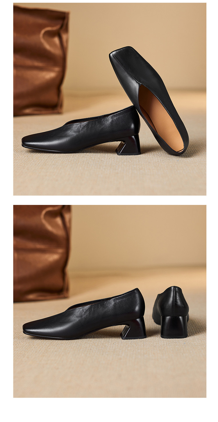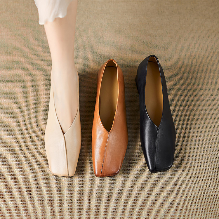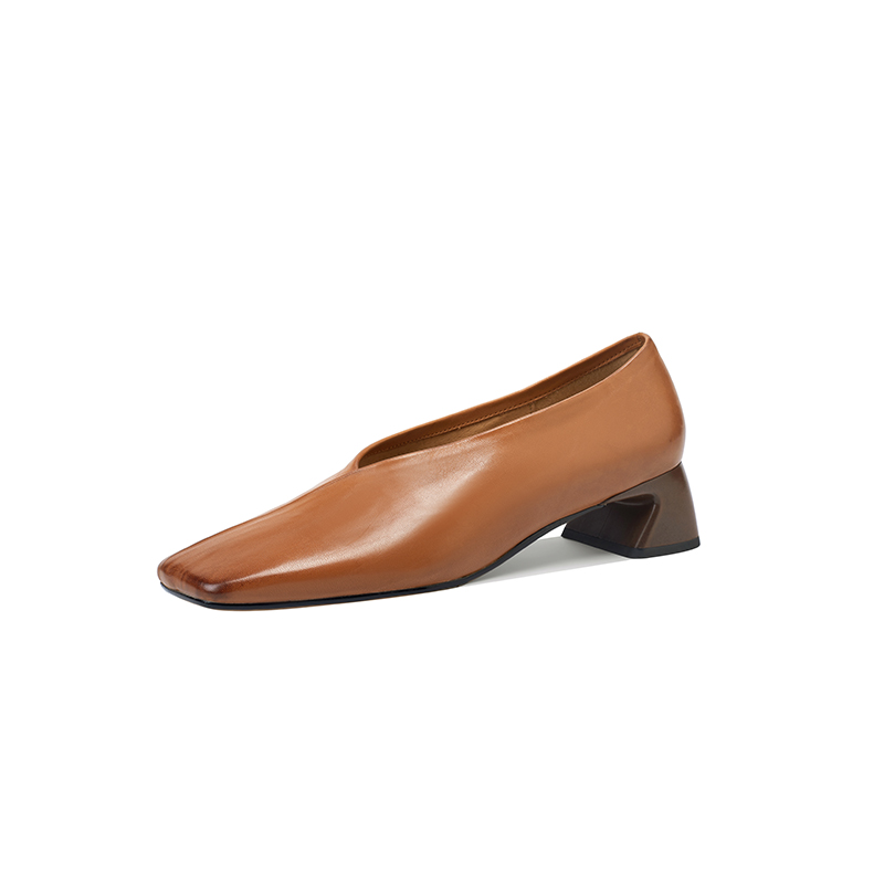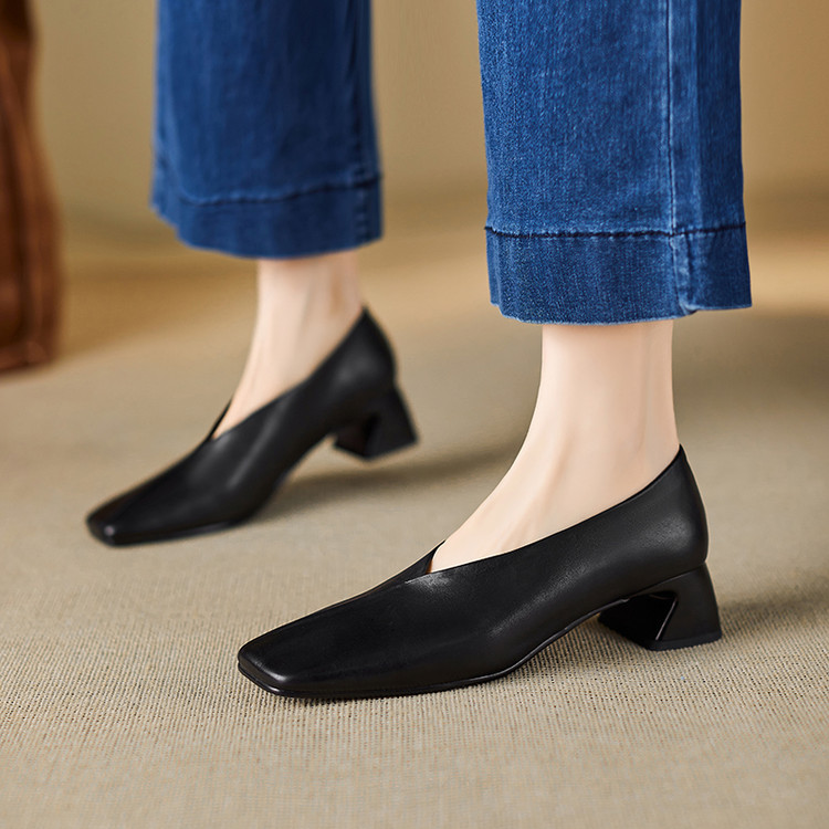 【预售5天】简约经典真皮柔软超舒适头层牛皮方头中跟一脚蹬单鞋MBJR&6837