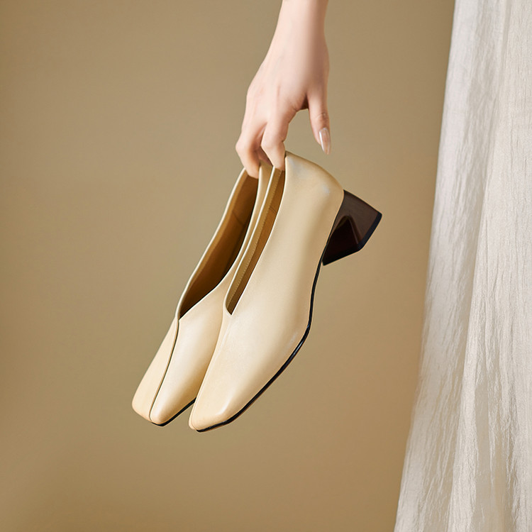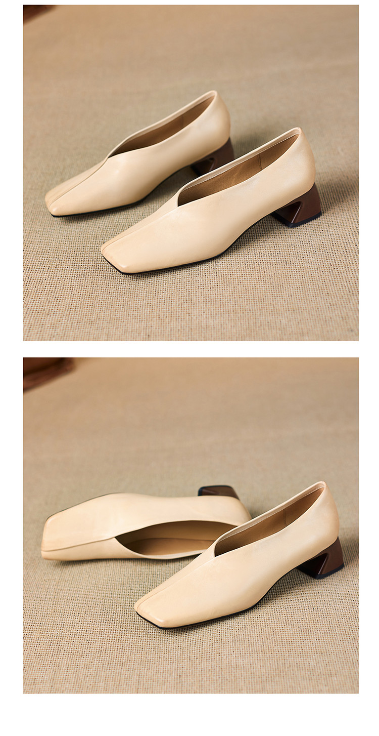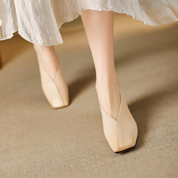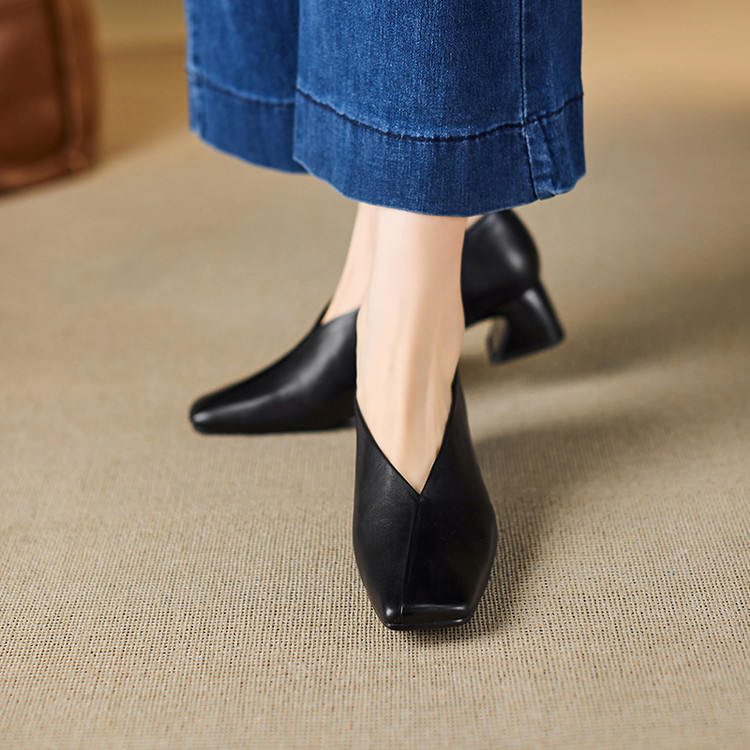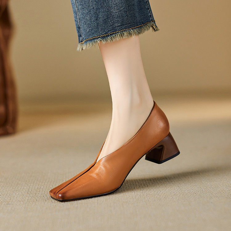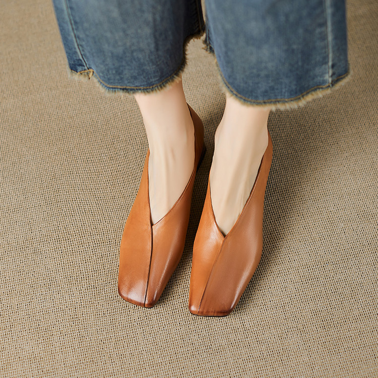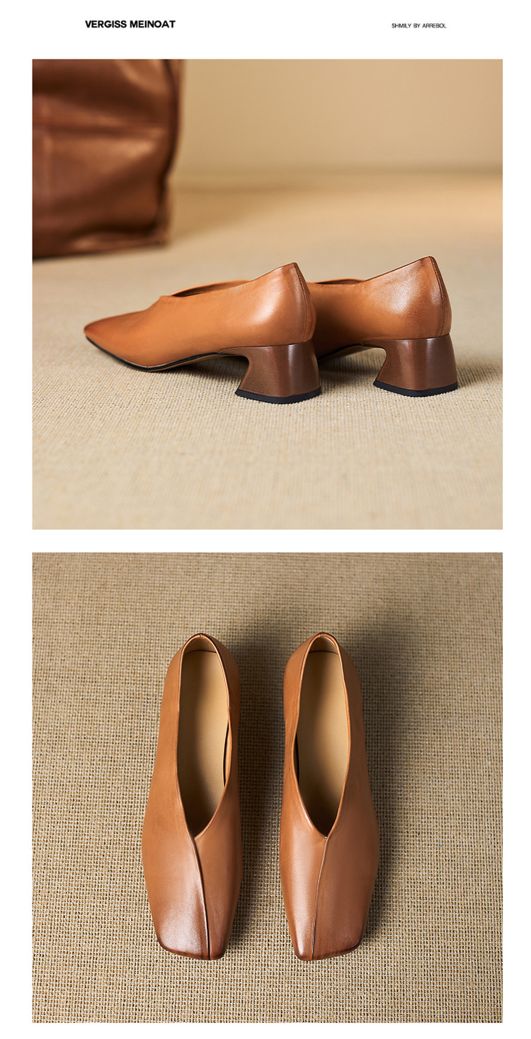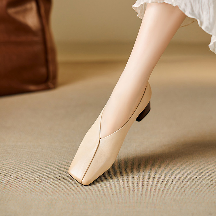【预售5天】简约经典真皮柔软超舒适头层牛皮方头中跟一脚蹬单鞋MBJR&6837