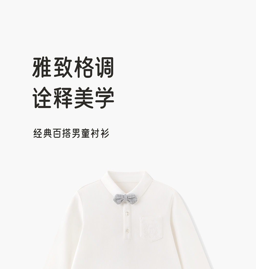 【高定系列】英氏儿童长袖T恤秋装新款棉羊毛翻领Polo衫男童上衣
