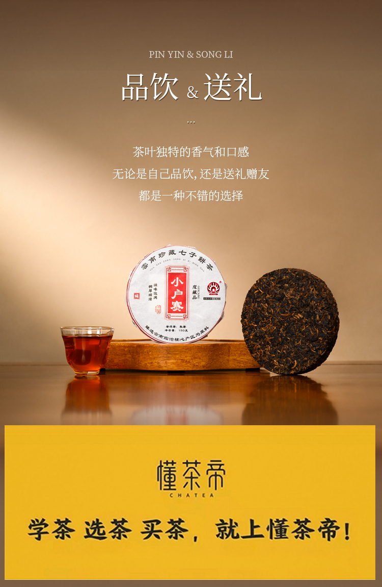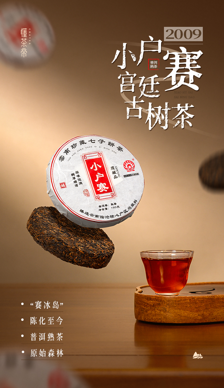 懂茶帝普洱熟茶2009年小户赛古树茶赛冰岛茶普洱茶熟茶150g茶饼
