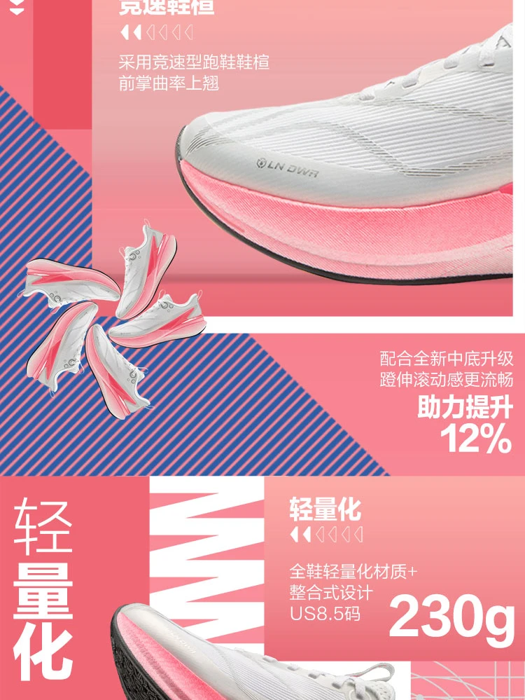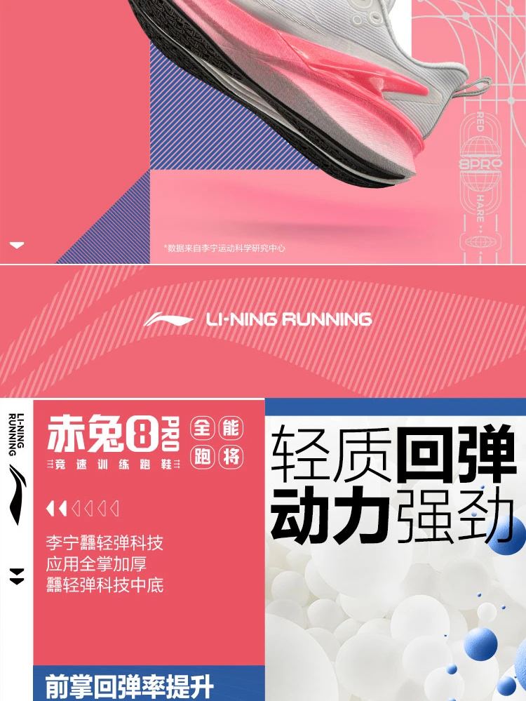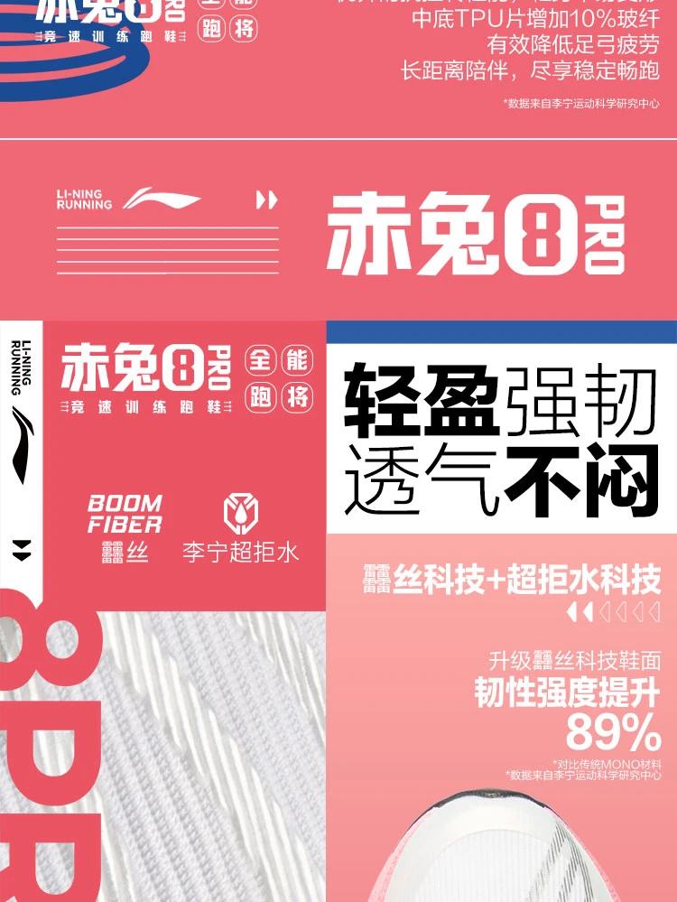 李宁赤兔8 PRO女子反光䨻丝轻量高回弹竞速训练跑鞋ARPV016