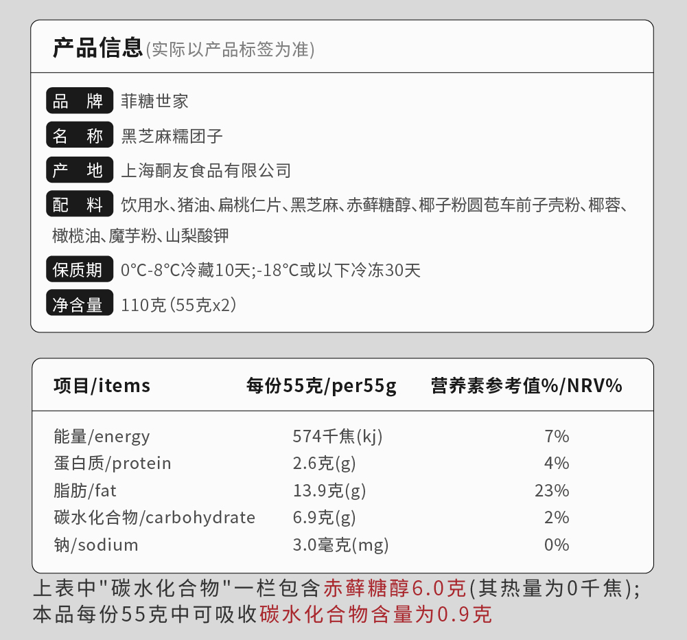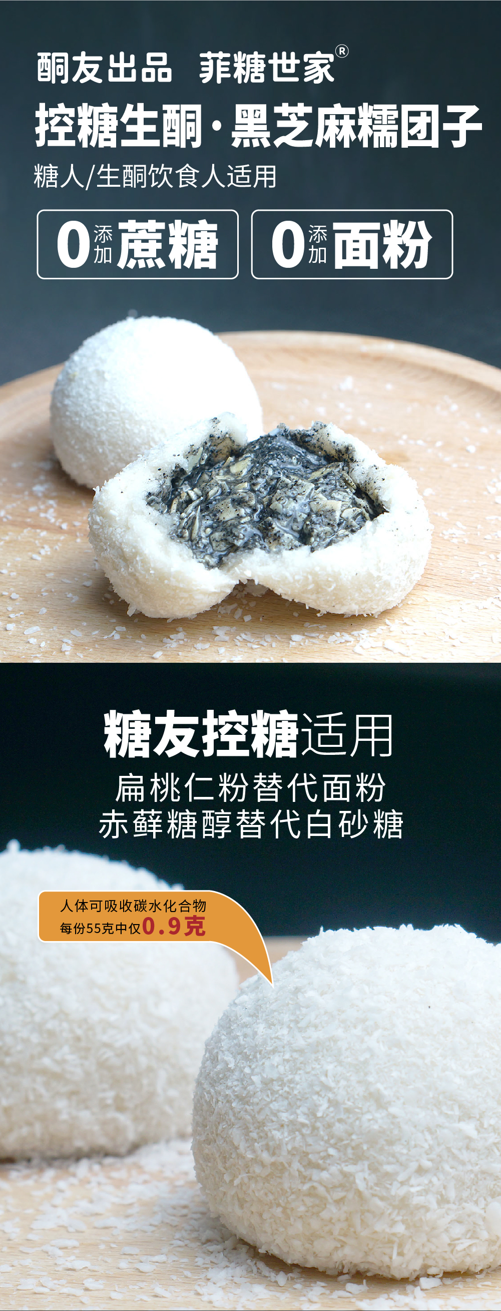 【酮友食品】控糖生酮糯米糍无面粉黑芝麻无糖精甜品点心零食菲糖世家