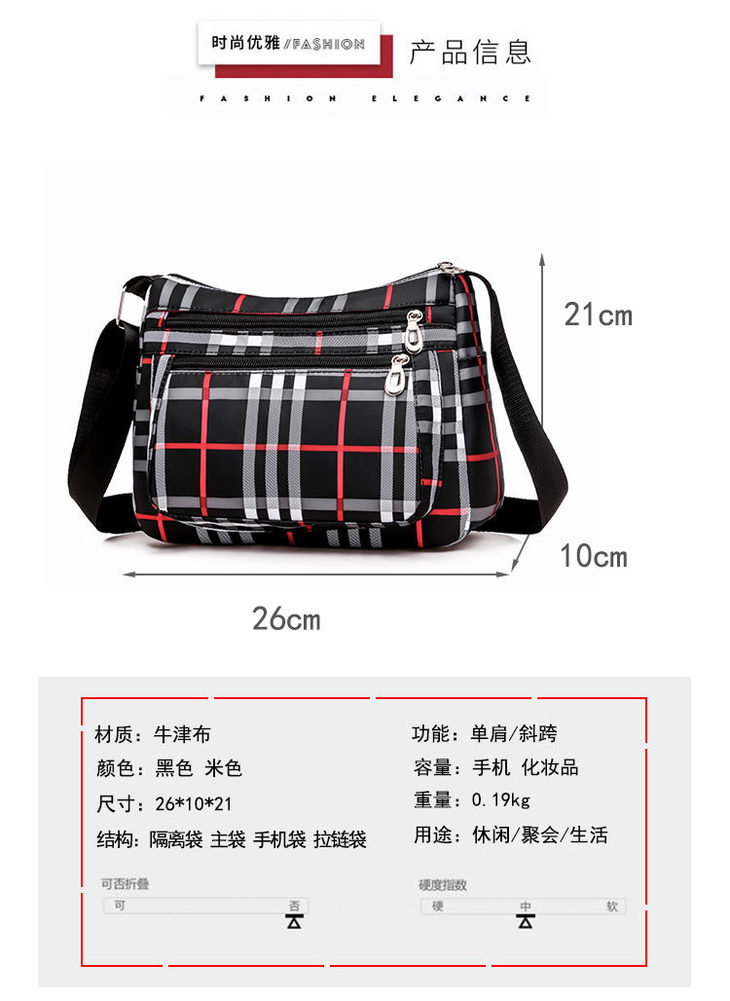 PDD-NRHBD210406新款时尚气质格子防水牛津布单肩斜跨包【仅支持线上支付】