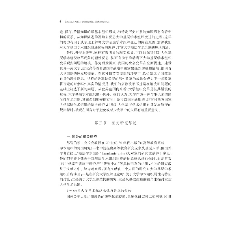 本书从知识转型的相关理论出发,建构分析大学知识演进的学理框架,并以此为视角,梳理不同历史时期大学基层学术组织形态与结构特征,分析大学知识演进与大学基层学术组织历史变迁之间的逻辑关系,揭示大学基层学术组织变迁历史性和逻辑性相统一的发展规律。
