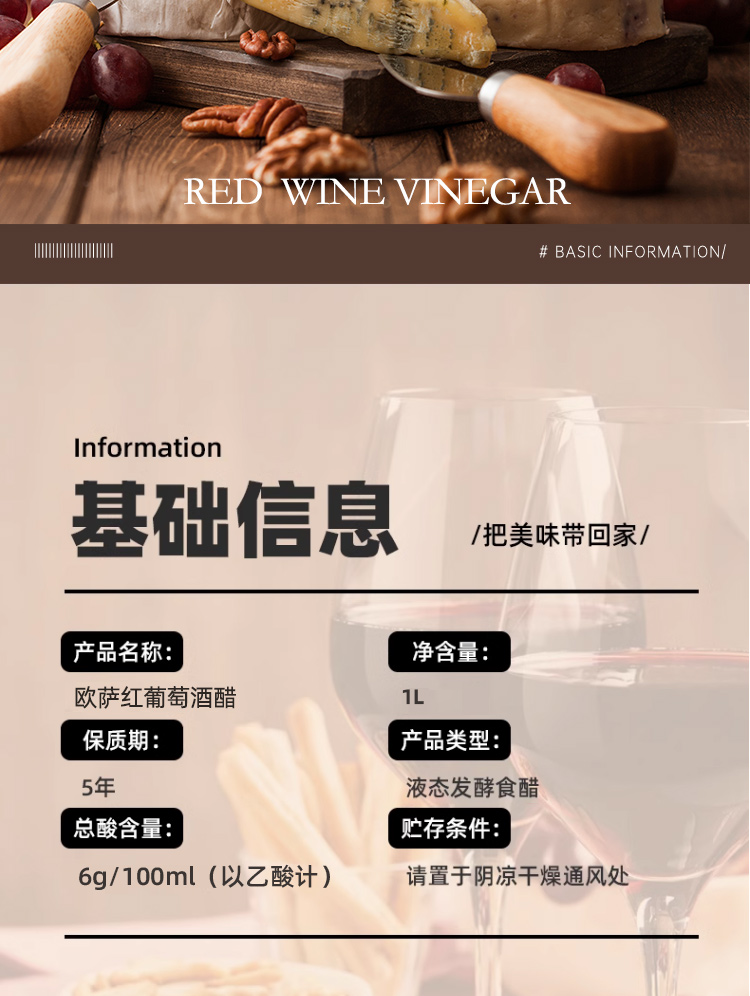 欧萨红葡萄酒醋1L(塑瓶)