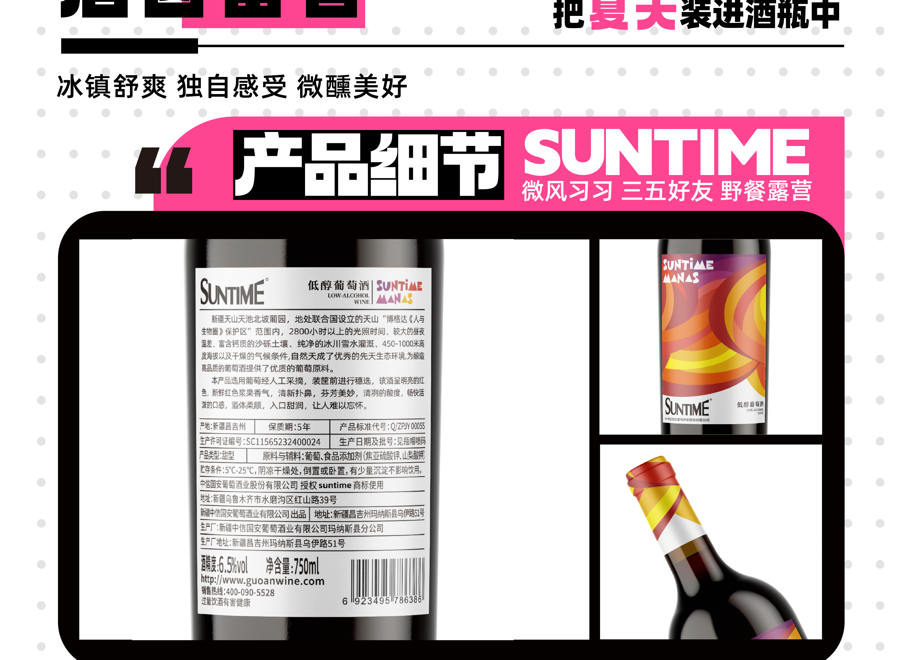 中信尼雅·SUNTIME6.5度低醇葡萄酒(双支)750ml*2 低度微醺 盾齿留香