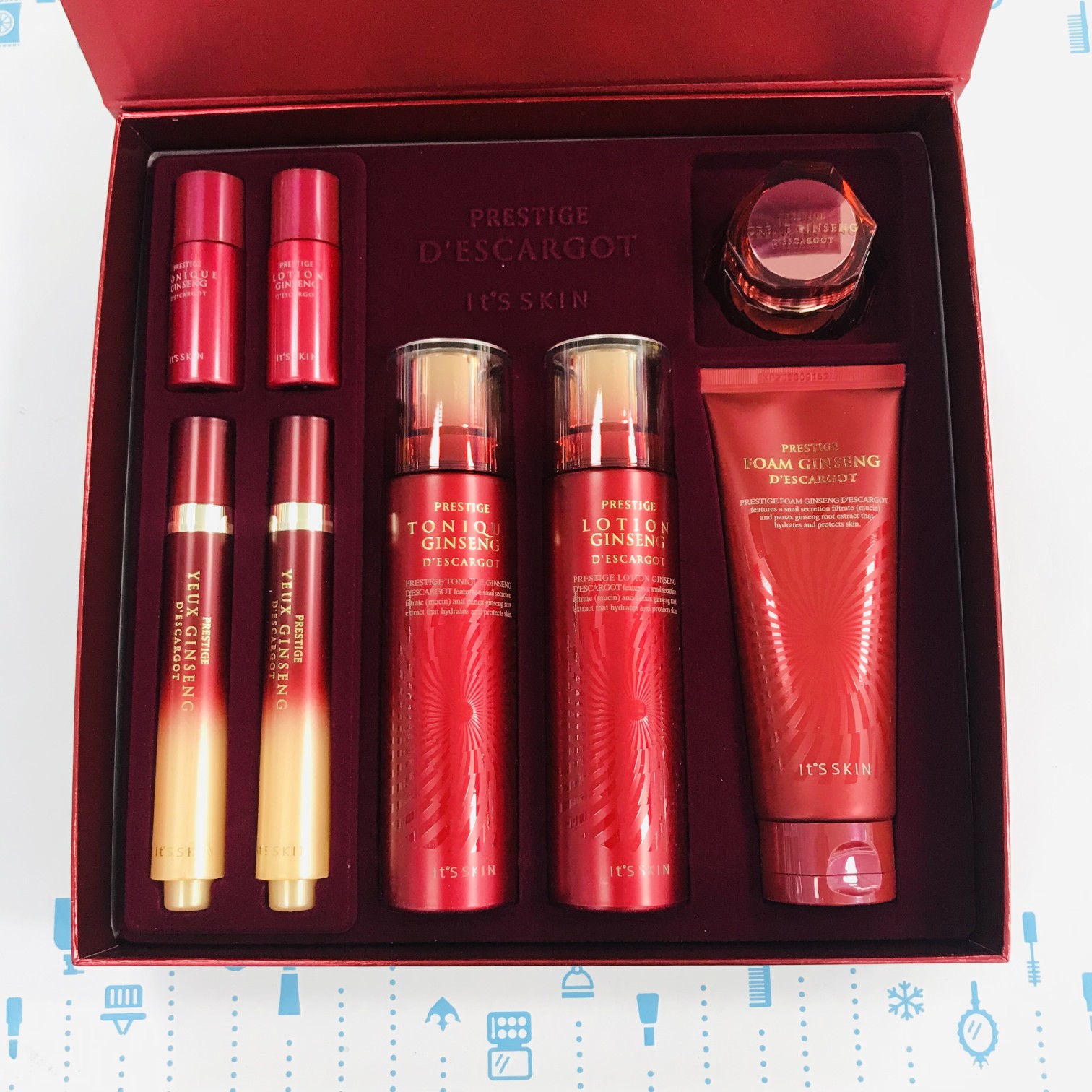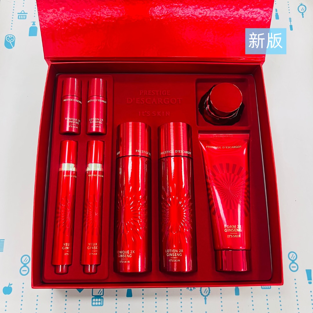 👑伊思2X晶钻红参蜗焕新4件套 👍添加了红参精华,具有很好的美容功效 💆具有保湿💧、补水💦、修复、祛痘去印,淡化斑点、疤痕的功效 🐌有效地避免皮肤老化,提高肌肤整体的光亮度,改善肌肤弹力 😇适合30岁以上需要抗衰老、干性中性混合偏干肌肤的熟龄肌肤基础护理👀。 【套装包括】:水140ml+乳140ml+洁面150ml+眼霜15g*2+面霜10ml+水25ml+乳25ml