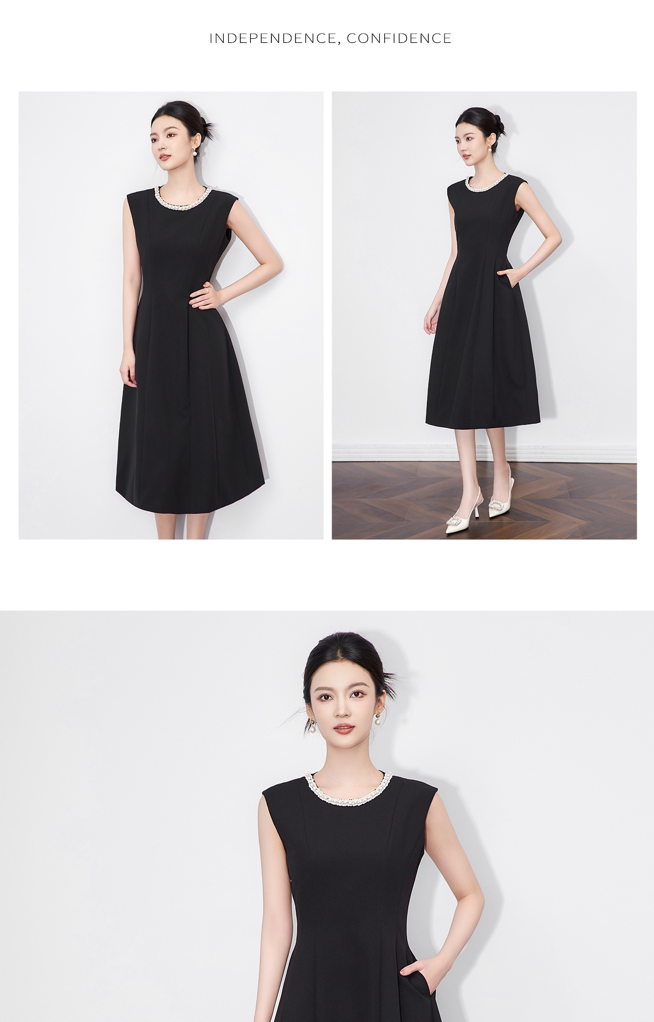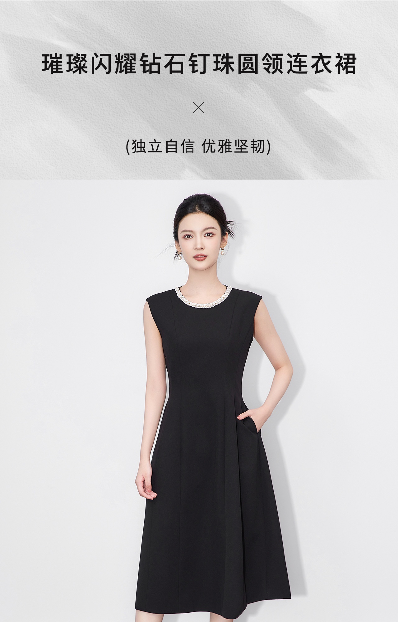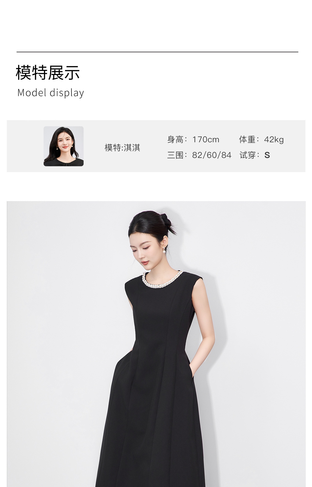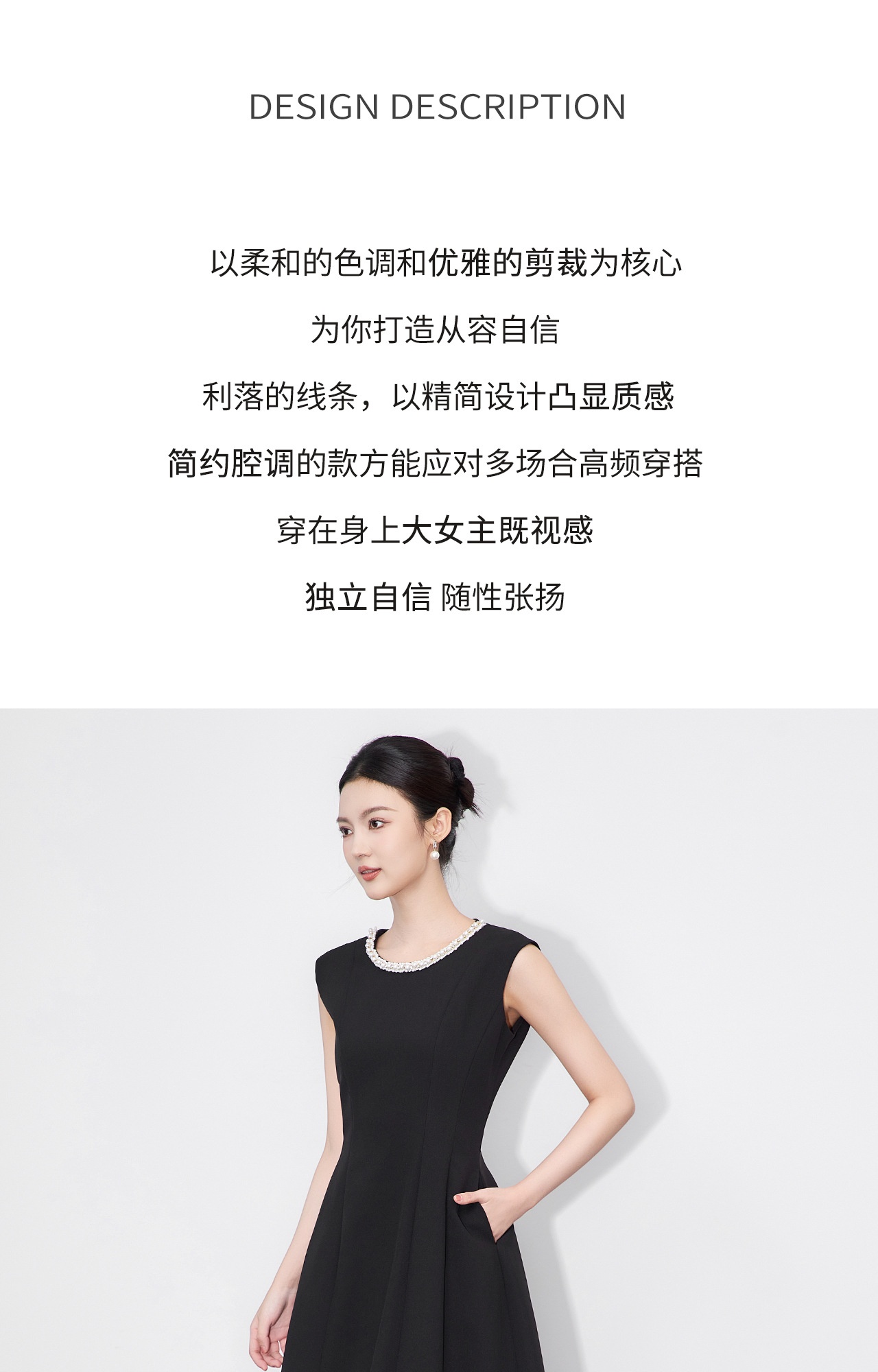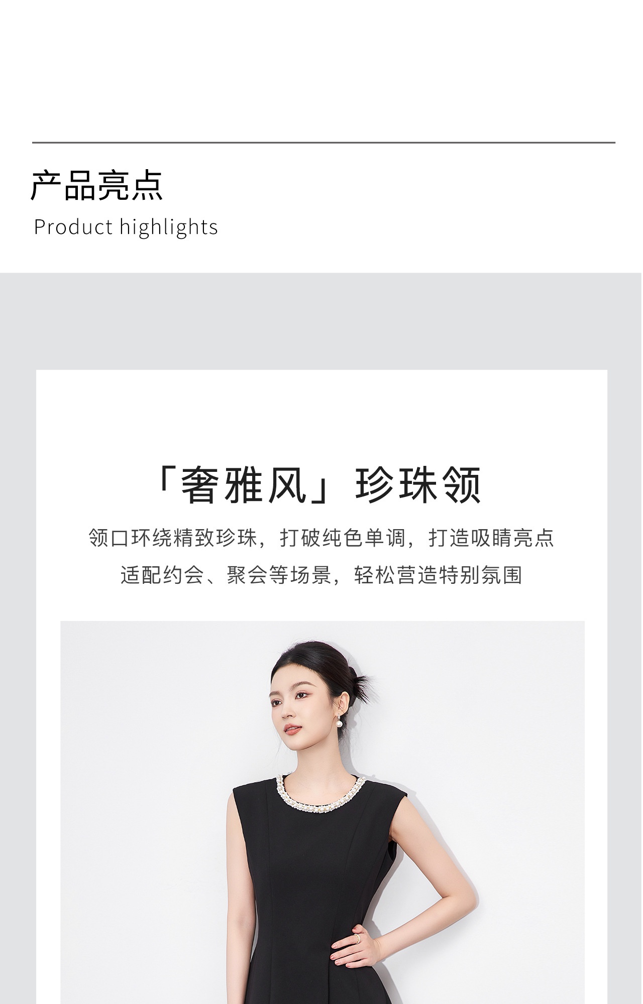 「高货wl」全新升级【铂金会员321/天猫429/差价108】(45655)洛诗琳法式赫本风无袖连衣裙2025秋季气质收腰显瘦钉珠裙