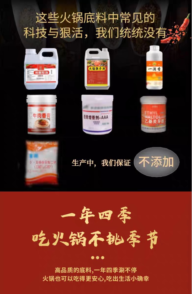 5、0添加蔗糖。正宗底料需要加入大量的糖去融合辣味与香味,所以为了健康,也为了满足糖尿病人的需求,底料使用了从玉米芯提取的天然安全甜味剂“木糖醇”,糖尿病人可以吃。